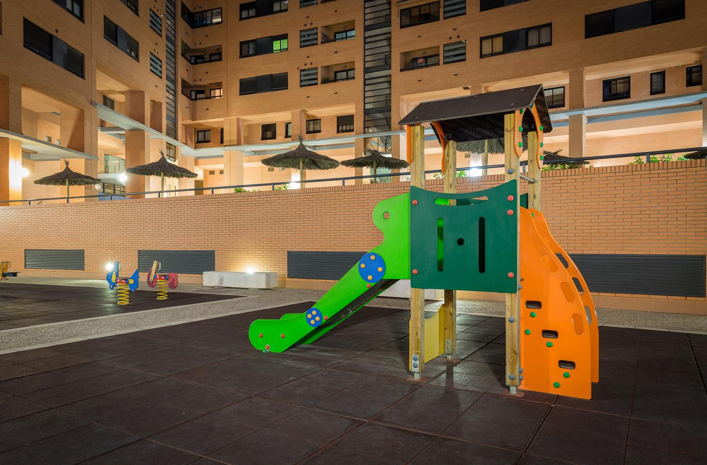 The accommodation is equipped with the following items: lift, garden, terrace, iron, internet, hair dryer, central heating, air conditioning throughout the house, swimming pool communal+children's, garage in the same building, tv satellite (Languages: Spanish, English), radio.