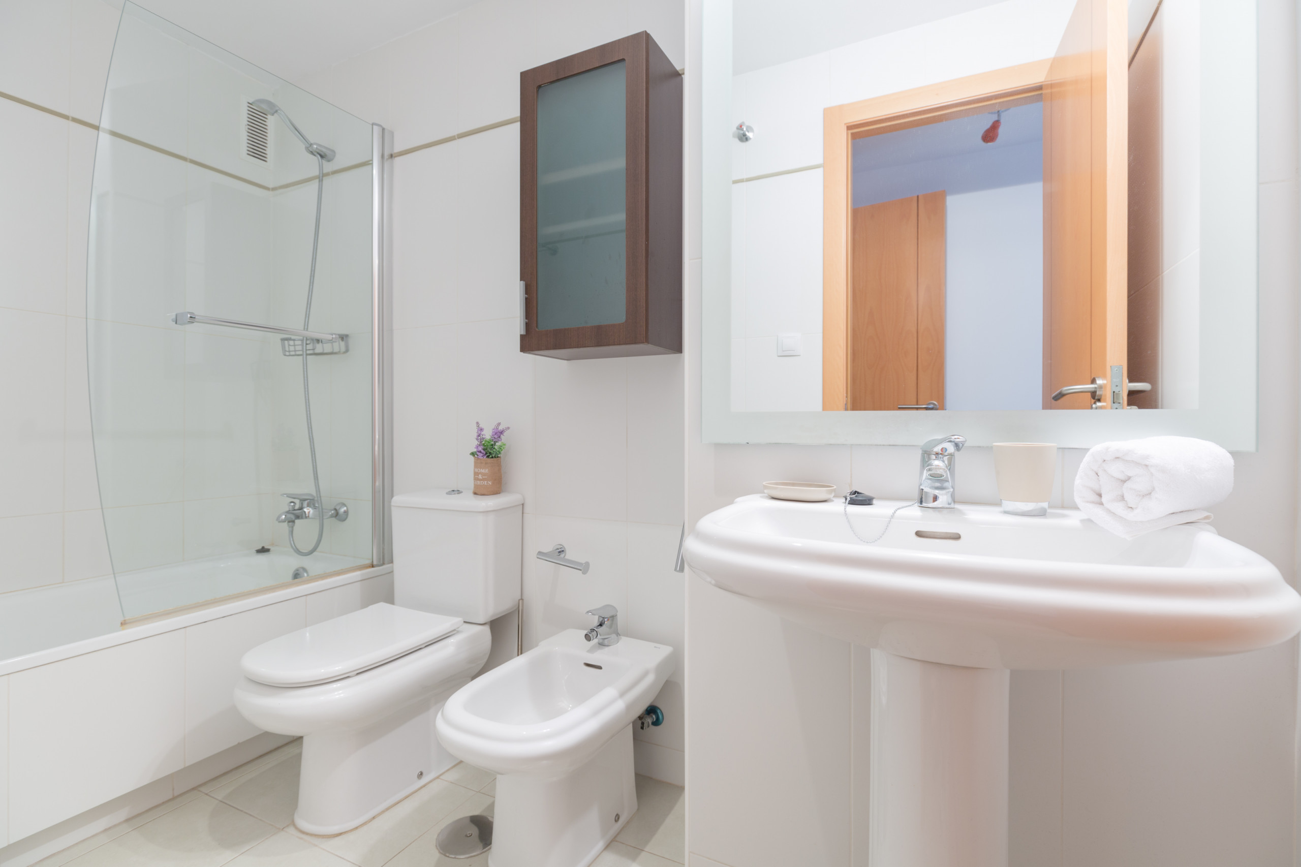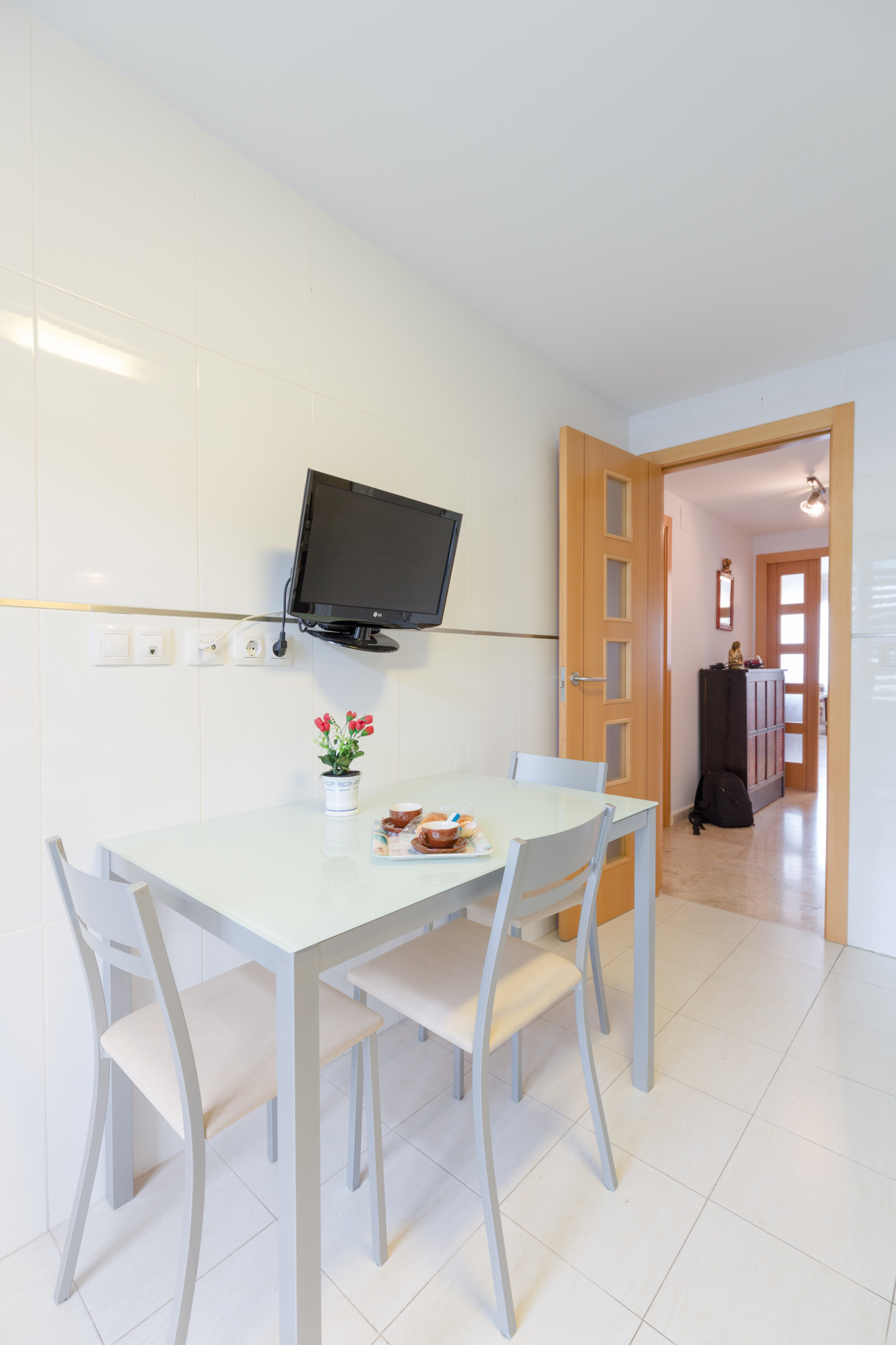 The independent kitchen, of vitroceramic, is equipped with refrigerator, microwave, oven, freezer, washing machine, dishwasher, dishes/cutlery, kitchen utensils, coffee machine, toaster, kettle and juicer.
