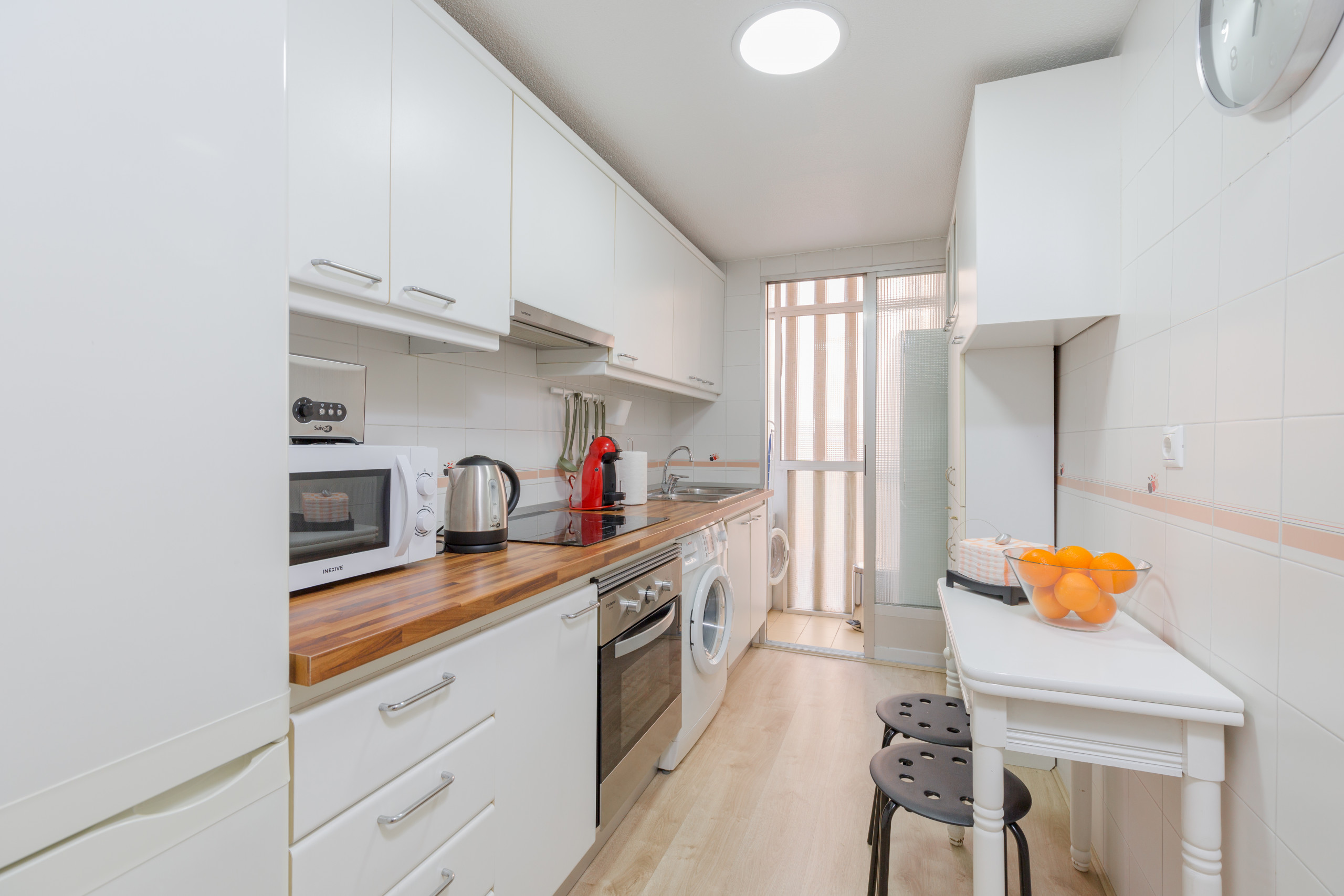 The apartment has a living room with flat screen TV and a sofa bed, spacious bedrooms with fitted wardrobes, kitchen with ceramic hob, fridge, oven, microwave, toaster, electric coffee maker, and kettle. Gallery with washing machine and dryer. The bathroom has a hairdryer and toiletries. Towels and bedding. Free Wifi connection in the whole establishment.