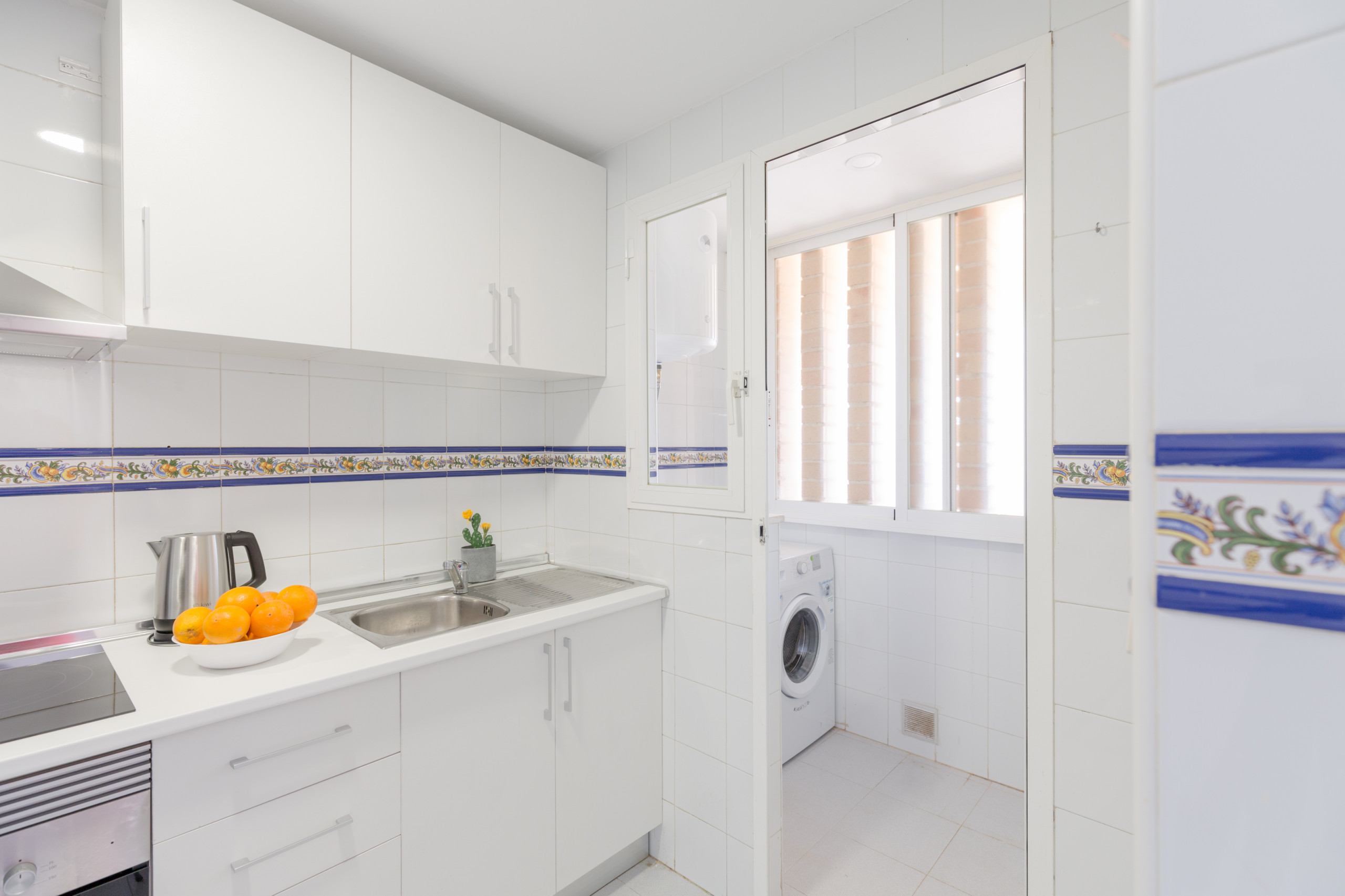 The kitchen is fully equipped, with glass-ceramic hob, fridge, microwave, oven, freezer, washing machine, dishes, cutlery, kitchen utensils, coffee maker, toaster, kettle and juicer. It has everything you need to be comfortable during your stay, such as a hair dryer and an iron.