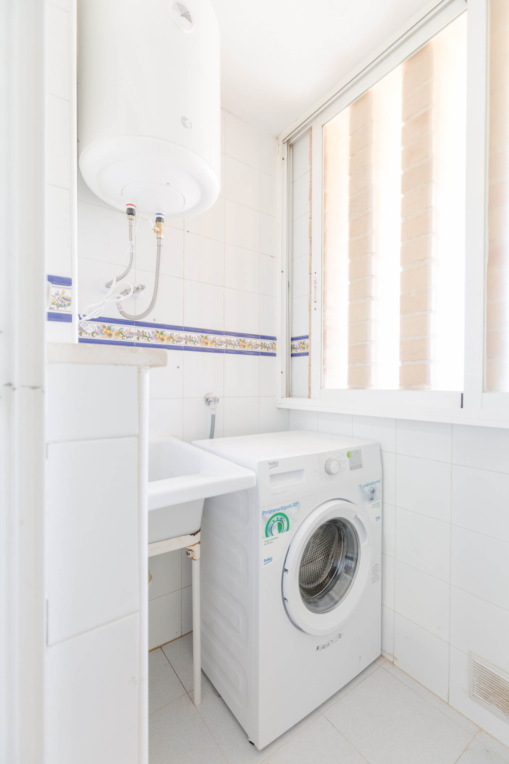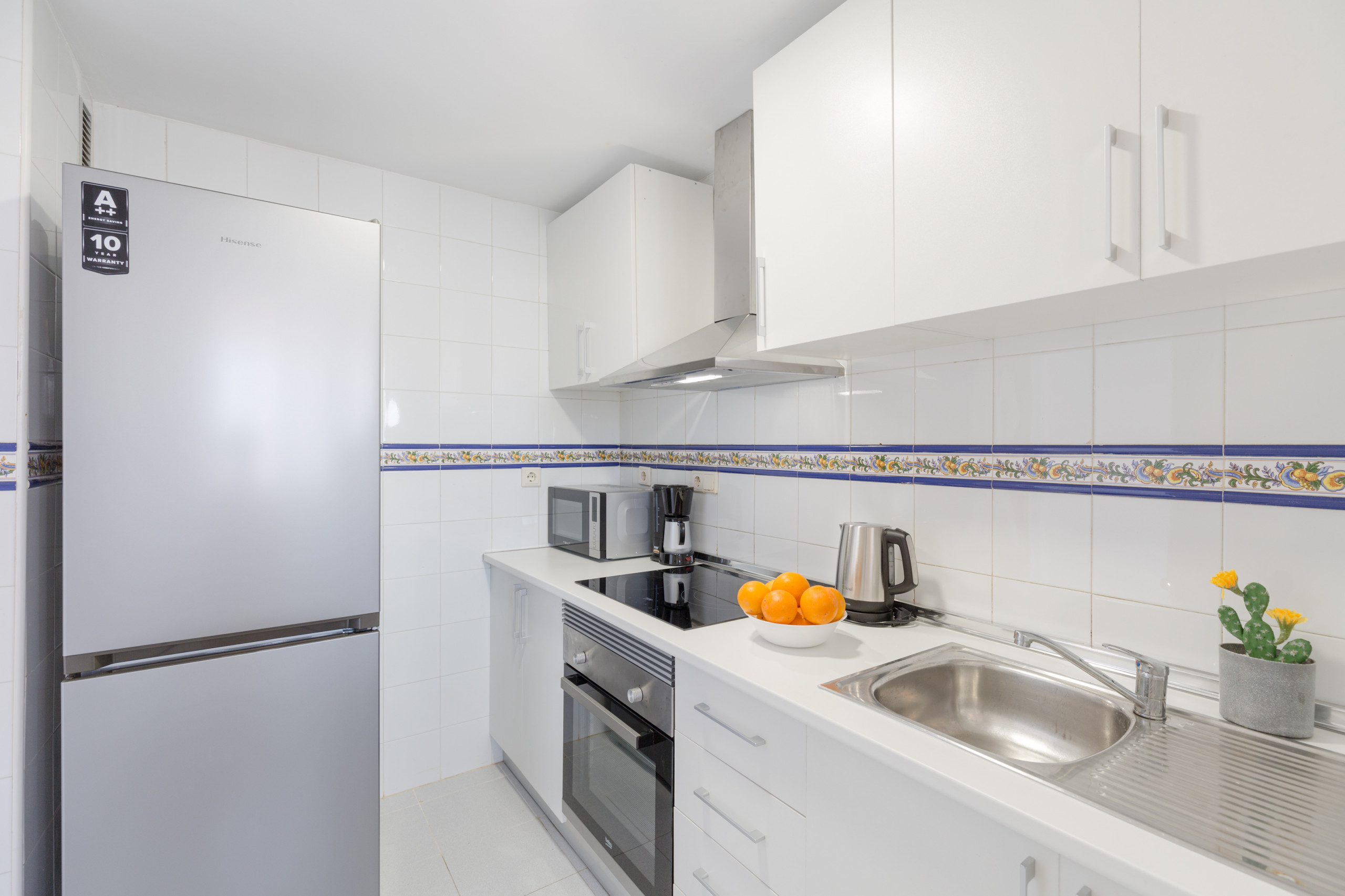 The independent kitchen, of vitroceramic, is equipped with refrigerator, microwave, oven, freezer, washing machine, dishes/cutlery, kitchen utensils, coffee machine, toaster, kettle and juicer.