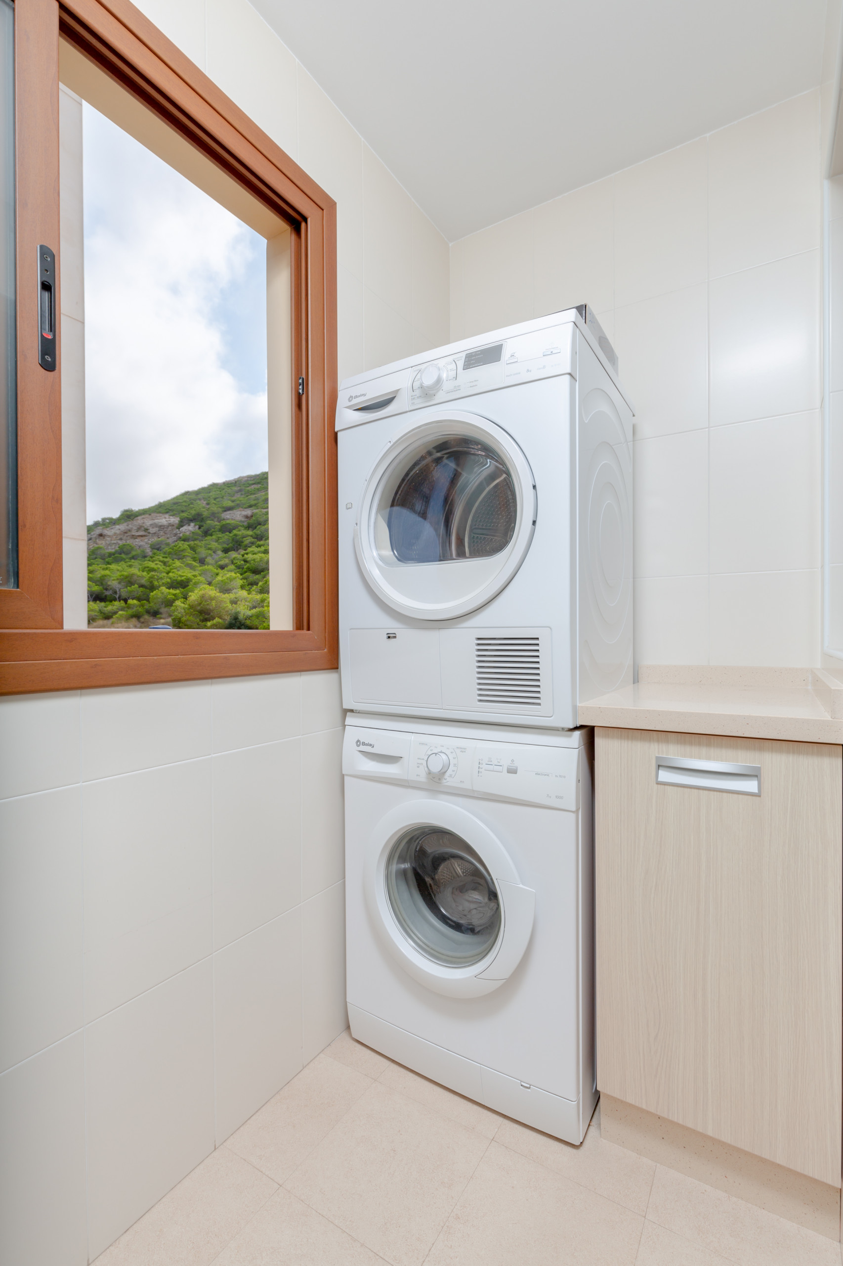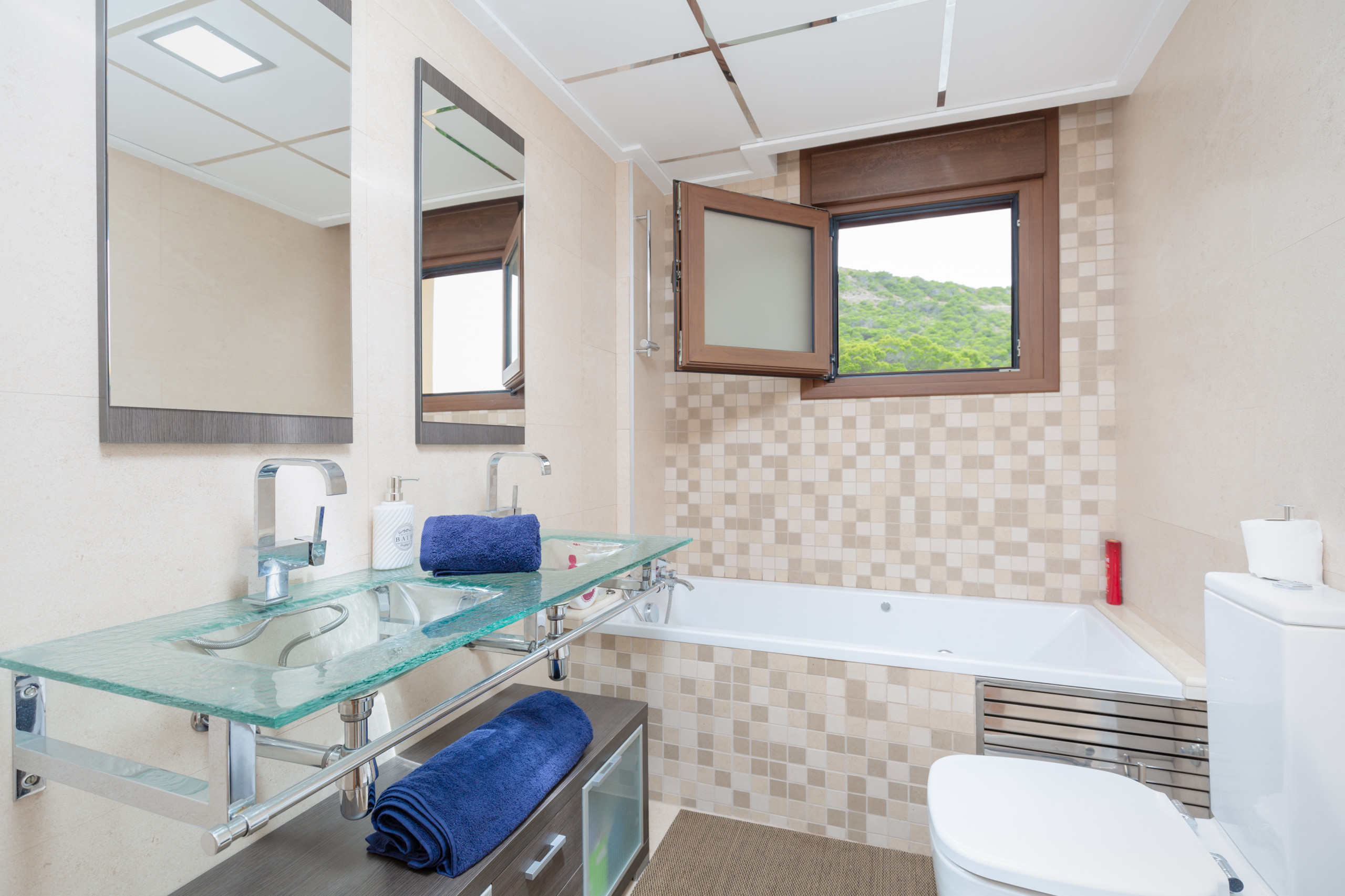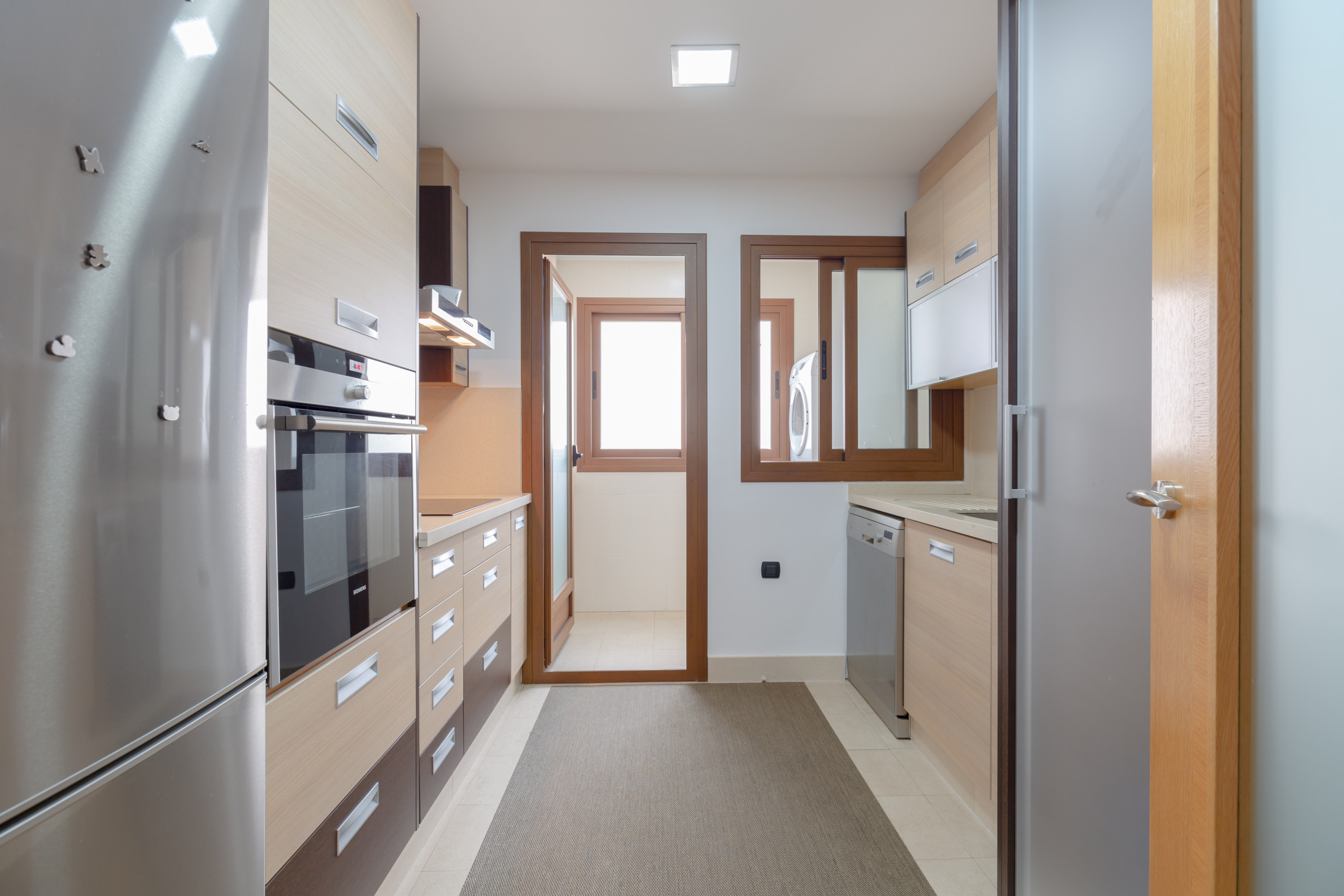 The independent glass-ceramic kitchen is equipped with a fridge, microwave, oven, freezer, washing machine, tumble dryer, dishwasher, dishes / cutlery, kitchen utensils, coffee machine, toaster, kettle and juicer.