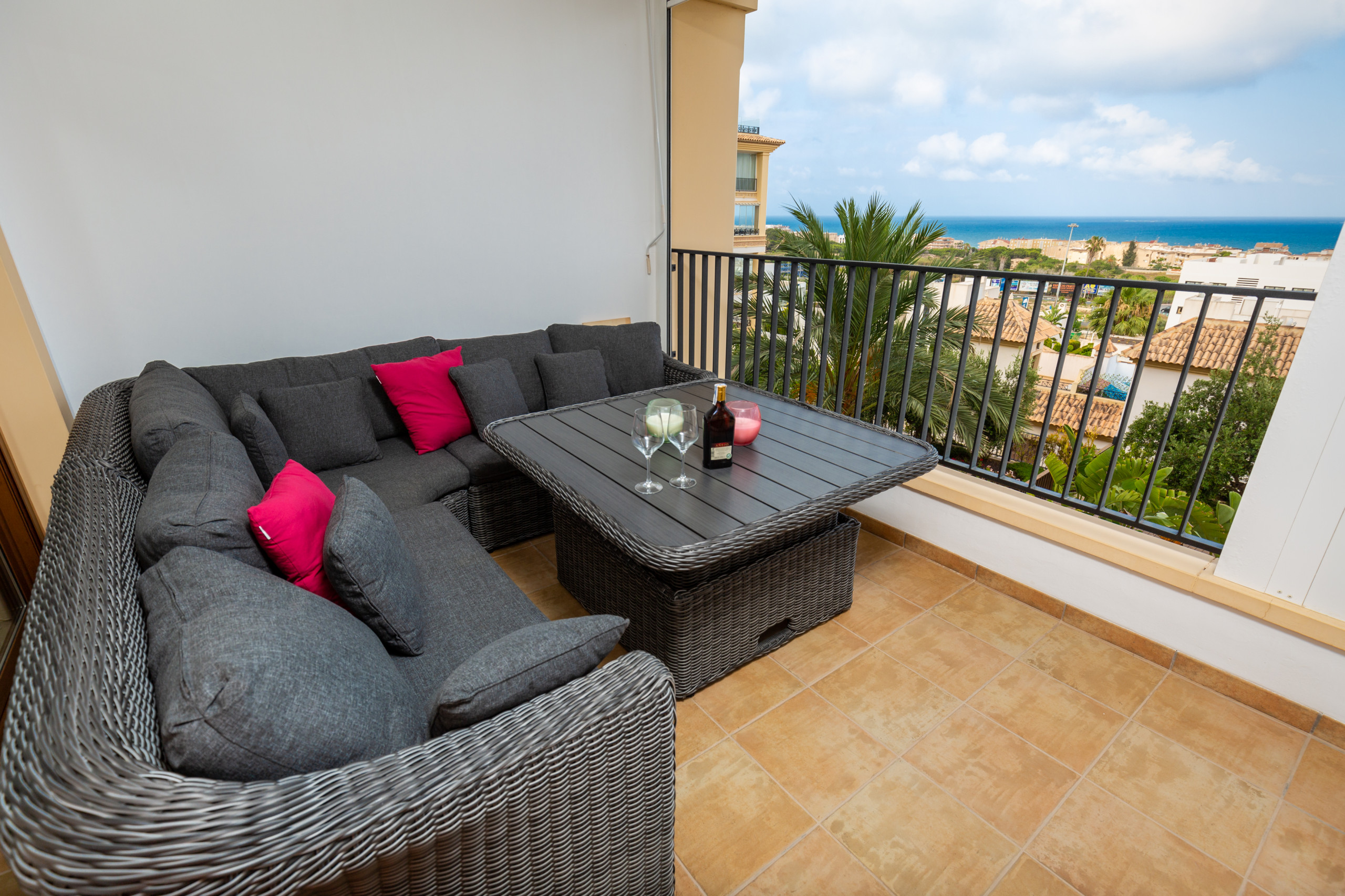 It has a garden, garden furniture, terrace, iron, internet access, hairdryer, squash court, paddle tennis court, gym, spa, central heating, air conditioning throughout the property, community pool, community heated pool, garage in the same building, 1 TV, radio.