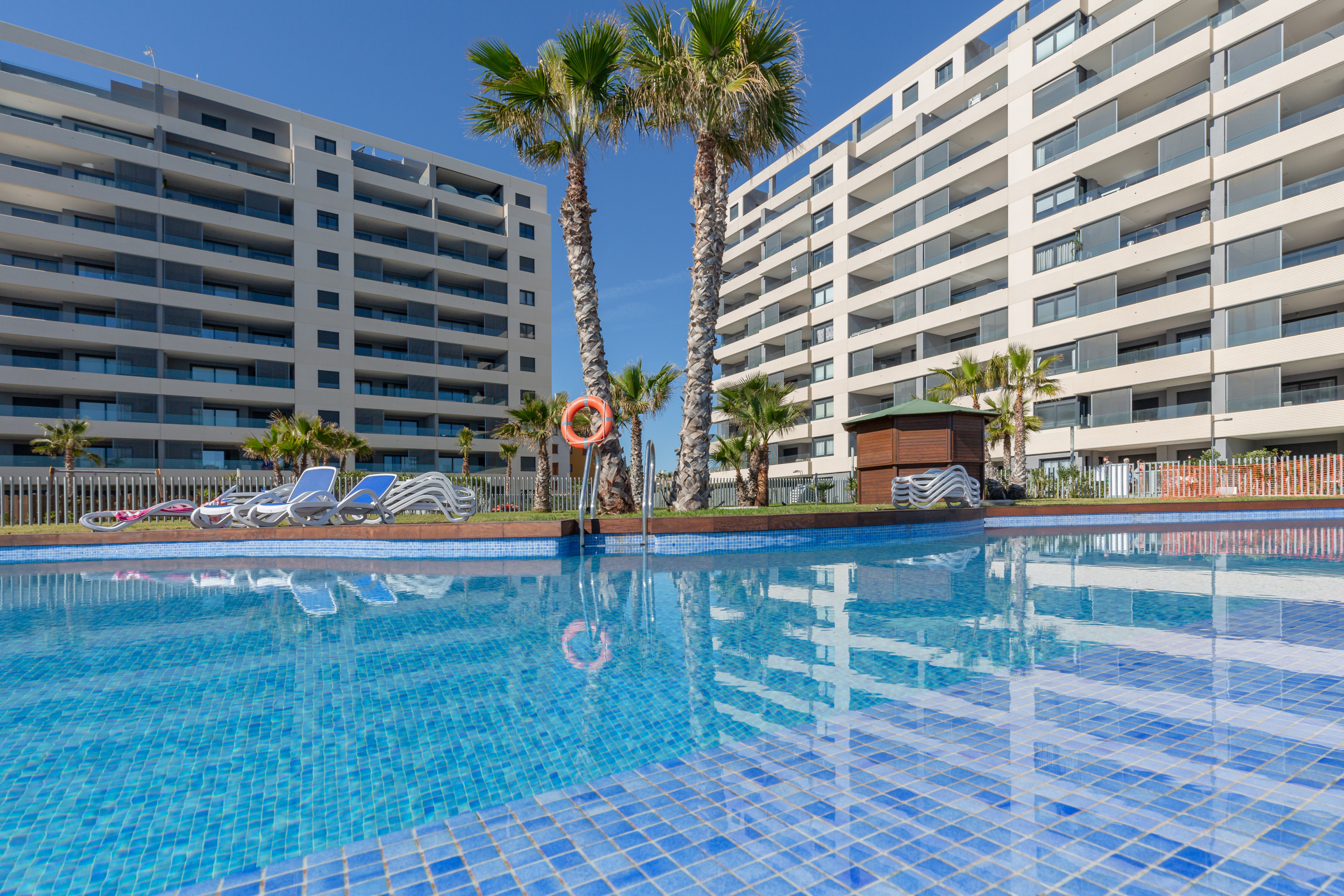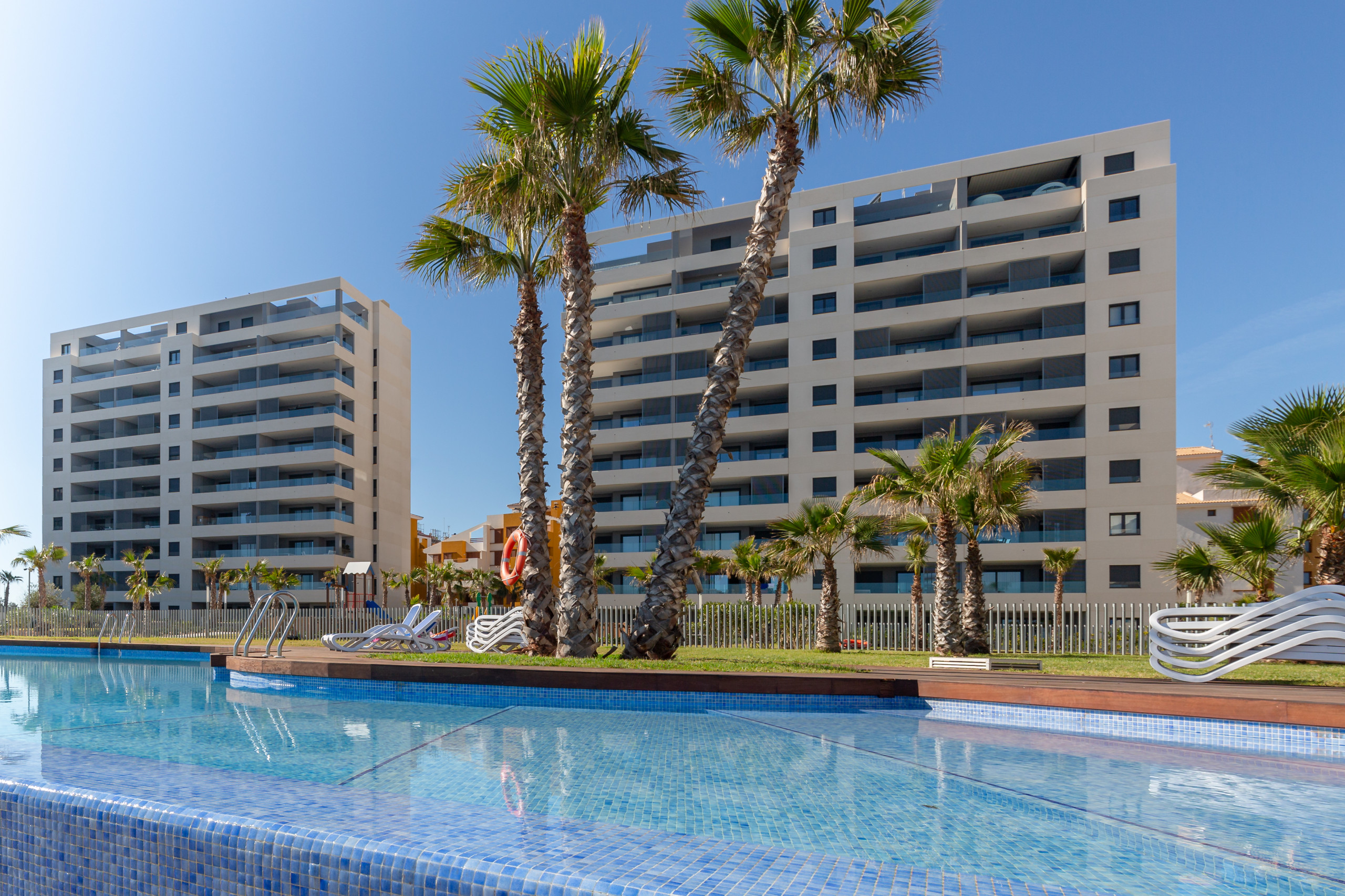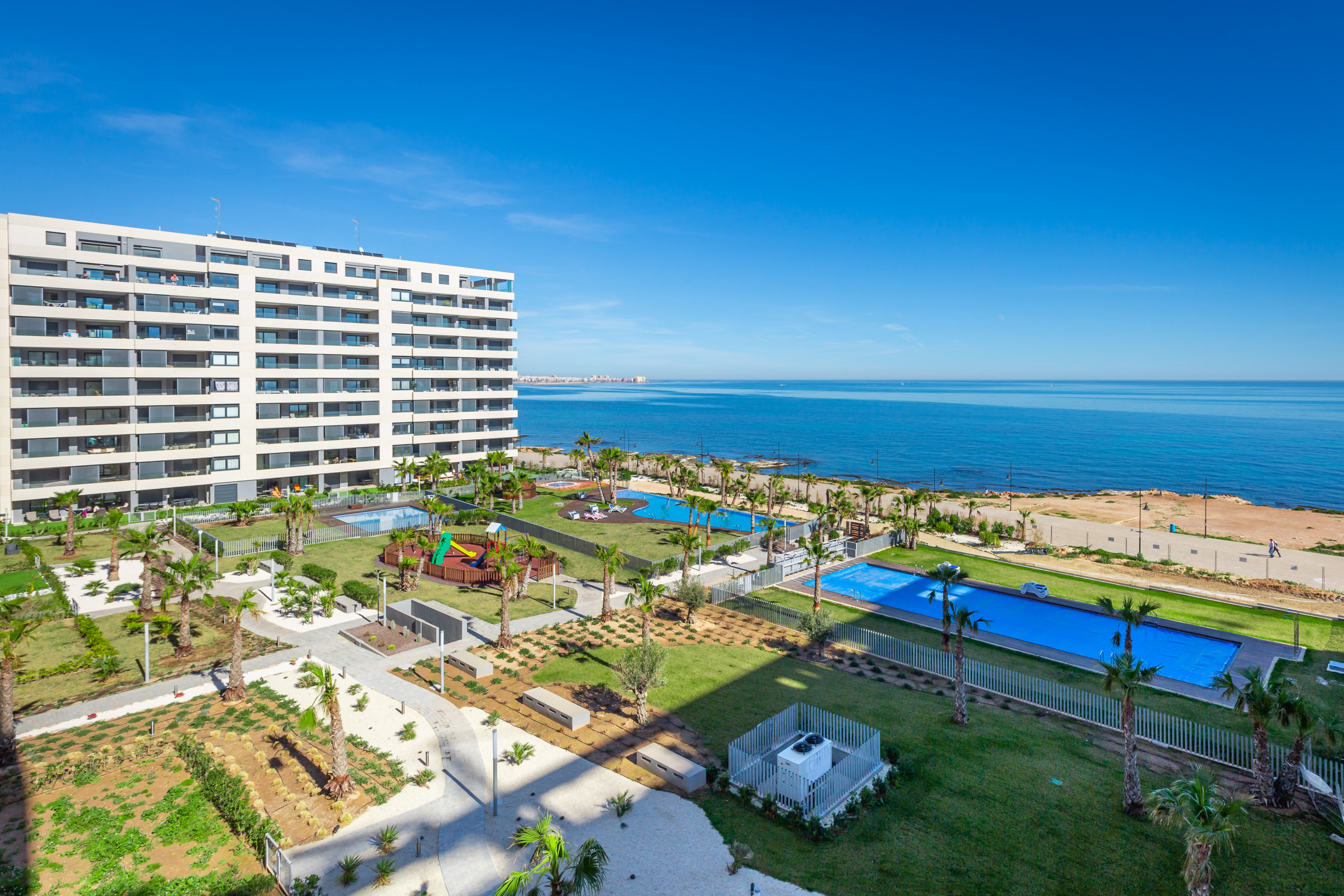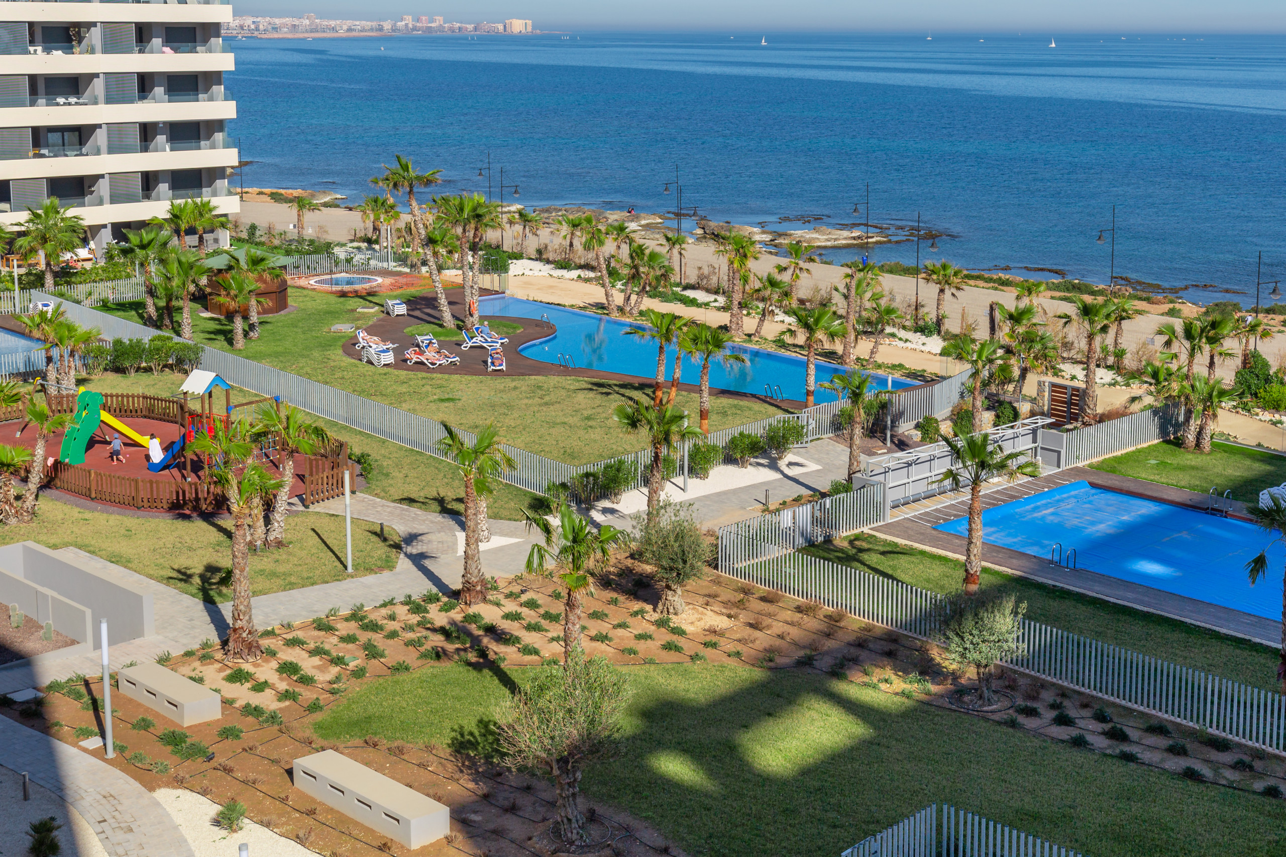 The apartment is nice, is a new build, and is 109 m². The property is located right next to the beach. It has views of the garden and the swimming pool.