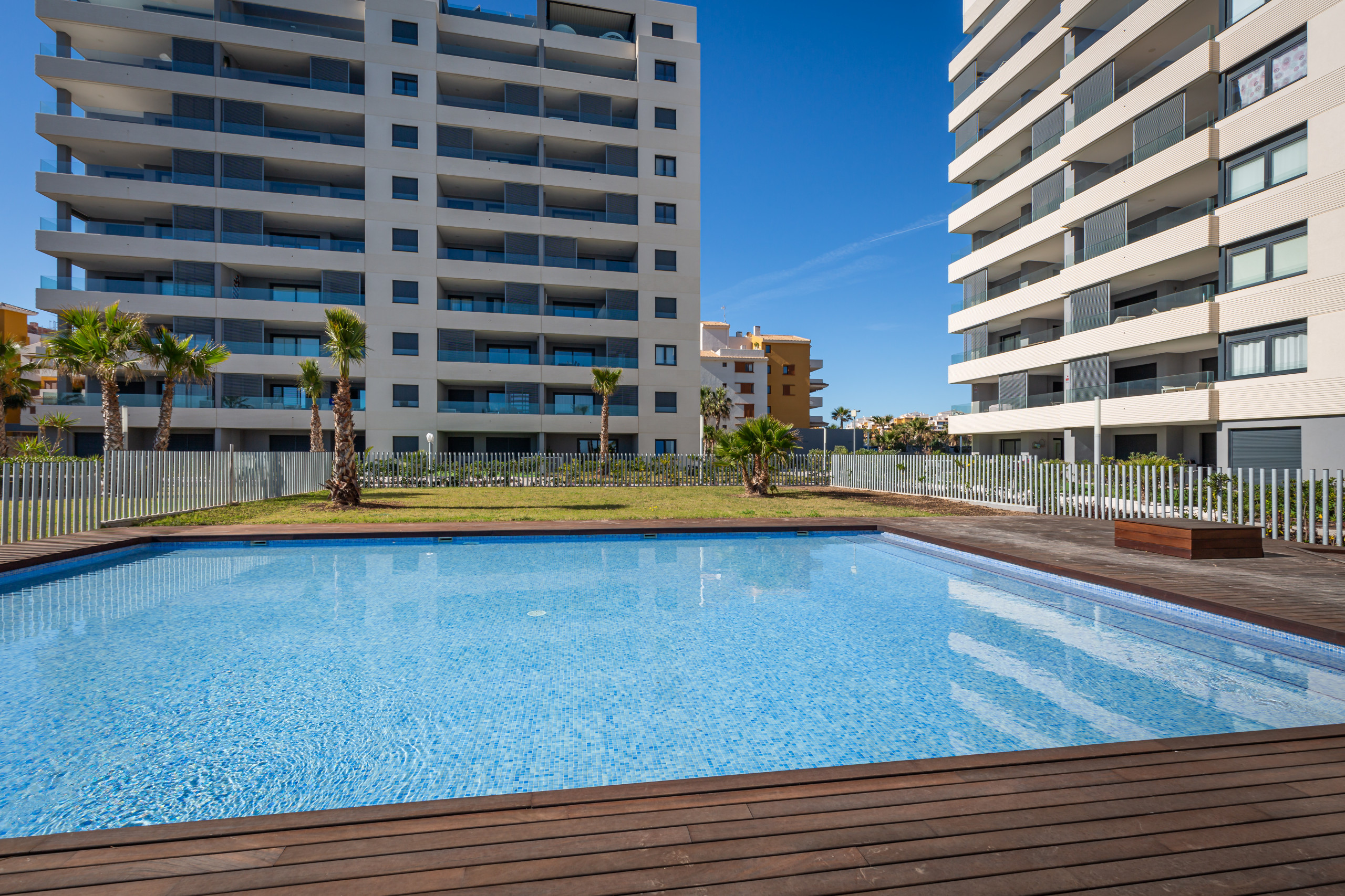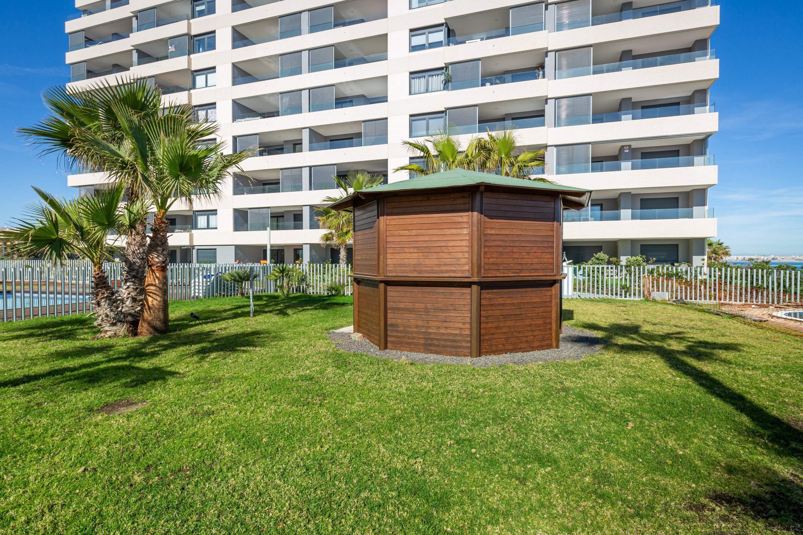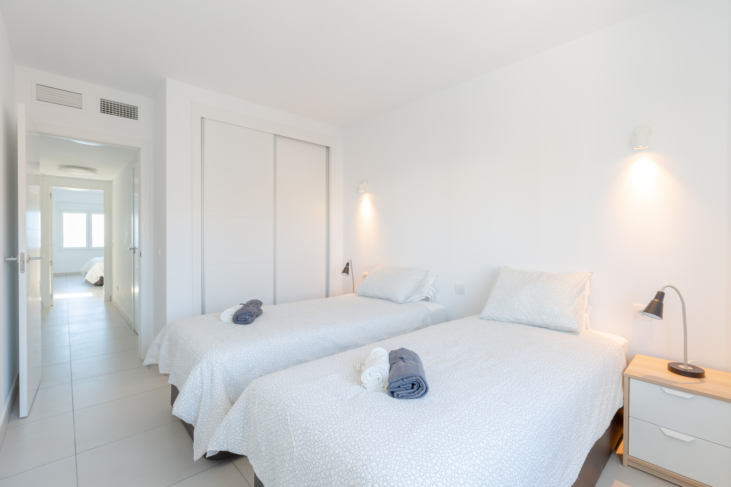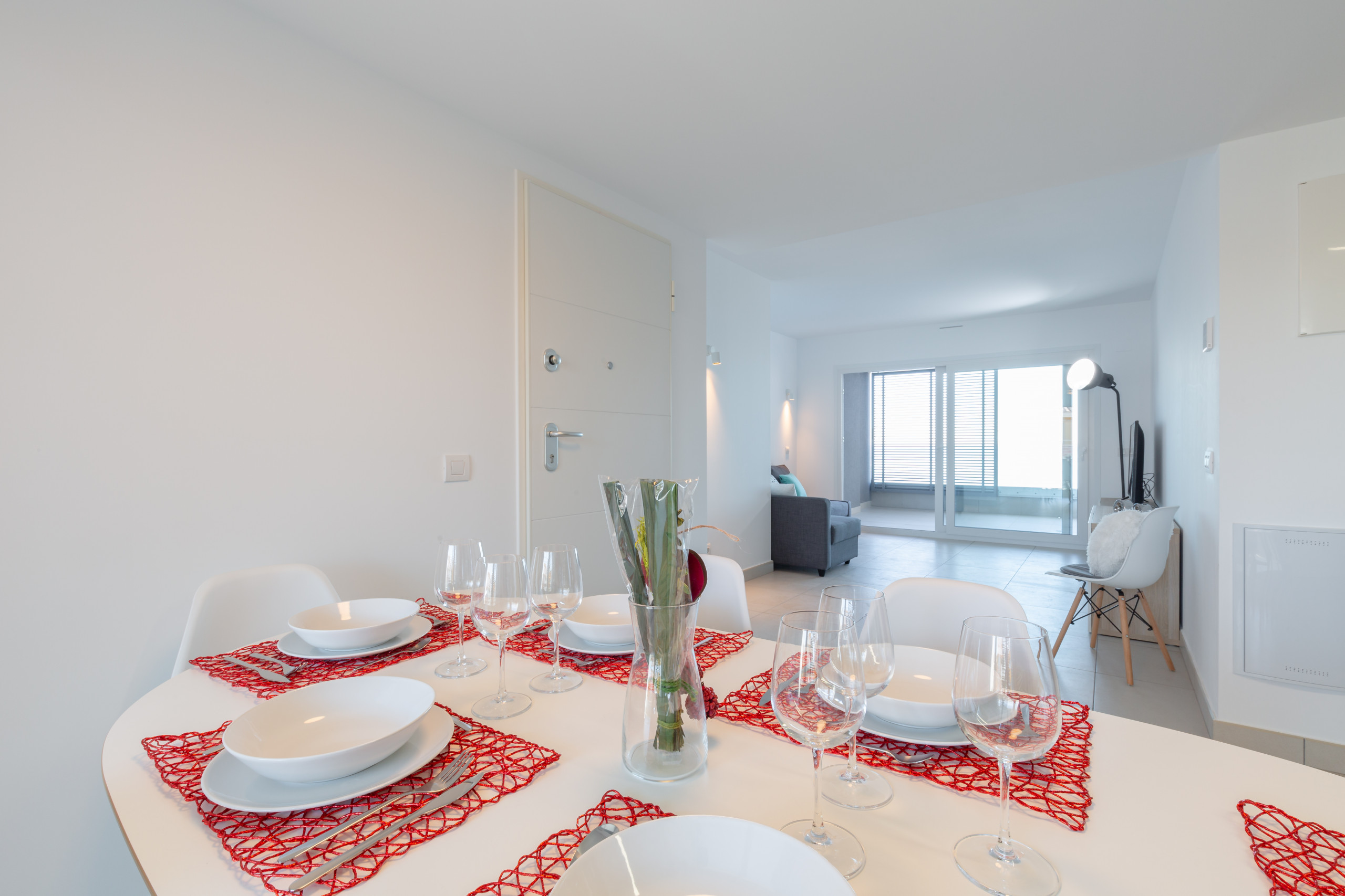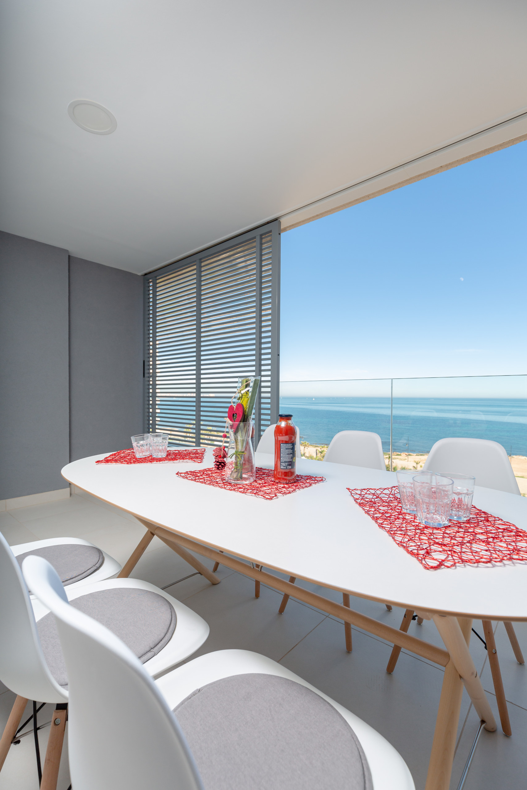 The apartment is nice, is a new build, and is 109 m². The property is located right next to the beach. It has views of the garden and the swimming pool.