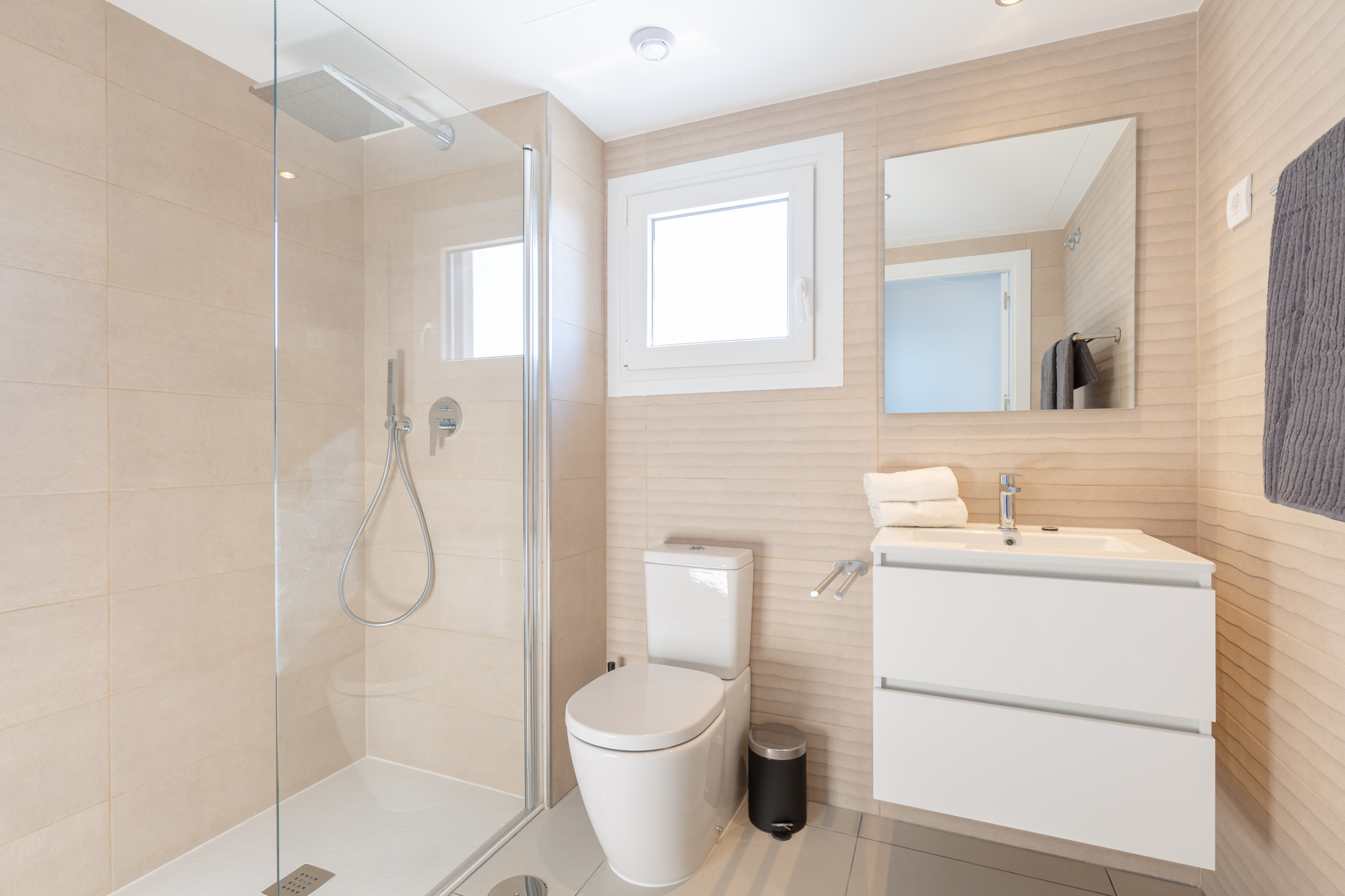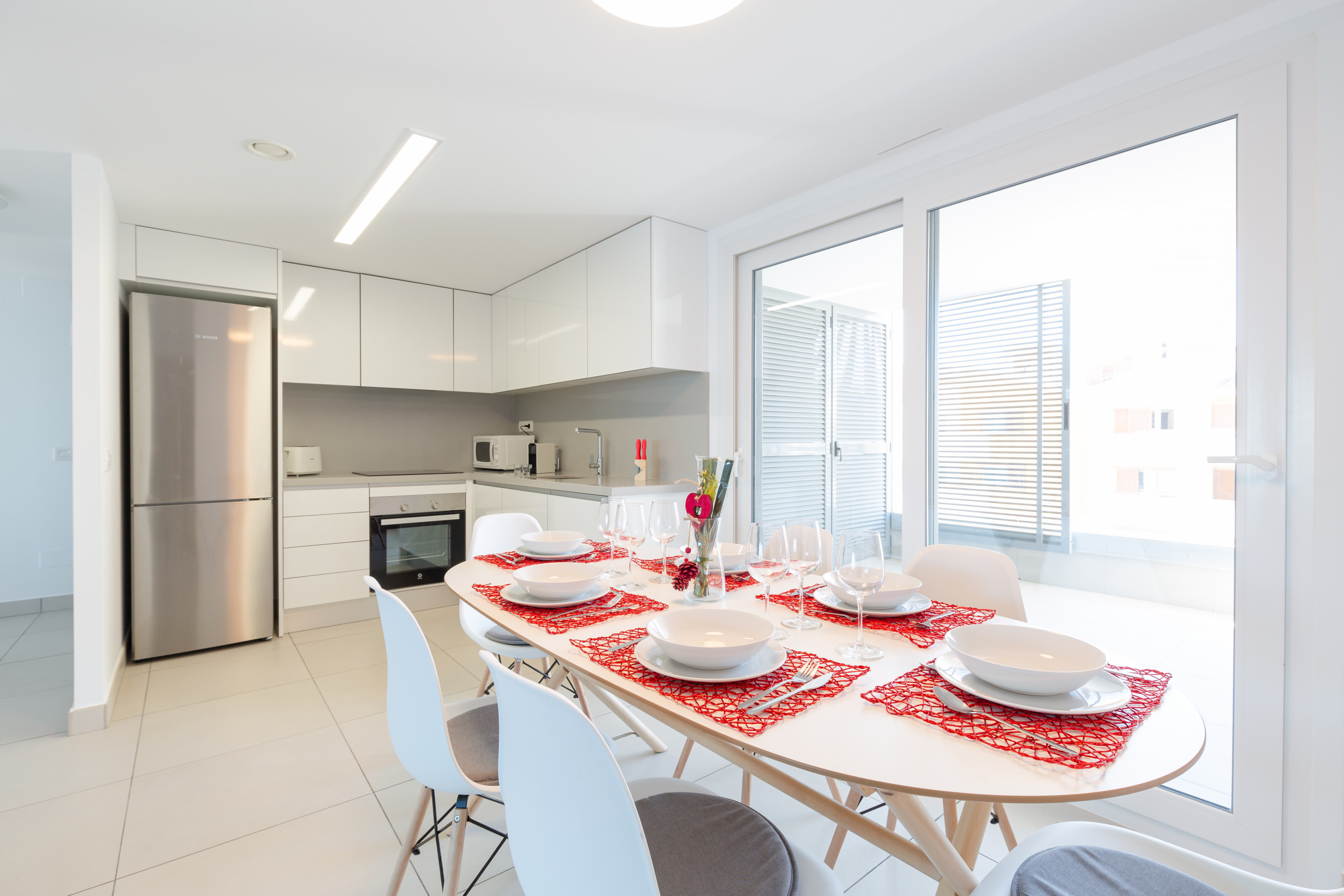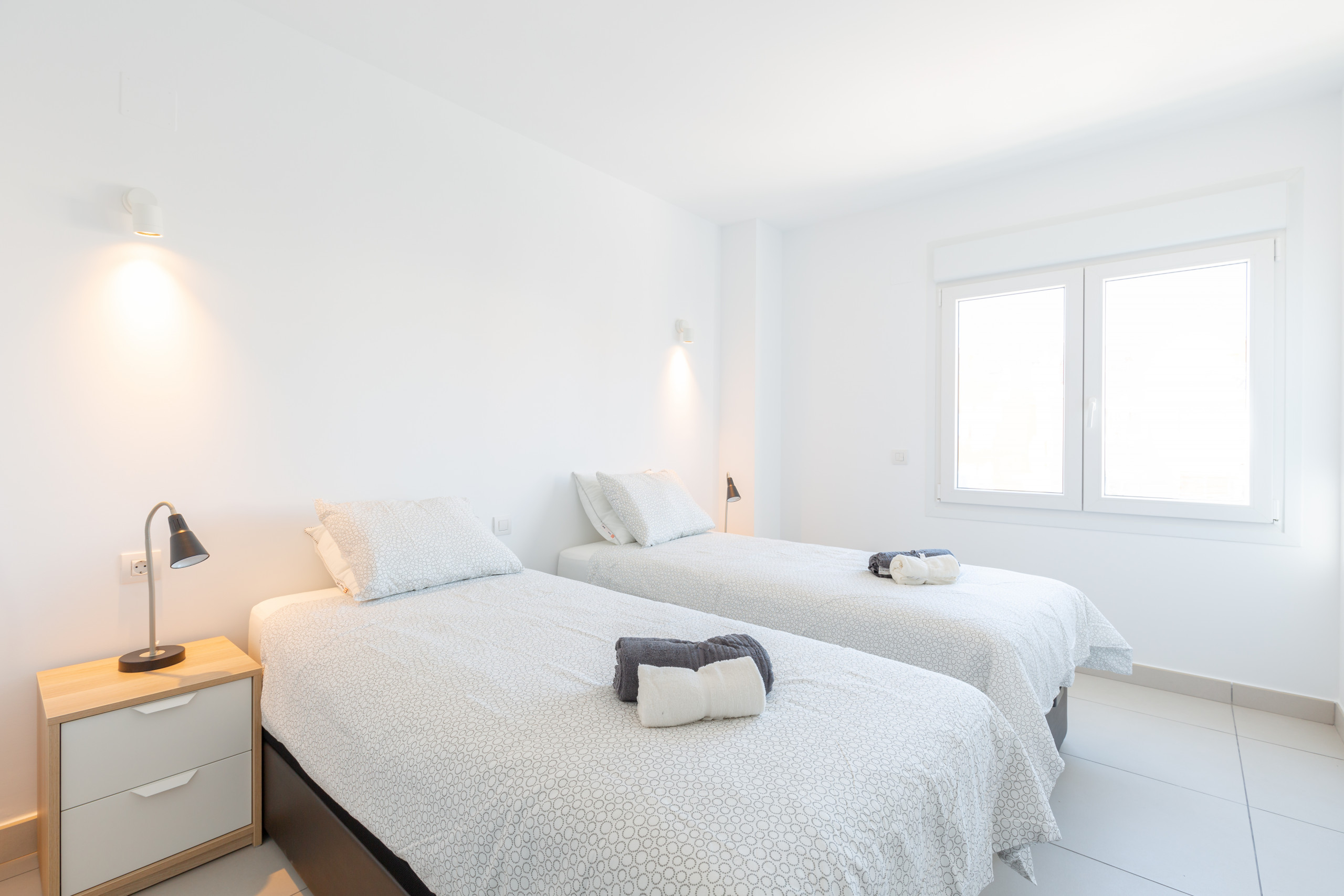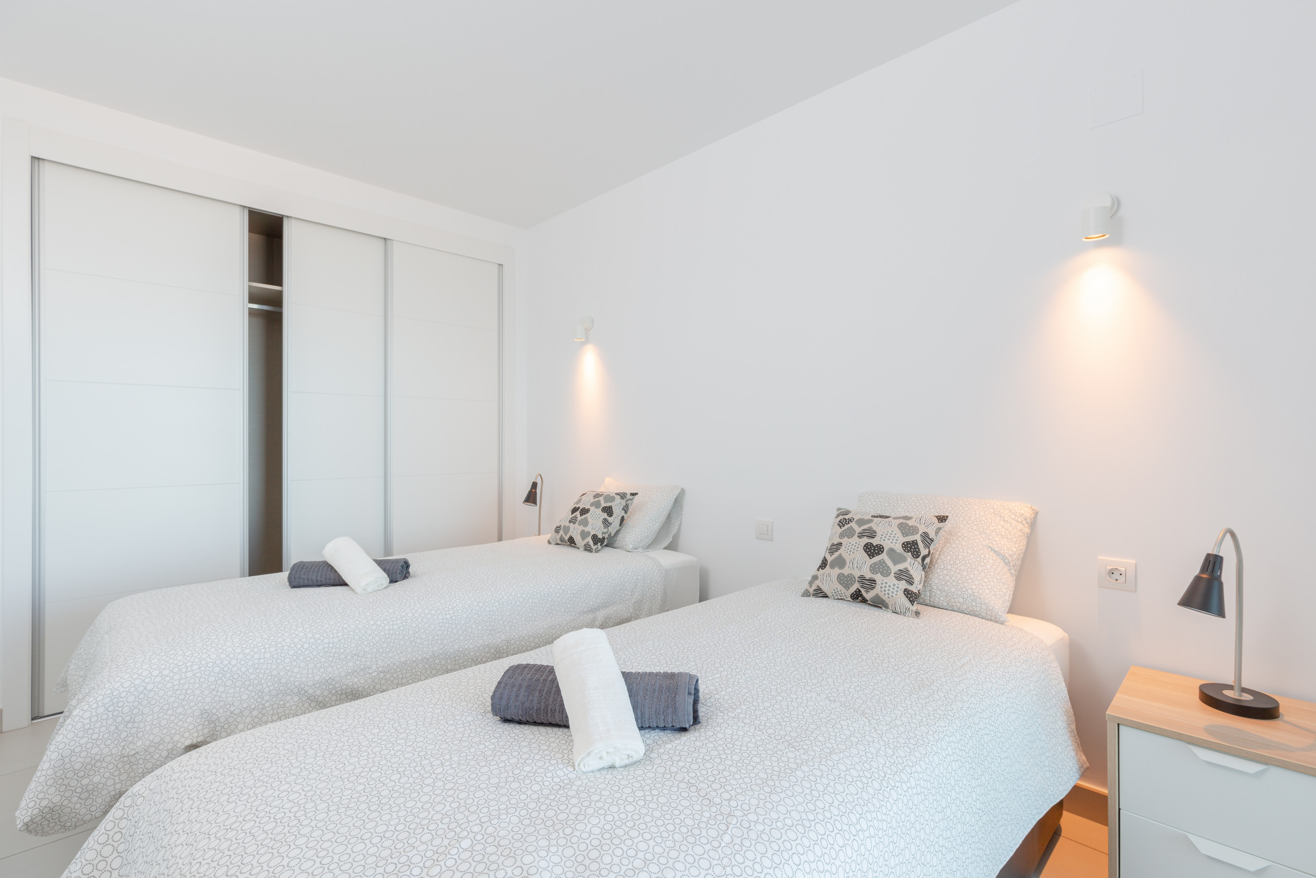 The apartment is nice, is a new build, and is 109 m². The property is located right next to the beach. It has views of the garden and the swimming pool.