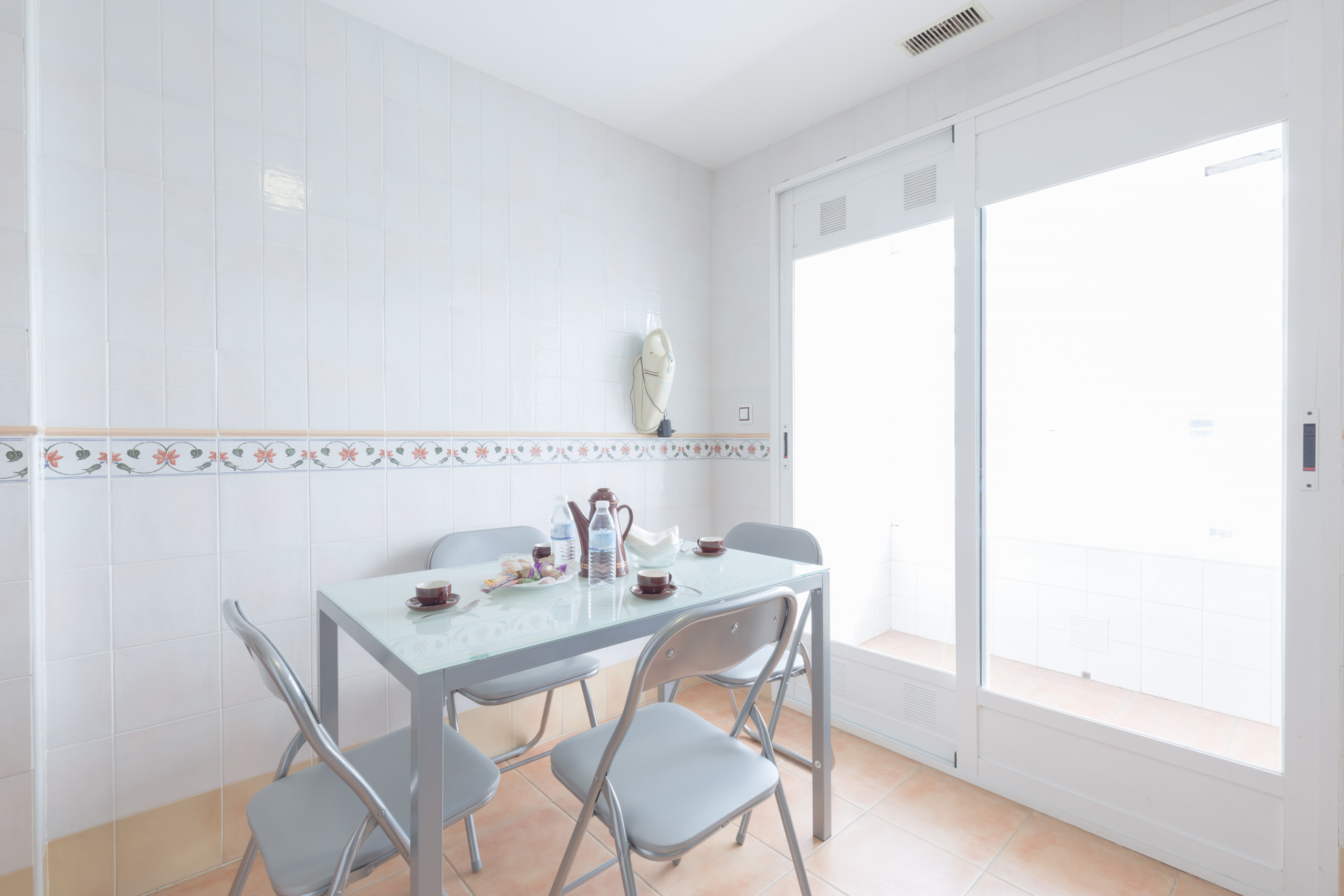 The independent kitchen, of vitroceramic, is equipped with refrigerator, microwave, oven, freezer, washing machine, dishes/cutlery, kitchen utensils, coffee machine, toaster, kettle and juicer.