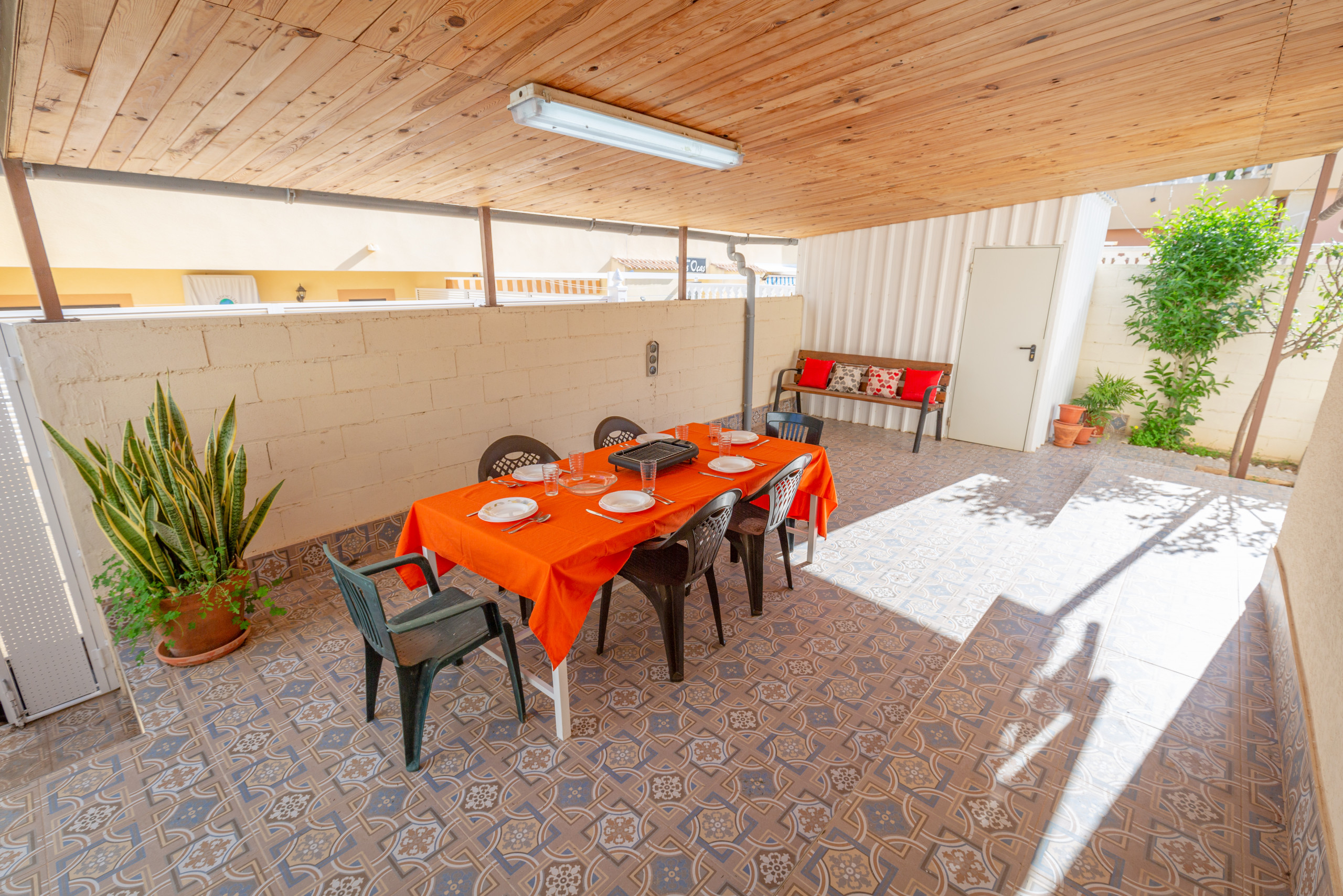 It has a fenced plot, 100 m2 of terrace, barbecue, air conditioning in the living room, mosquito nets, fans, DTT television and community pool. It also has an iron, hairdryer, WIFI internet access, children's area, tennis court and paddle court.