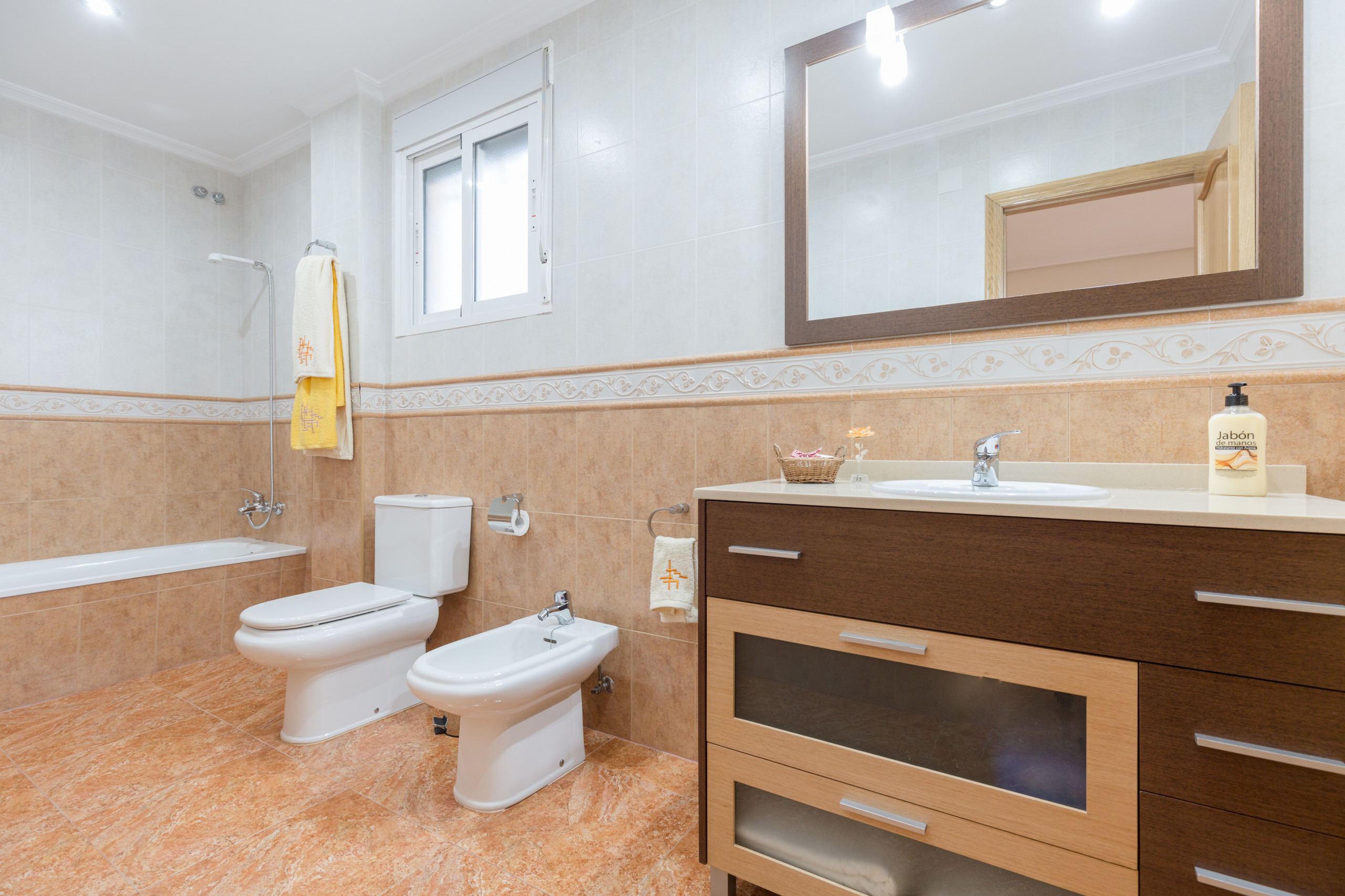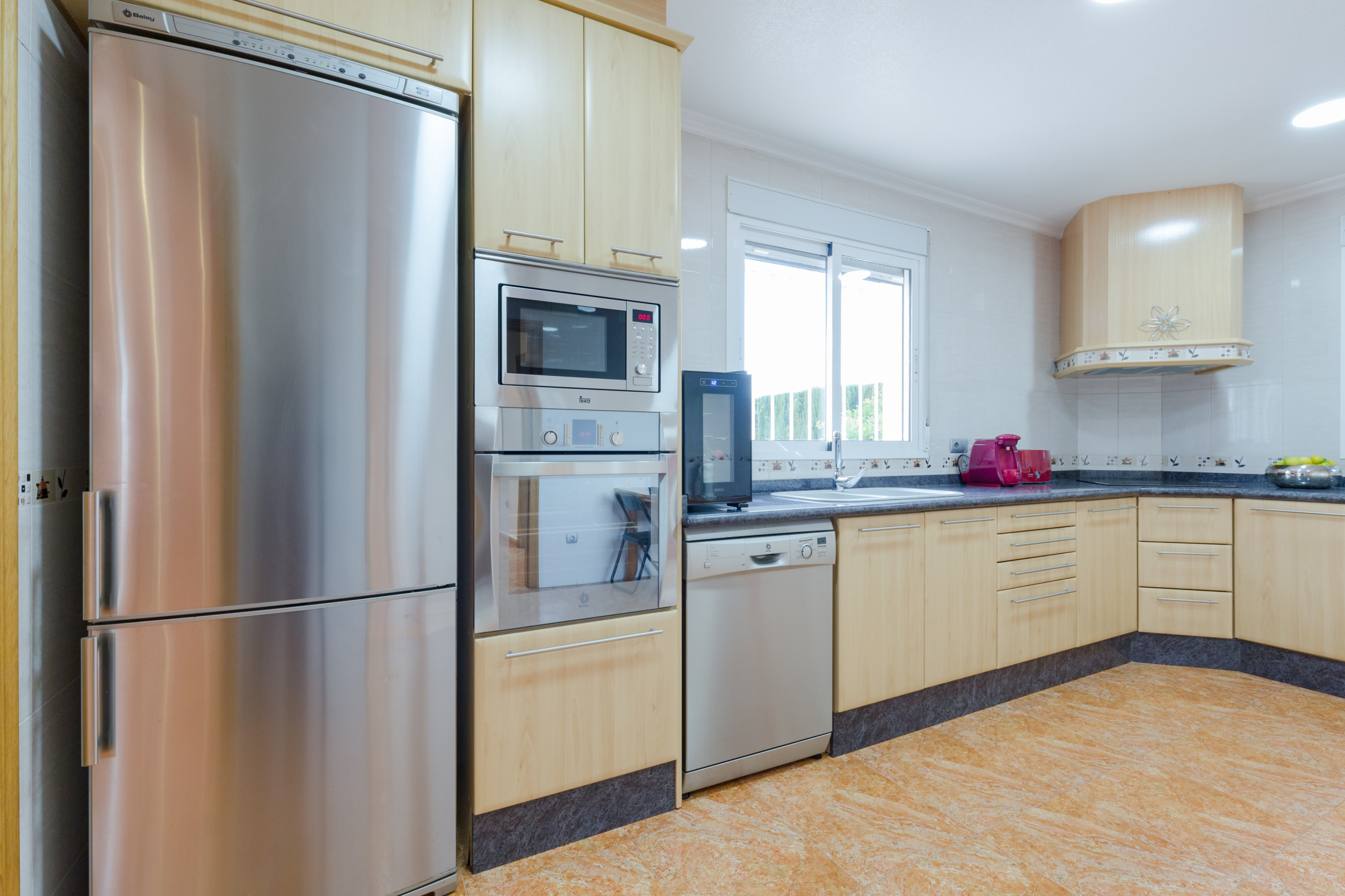 The independent kitchen, of vitroceramic, is equipped with refrigerator, microwave, oven, freezer, washing machine, dryer, dishwasher, dishes/cutlery, kitchen utensils, coffee machine, toaster, kettle and juicer.
