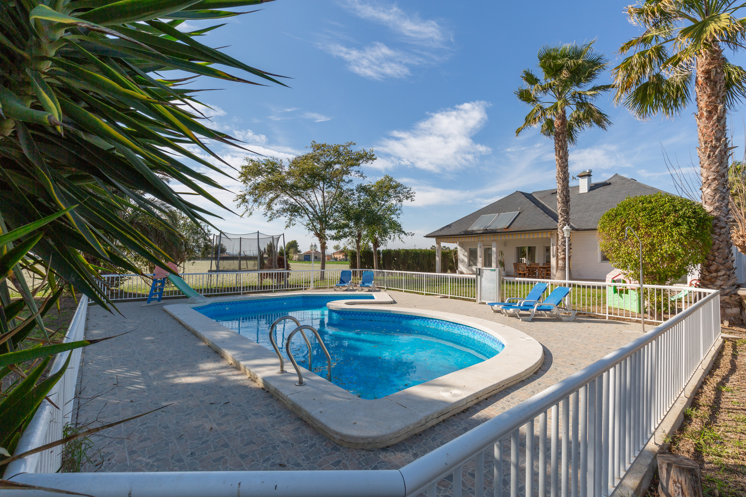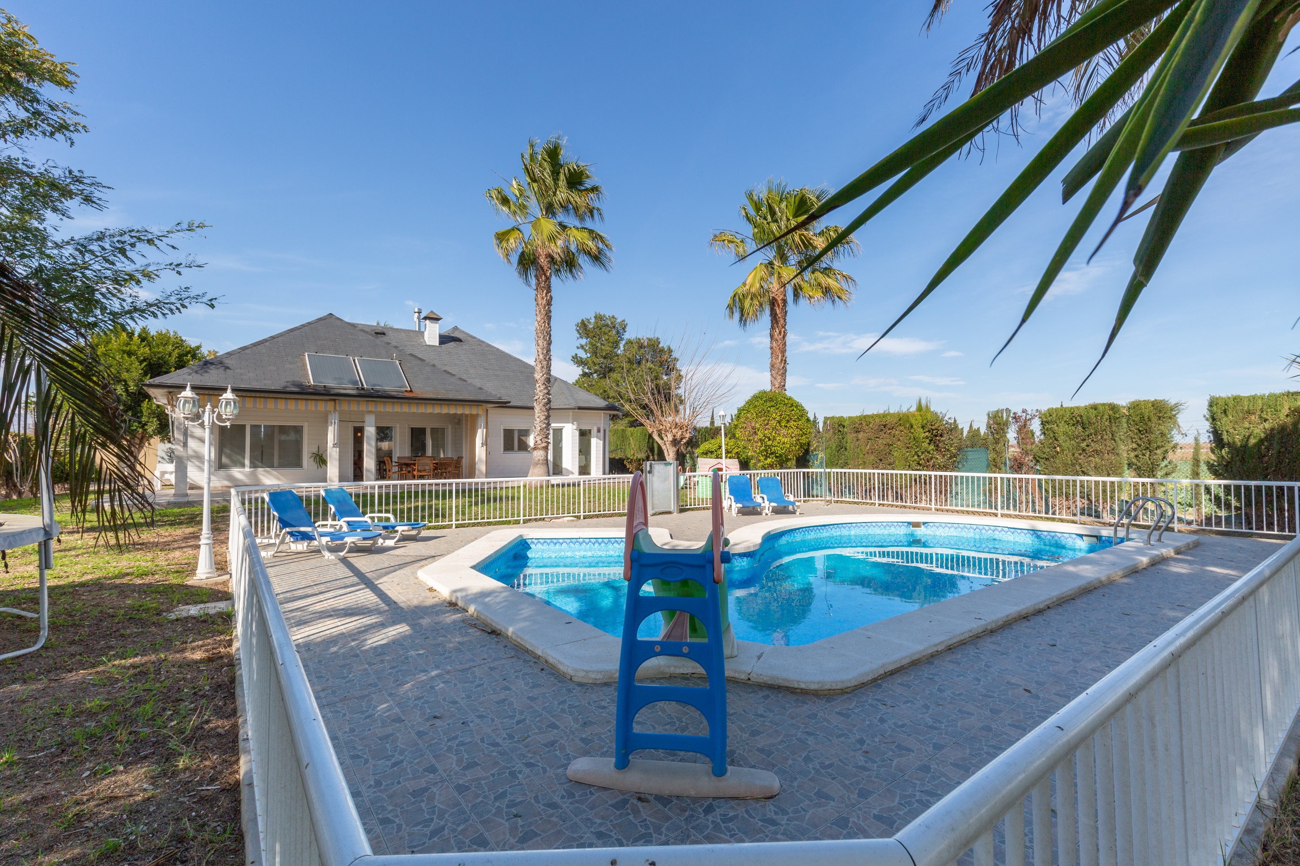 It has a garden, garden furniture, a fenced plot of 3700 m2, 50 m² of terrace, iron, internet access, hairdryer, balcony, children's area, tennis court, heat pump heating, air conditioning throughout the accommodation, private pool, parking covered in the same building, 2 televisions, satellite tv (Languages: Spanish, English, German, Dutch, French, Russian, Swedish, Norwegian).