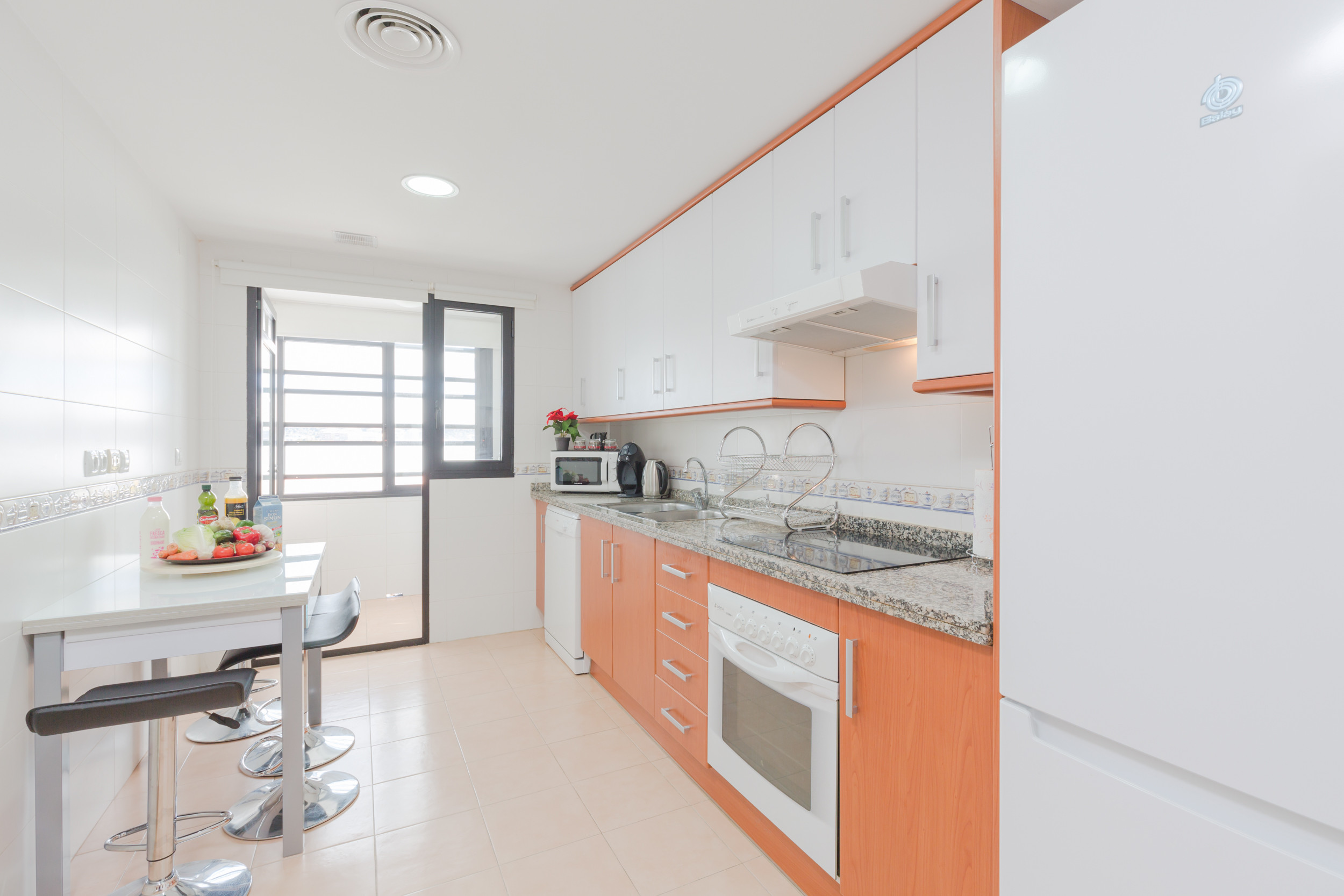 The 110m2 apartment has a living room, kitchen with gallery, 3 double bedroom (s) and two full bathrooms. Capacity for 8 people It has elevator, 10 m² terrace, iron, internet access (wifi), hairdryer, playground, squash court, gym, heat pump, air conditioning, community pool, garage in the same building, TV. In the independent kitchen, refrigerator, microwave, oven, freezer, washing machine, dishes / cutlery, kitchen utensils, coffee machine, toaster, kettle and juicer are provided.