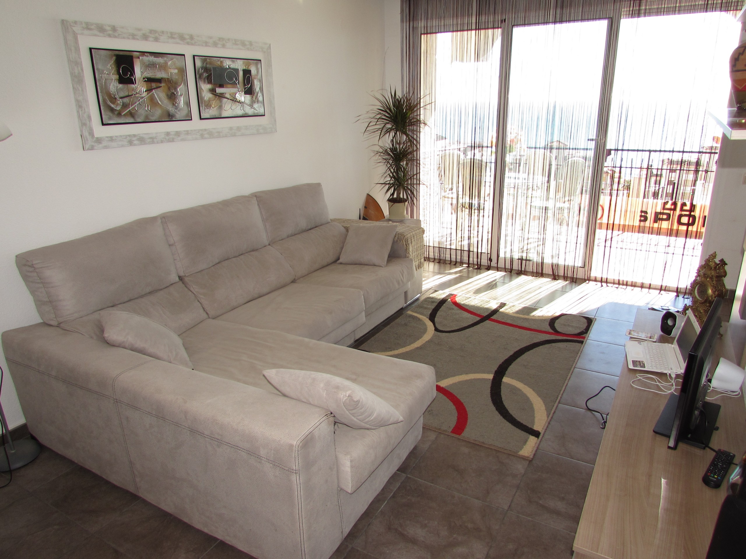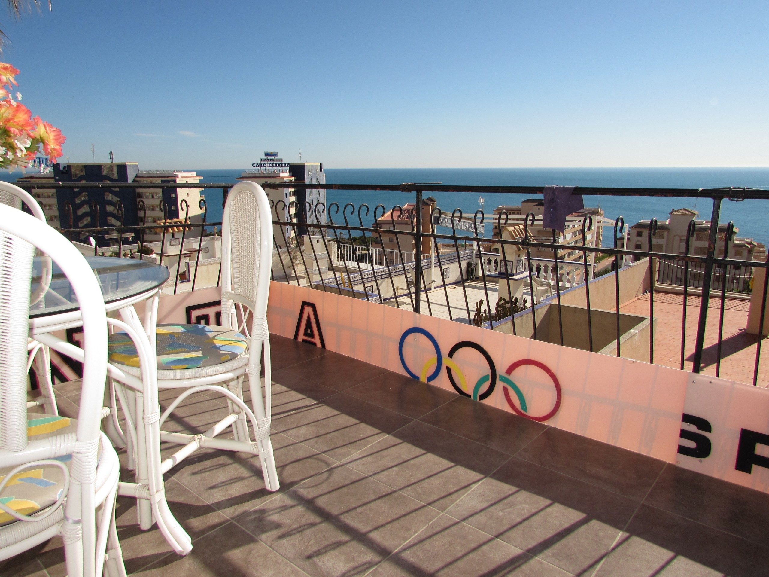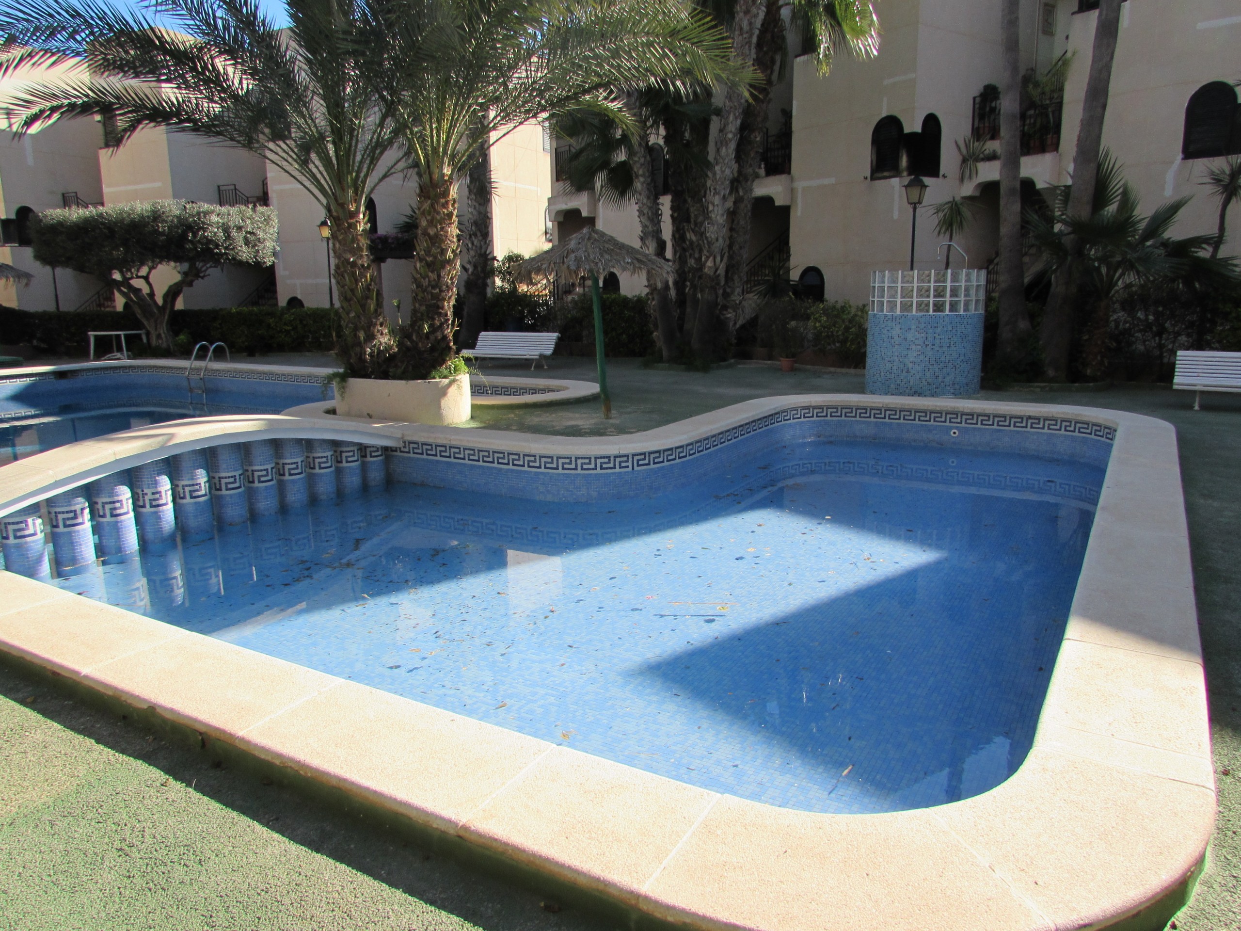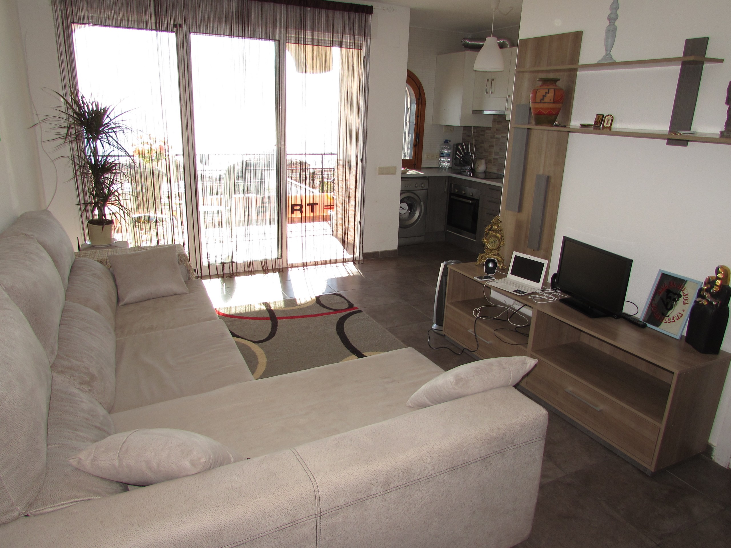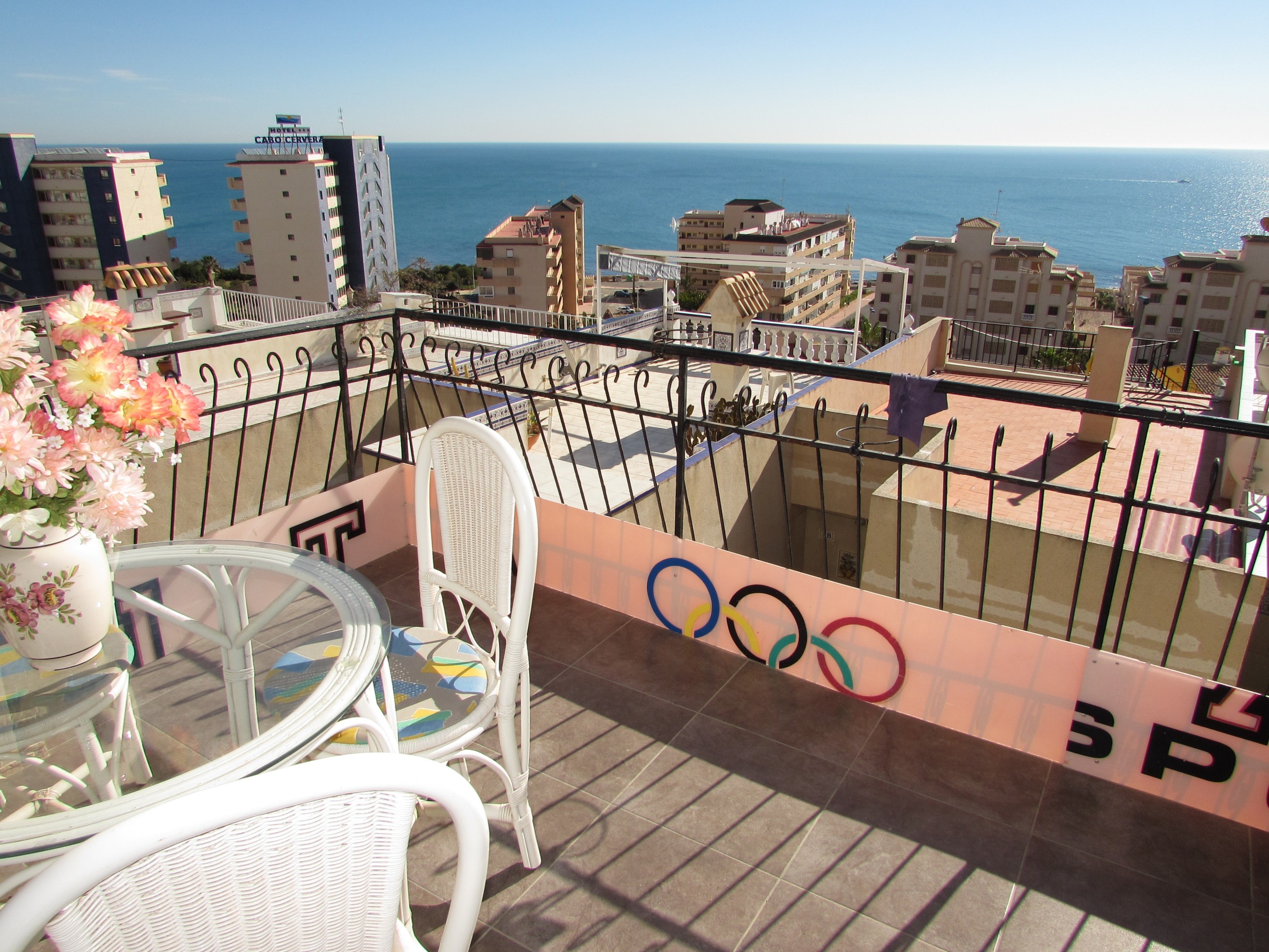 For rent apartment with frontal view of the sea located in the beach area of La Mata. It is 47 m2 and consists of a salon, bedroom, kitchen, bathroom and a balcony with a stunning view of the sea. The complex has a communal swimming pool with adult and children's section and a lovely green area. It is equipped with air conditioner in the living room, furniture, appliances, dishes, linens and towels. Spanish and Russian TV is also available. Within walking distance there is supermarket, bars, restaurants, local bus stop and much more local amenities. The sea is 150 meters away. The property sleeps up to three people. Smoking is permitted only on the balcony!