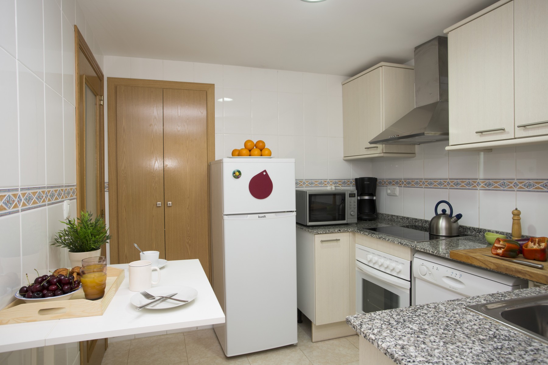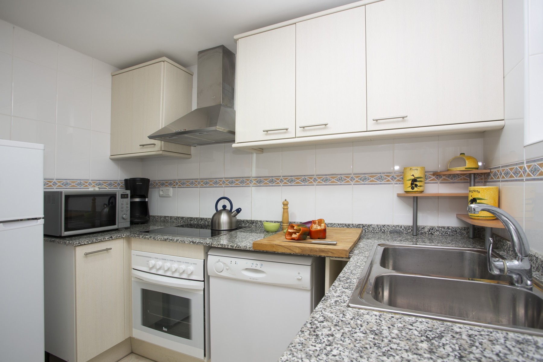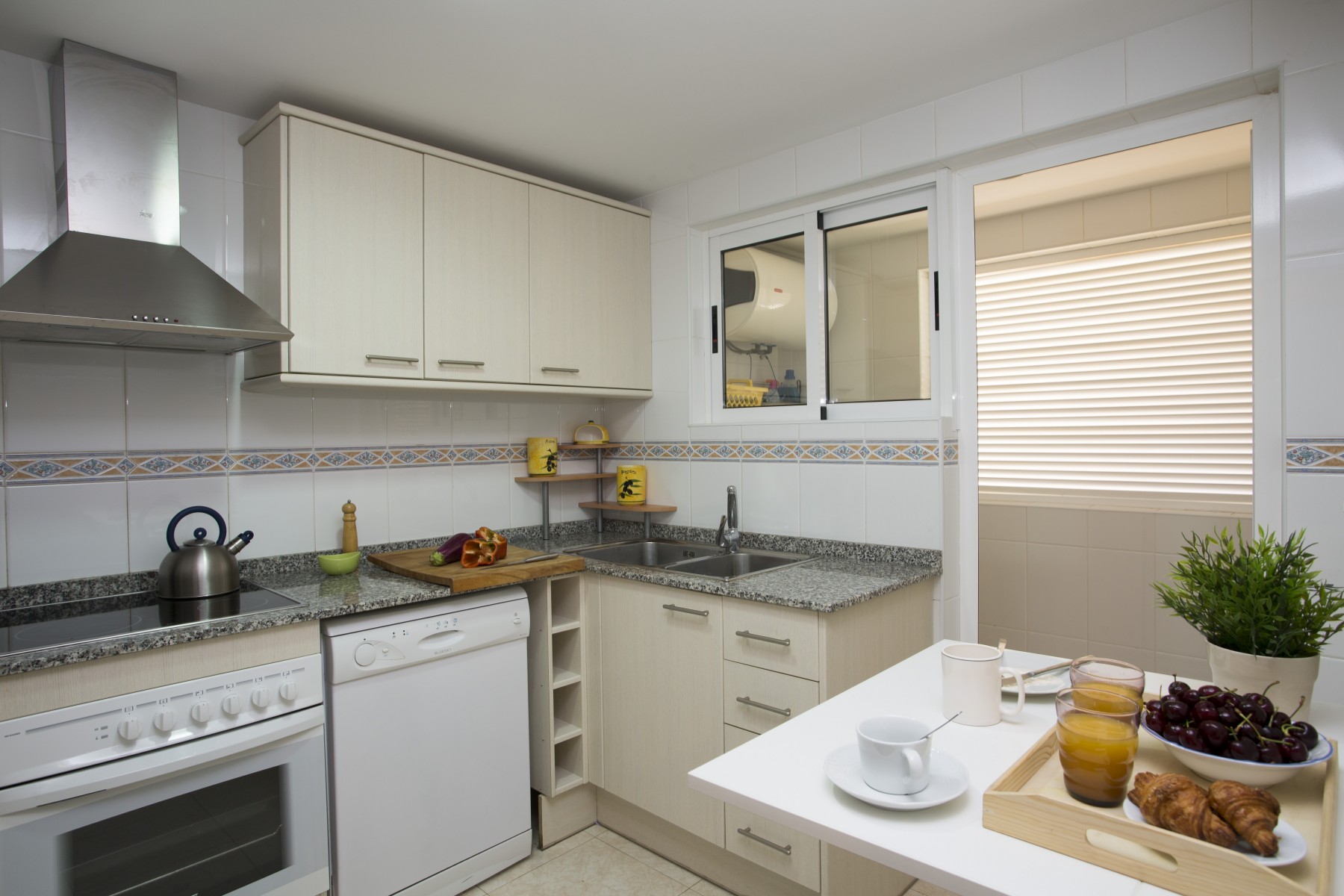 In the vitroceramic independent kitchen, refrigerator, microwave, oven, freezer, washing machine, dishwasher, dishes/cutlery, kitchen utensils, coffee machine, toaster, kettle and juicer are provided.