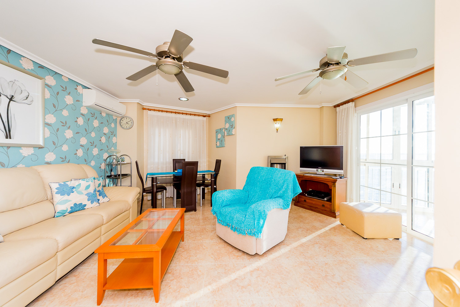 This apartment has stunning views over to the sea, promenade and the port area. It is spread out over 146 m2, and located near the blue flag beach of Del Cura. It consists of 4 bedrooms, spacious lounge, separate kitchen, 2 bathrooms and 3 terraces. The apartment is fully furnished, and equipped with linens, towels, dishes. It is walking distance to many shops, supermarket and much more local amenities. Los Locos blue flag beach is also in walking distance along the promenade. It can sleep up to 8 people. There is no English television but almost all the shows and movies on Spanish channels can be seen in the original version (English).