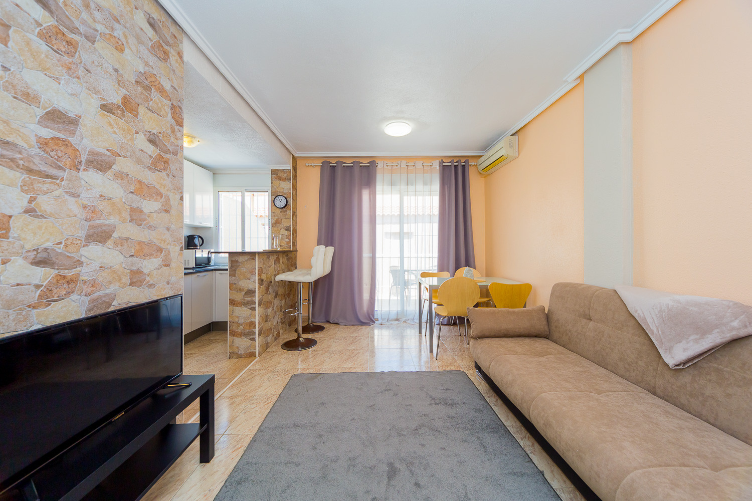 We offer to rent a nice apartment with two bedrooms on the top floor of the building with no lift and within walking distance of the popular beach of Los Locos. The apartment is spread out over 53 m2 and consists of a living room, an American kitchen, two double bedrooms, a bathroom and a large private balcony. It is fully equipped with furniture, appliances, dishes, linens and towels. There is an air conditioning in the living room. On the balcony there is summer furniture and barbecue. Spanish television is available and internet. The popular Los Locos beach is less than 300 meters away. On the seafront there are many traditional tapas bars and restaurants.There are many local amenities all in walking distance including bars eateries, supermarkets, banks shops and much more. It can accommodate up to five people. No pets are permitted and smoking is only allowed on the balcony.