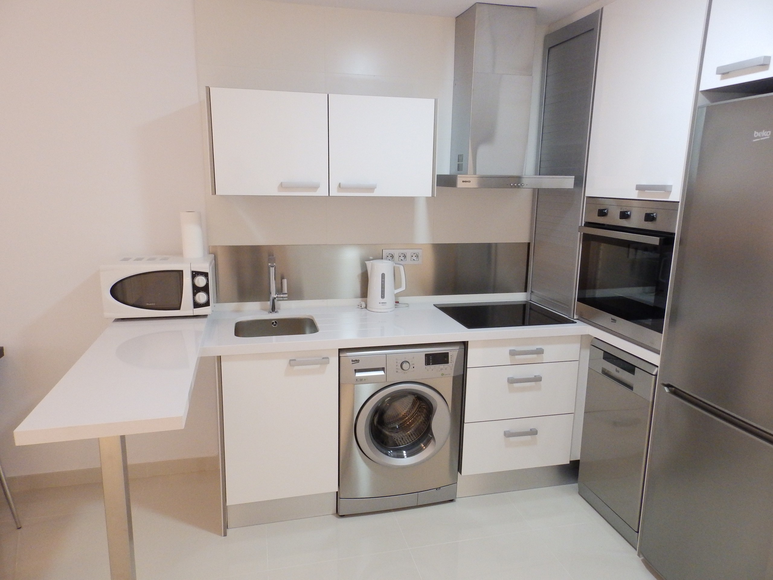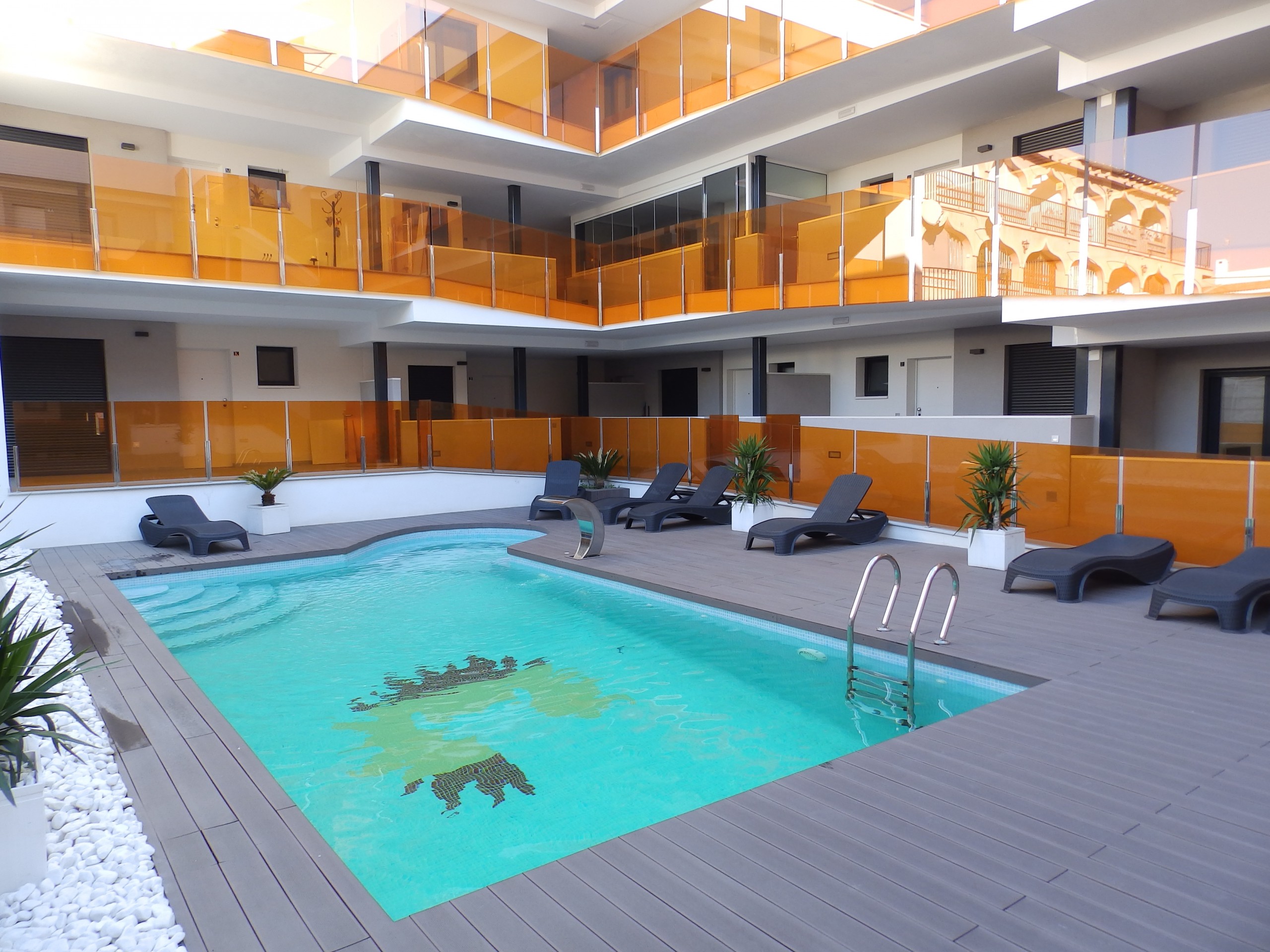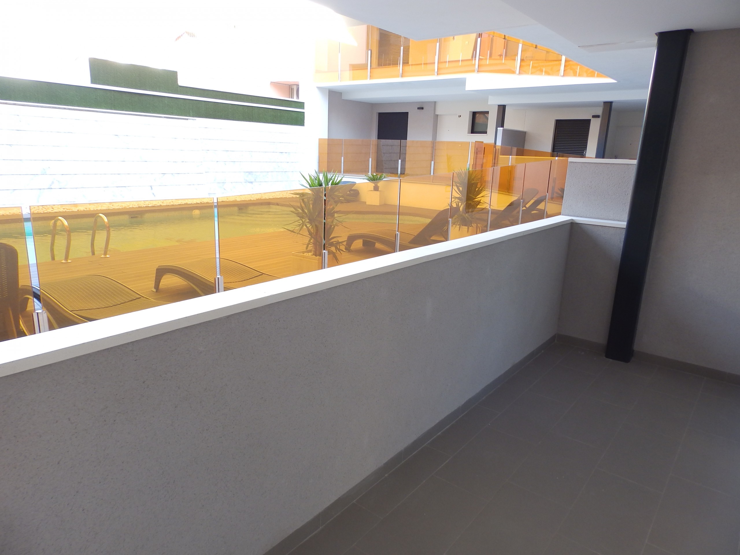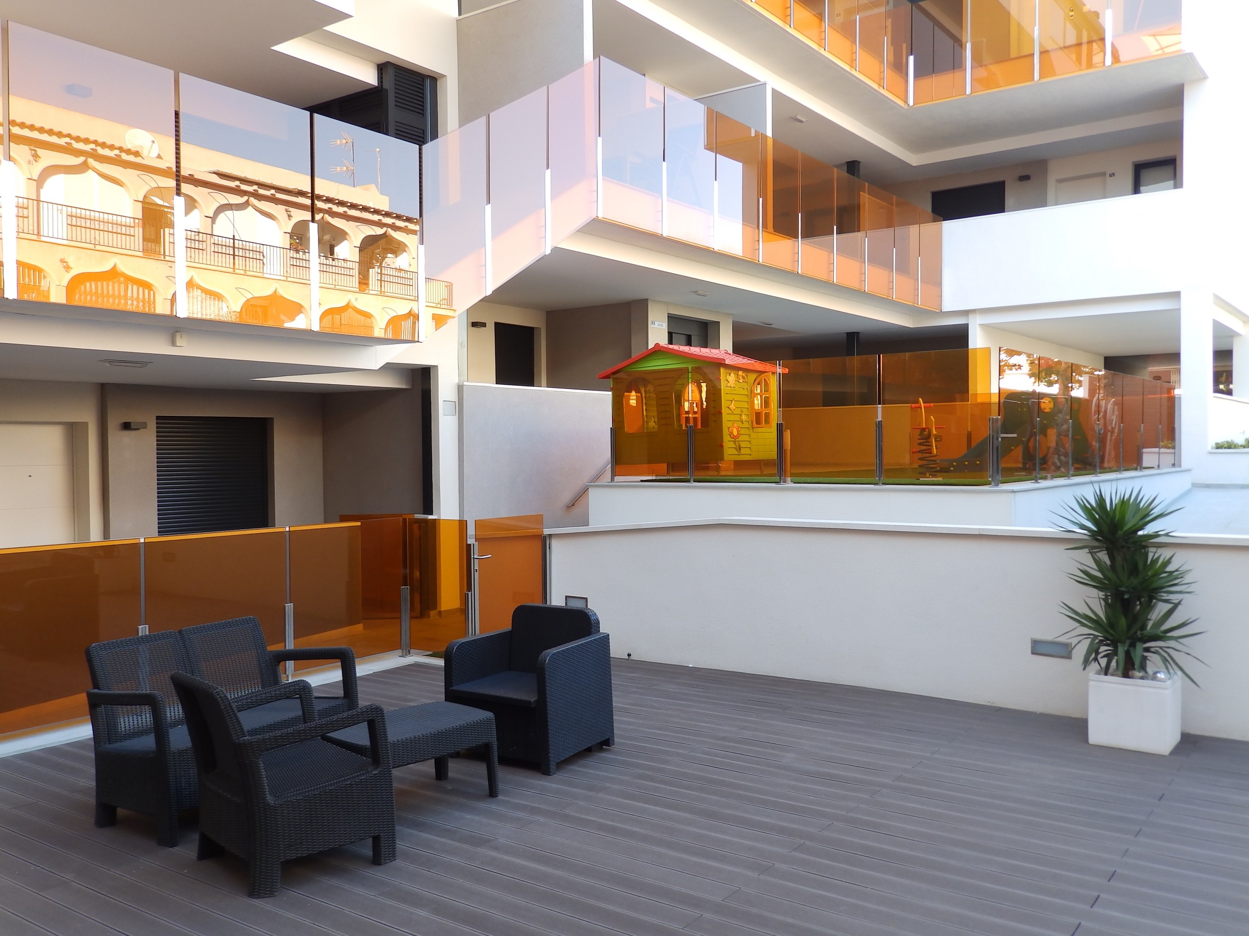 For rent a two bedroom apartment in a modern complex built in 2015 called Residencial Alegría 1. The area of the apartment is 75 m2 and consists of two bedrooms, spacious and bright and airy lounge, American-style kitchen, two bathrooms, balcony and terrace overlooking the communal swimming pool. The apartment is equipped with furniture, household appliances (including dishwasher), central air conditioning, kitchen utensils, linens and towels. Spanish television is available. It features a saltwater communal swimming pool and Jacuzzi, sauna, sports and children's playground, solarium and barbecue area on the rooftop. It is within walking distance of many bars, restaurants and all local amenities. It is approximately a 6 minute’s walk to the blue flag beaches of Los Locos and Del Cura. It sleeps up to five people. Pets are not allowed and smoking is only permitted on the terrace or in the solarium.