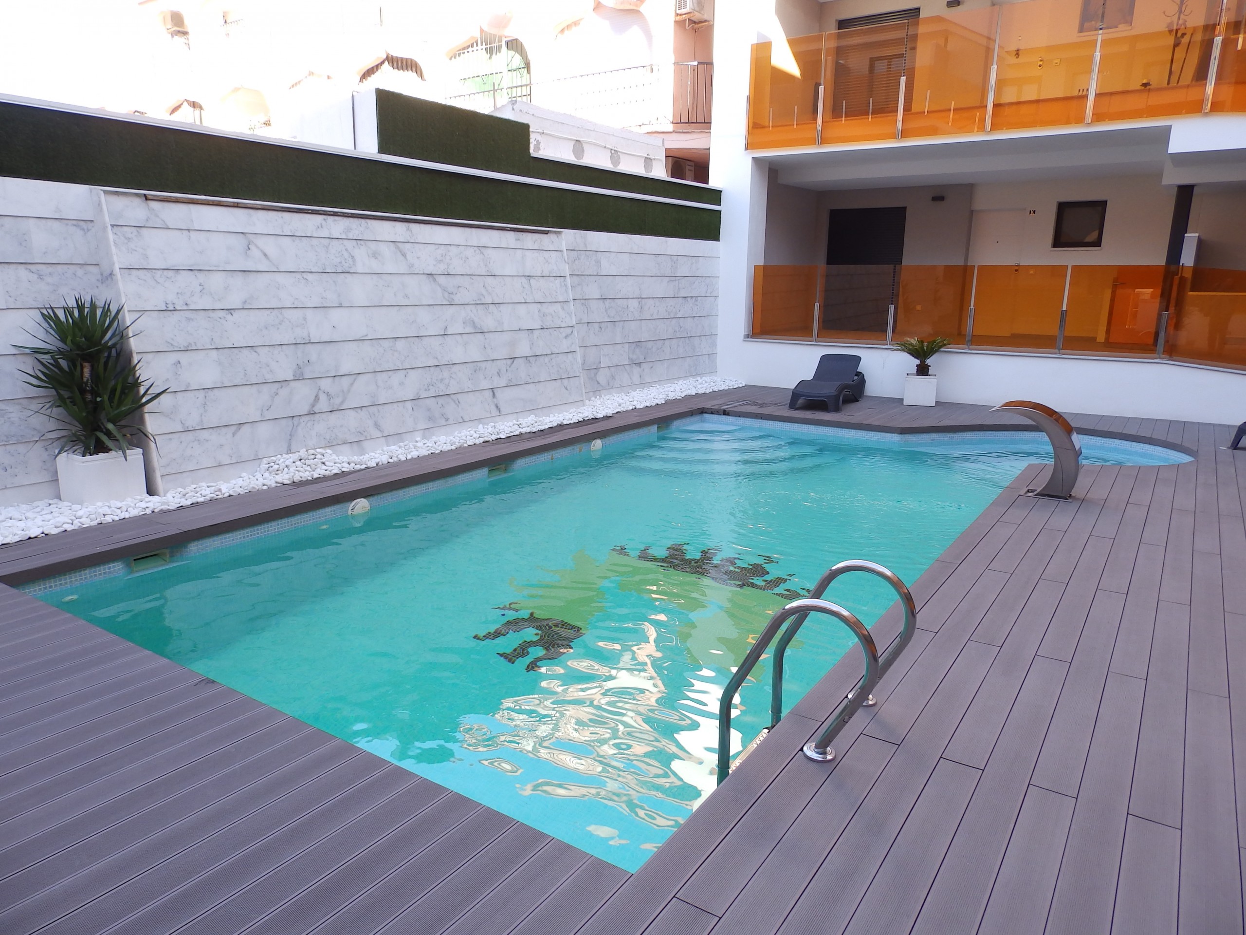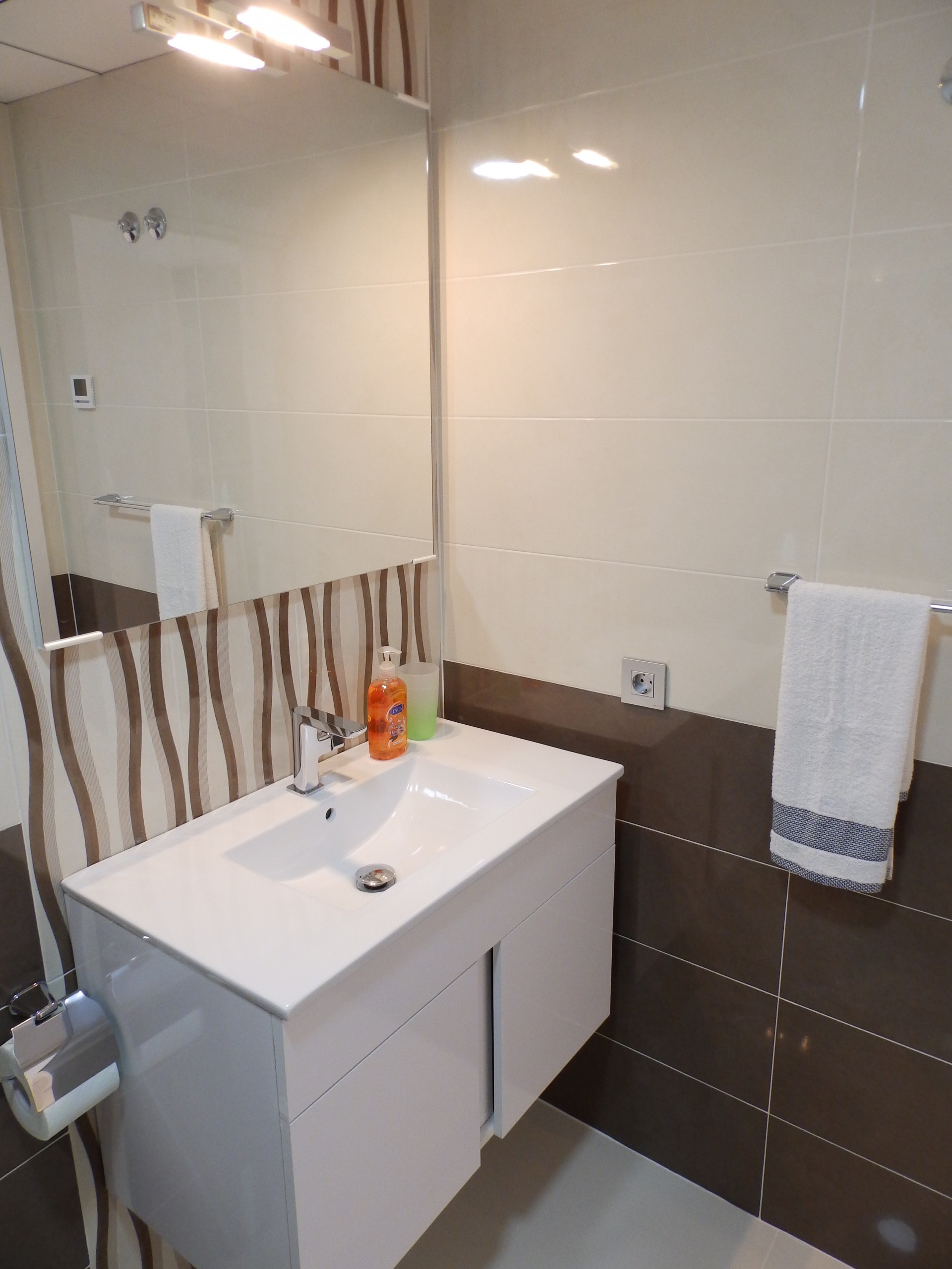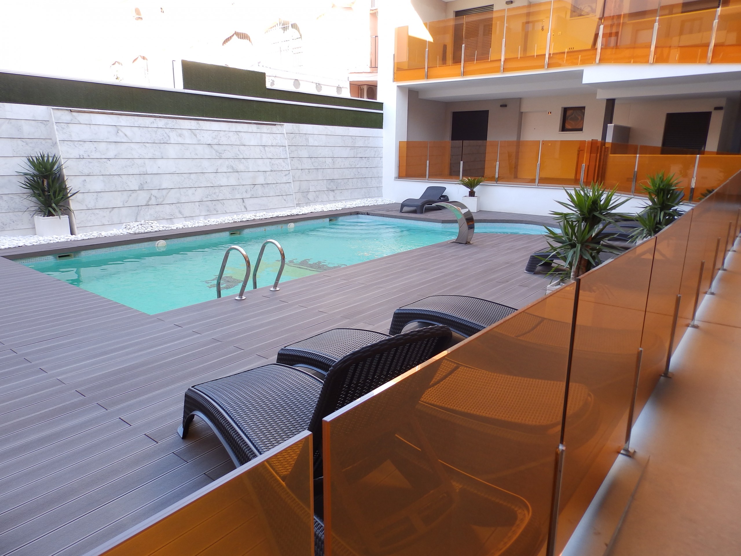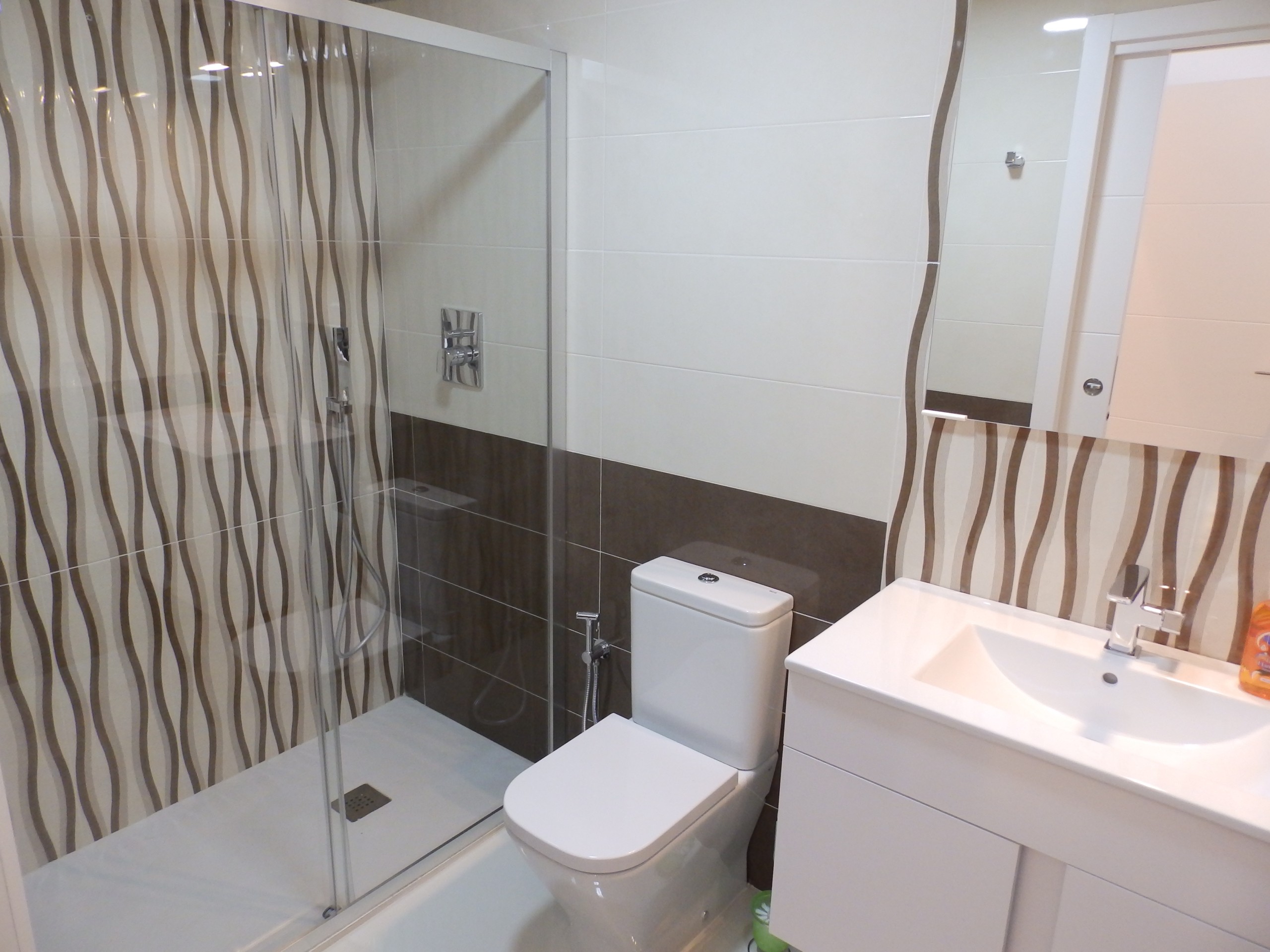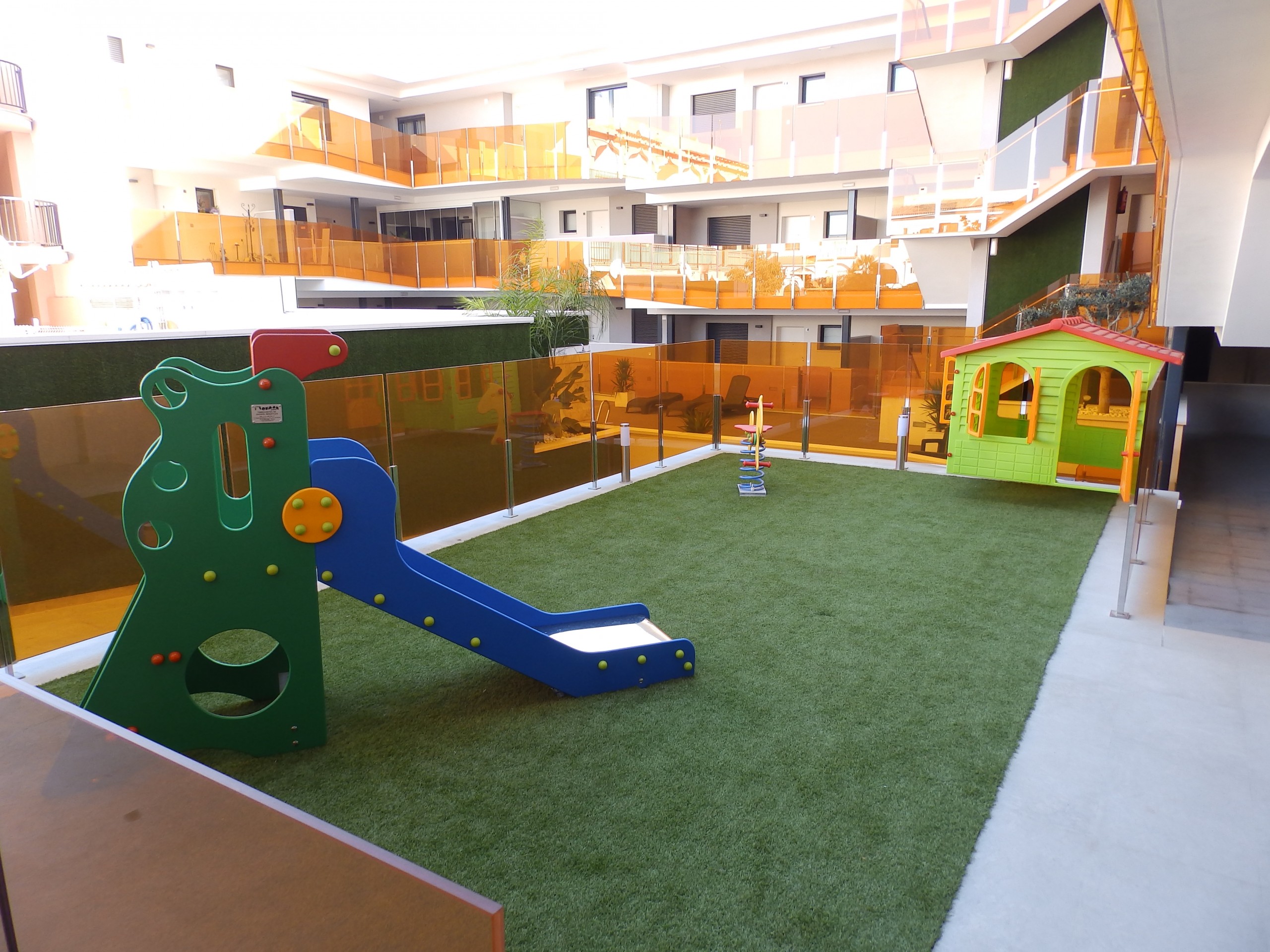 For rent a two bedroom apartment in a modern complex built in 2015 called Residencial Alegría 1. The area of the apartment is 75 m2 and consists of two bedrooms, spacious and bright and airy lounge, American-style kitchen, two bathrooms, balcony and terrace overlooking the communal swimming pool. The apartment is equipped with furniture, household appliances (including dishwasher), central air conditioning, kitchen utensils, linens and towels. Spanish television is available. It features a saltwater communal swimming pool and Jacuzzi, sauna, sports and children's playground, solarium and barbecue area on the rooftop. It is within walking distance of many bars, restaurants and all local amenities. It is approximately a 6 minute’s walk to the blue flag beaches of Los Locos and Del Cura. It sleeps up to five people. Pets are not allowed and smoking is only permitted on the terrace or in the solarium.