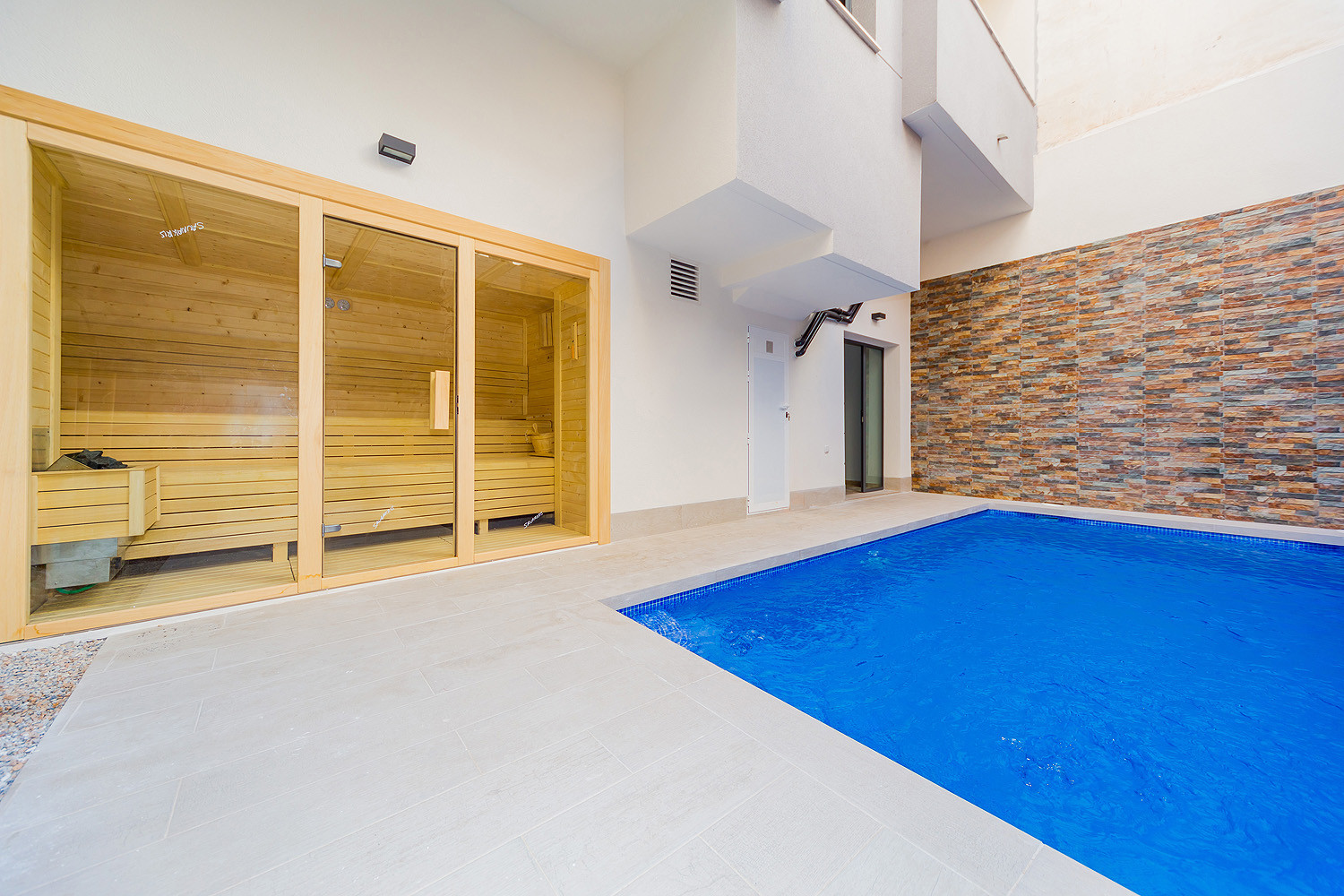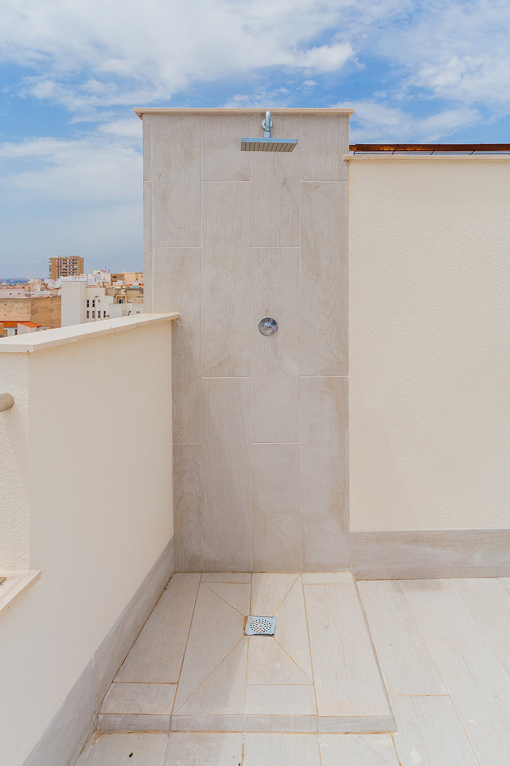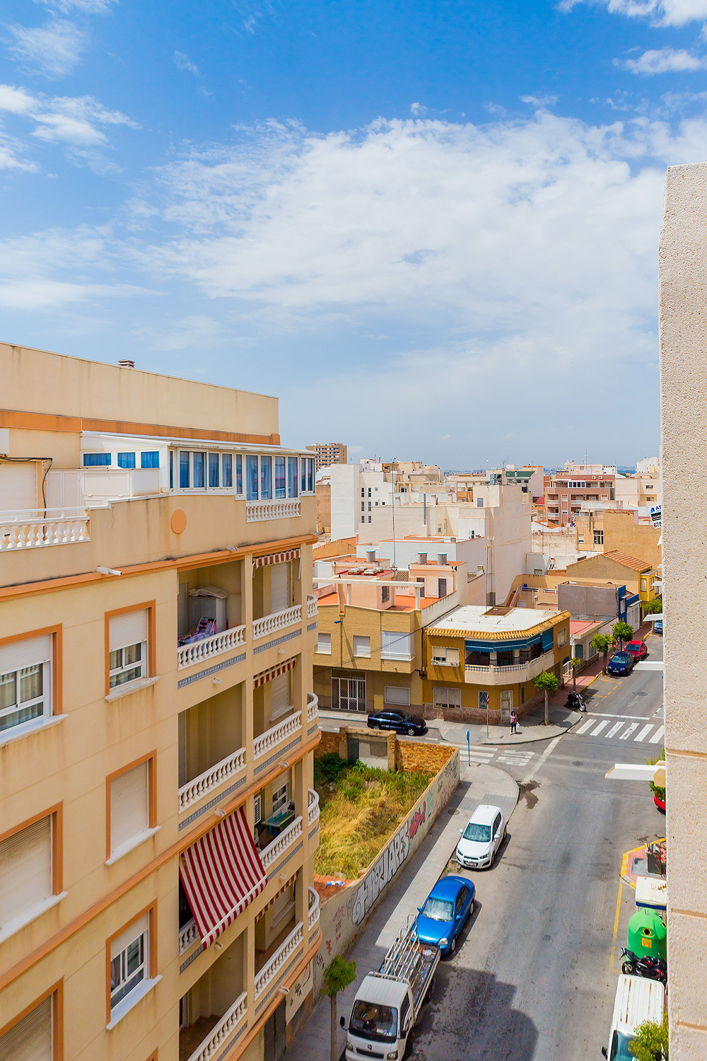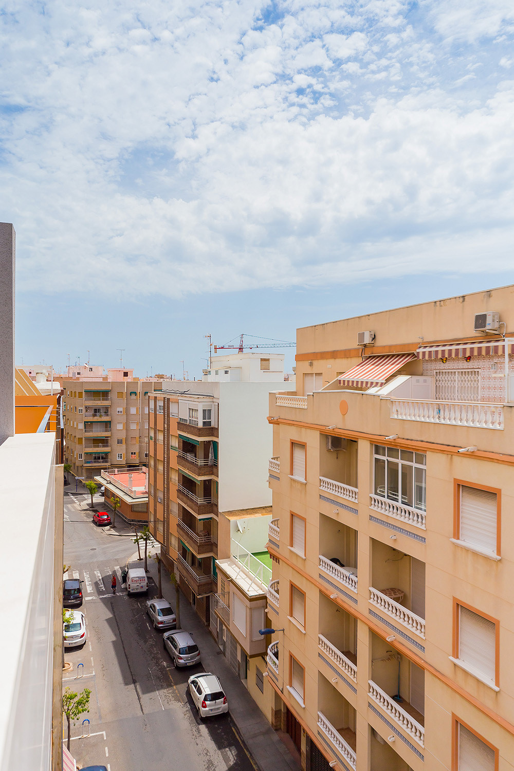 The apartment is fully equipped with furniture, appliances (including dishwasher), dishes, linens and towels. On the terrace there are summer furniture, in the solarium there are sun loungers and barbecue. The air conditioning is centrally controlled. It only has Spanish television. The building has its own communal swimming pool and Finnish sauna. It is centrally located and there are many traditional tapas bars, restaurants, supermarkets all in walking distance. The popular Del Cura beach is located about 200 meters away. It can accommodate a maximum of 4 people. No animals are permitted and smoking is only allowed on the balcony.