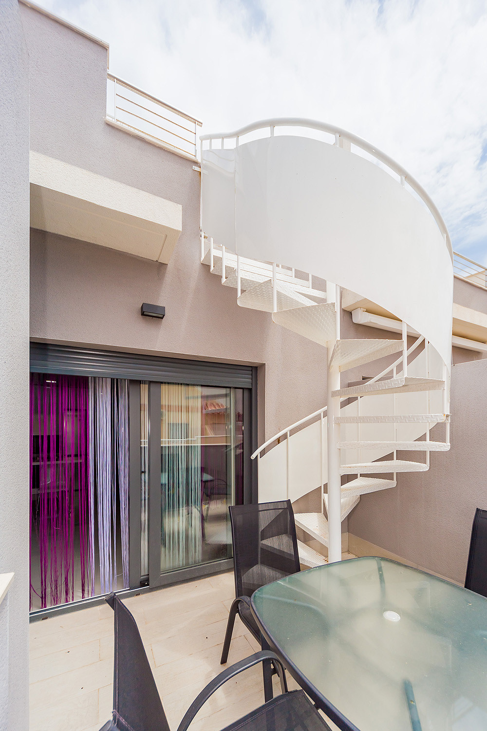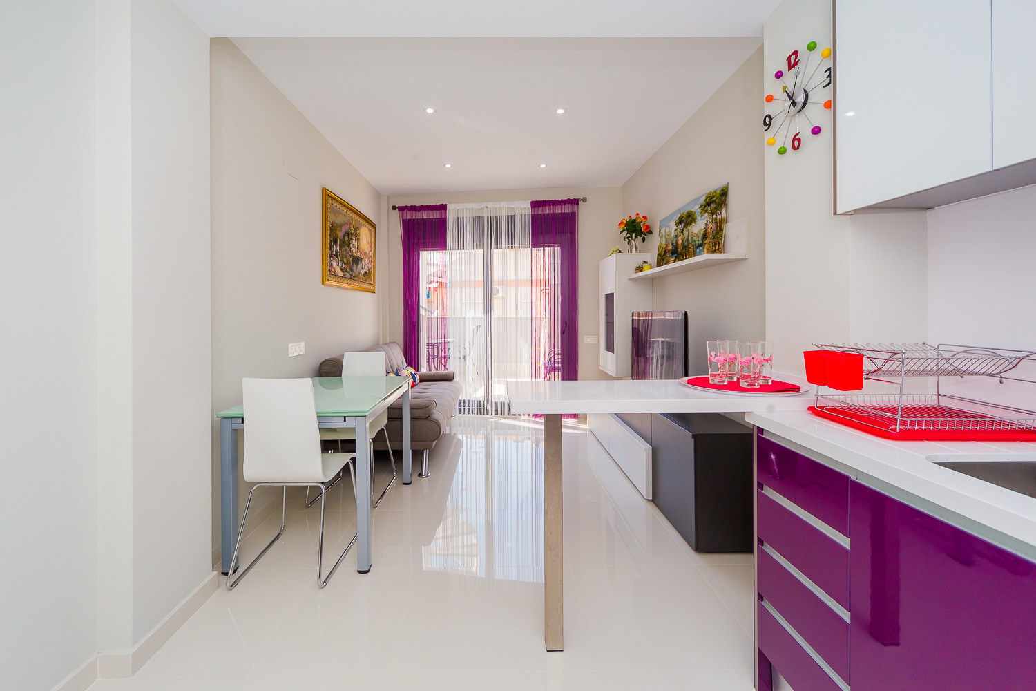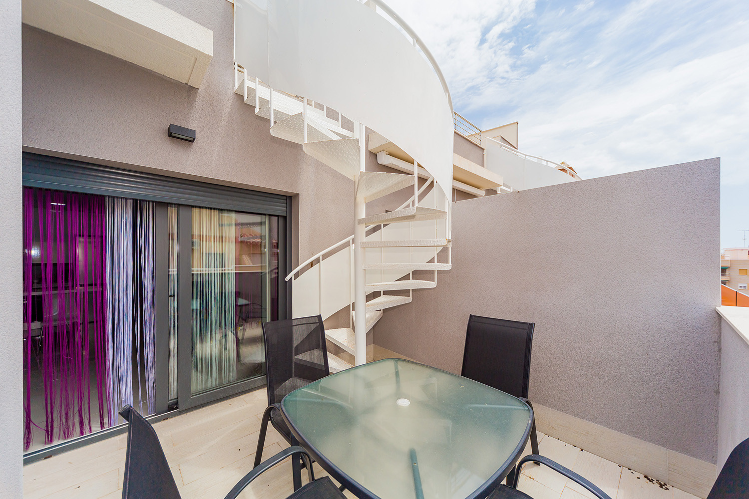 A cozy one bedroom apartment for rent in a new complex "Residential Alegria III" three minutes walk from the beach of El Cura! Swimming pool, solarium, barbecue The lodging option - up to 4 people. For rent this new Penthouse apartment with one bedroom in a modern complex built in 2017 "Residential Alegría III". The property is spread out over 77 m2 (45 m2 of living space and 32 m2 - terrace). It consists of a living room, bedroom, bathroom, kitchen, terrace 9 m2 and a large solarium of 23 m2.