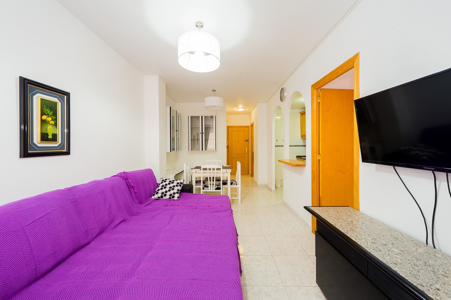 A cozy one bedroom apartment in the Los Locos beach area. It is set out over 51 m2 apartment and consisting of a living room, a bedroom, a French style kitchen, a bathroom and a balcony. It is complete with furniture, appliances, dishes, linens and towels. The living room is equipped with air conditioning. Spanish and satellite television is available. Los Locos beach is about 250 meters away. There are many bars and restaurants within walking distance, also the local bus stop. It sleeps up to 4 people. No pets are allowed and smoking is only allowed only on the balcony!
