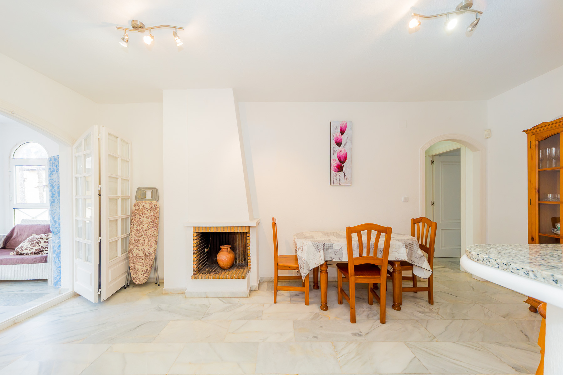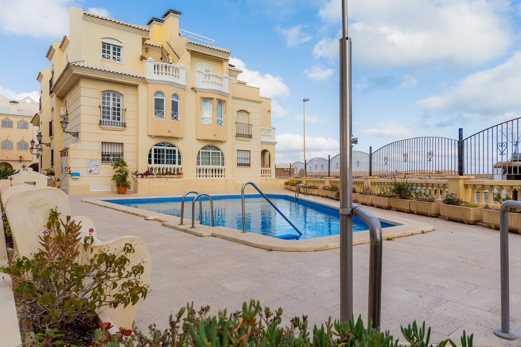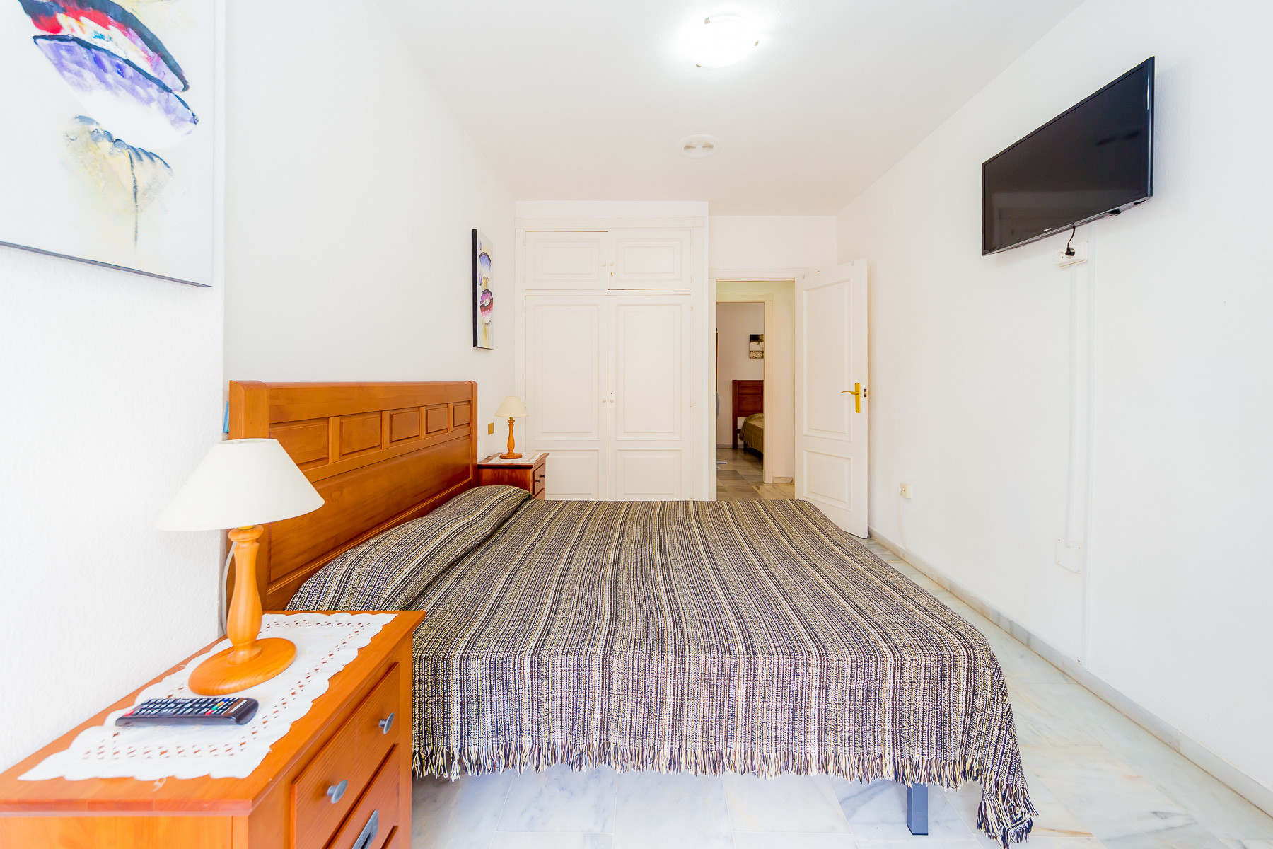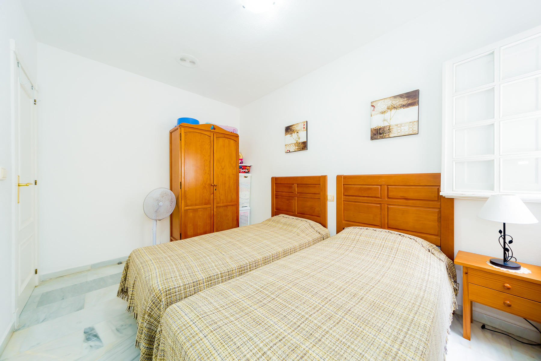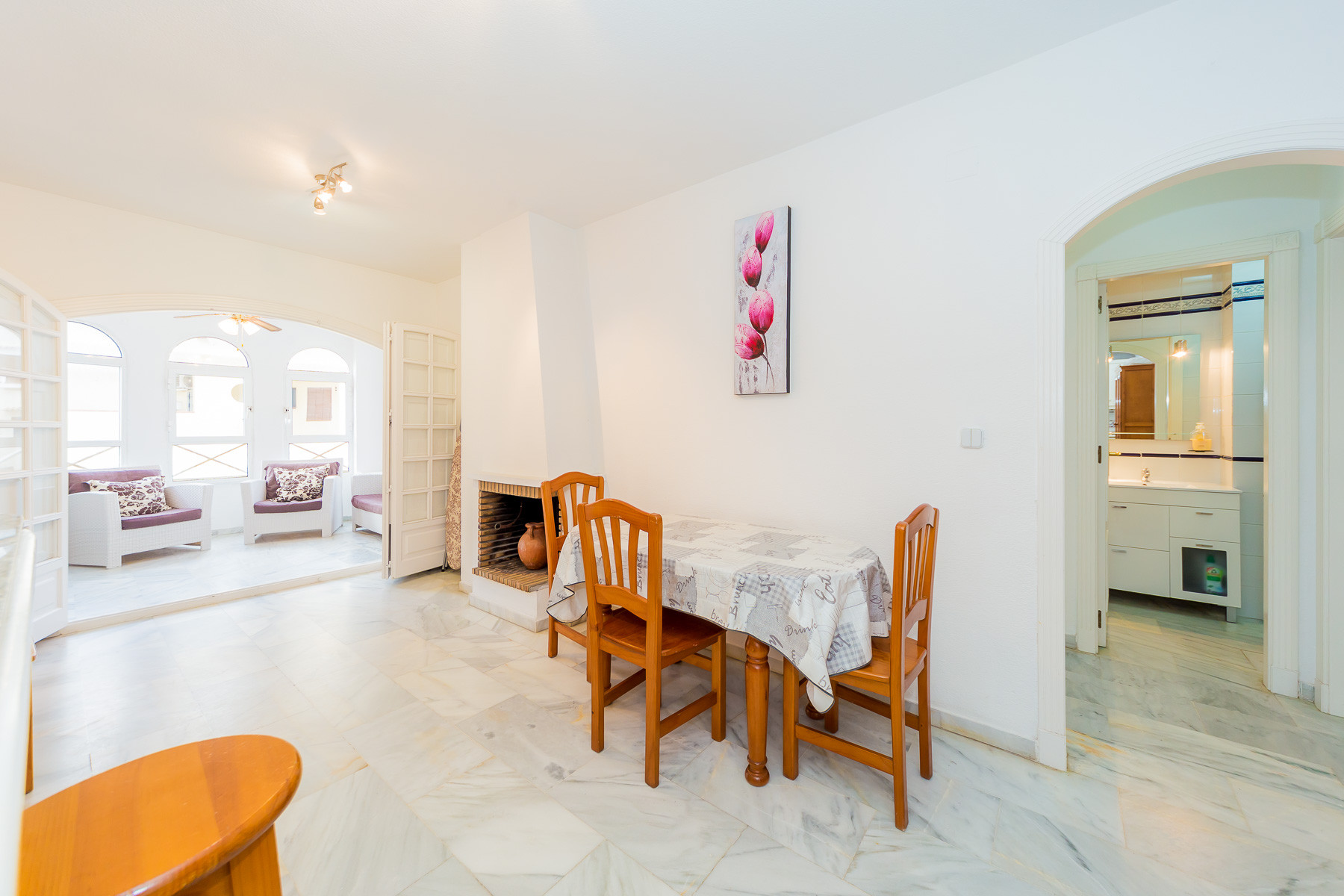 For rent, a lovely beachside apartment with a communal swimming pool. The apartment is fully furnished, equipped for a maximum of four people. It consists of 2 bedrooms, living room, kitchen, bathroom and spacious terrace. The apartment is complete with new furniture and is just 50 meters from the beautiful blue flag beach of Los Locos beach. It is very bright, light and airy furnished in a traditional Spanish style. Spanish TV is available.The air conditioning is only in the living room, but it's enough for all the apartments.
