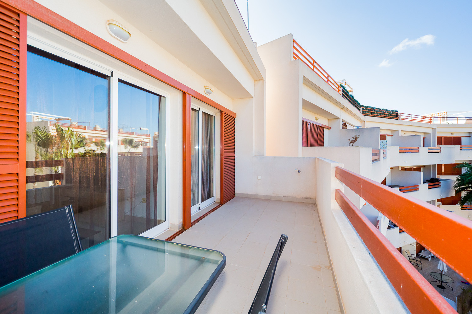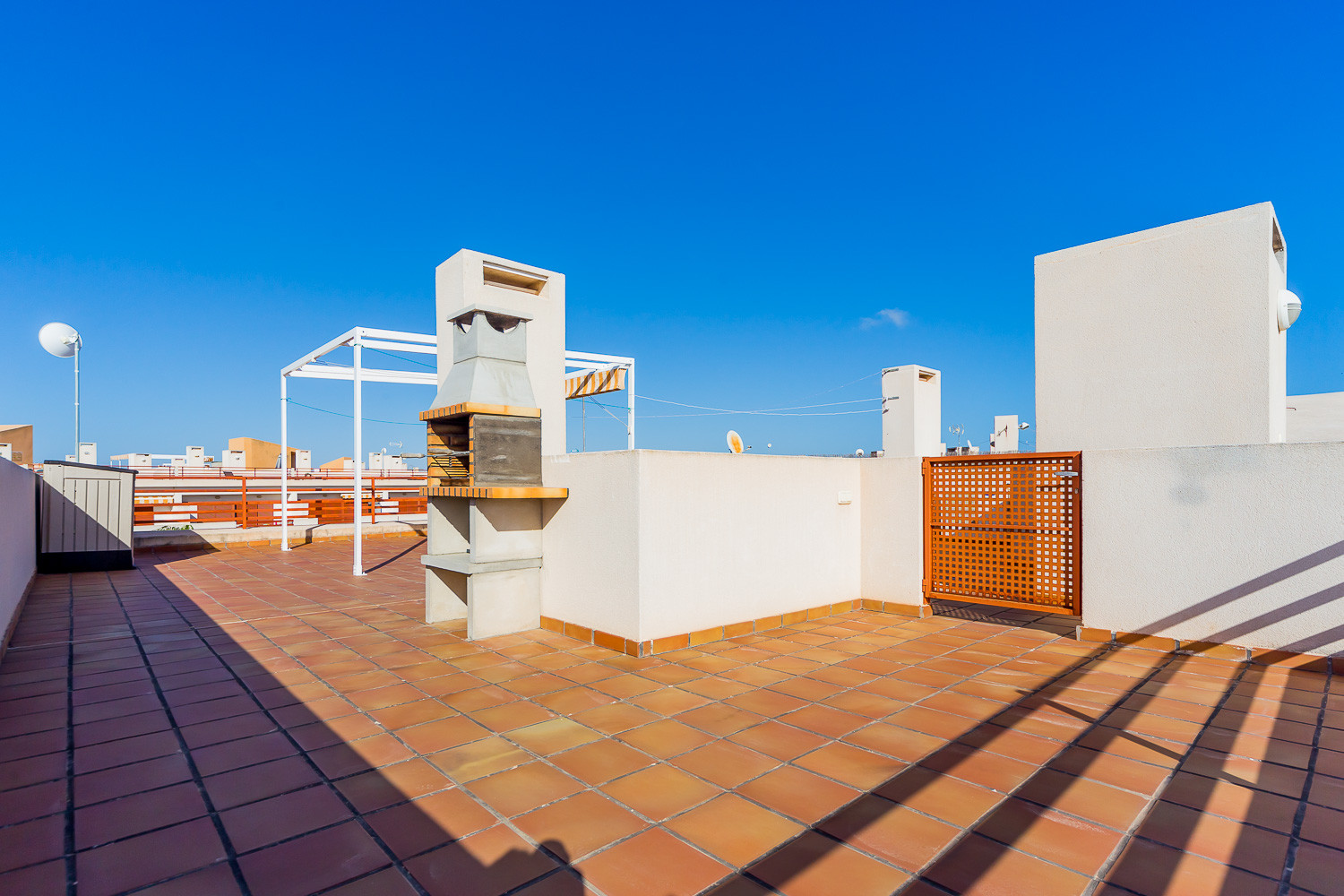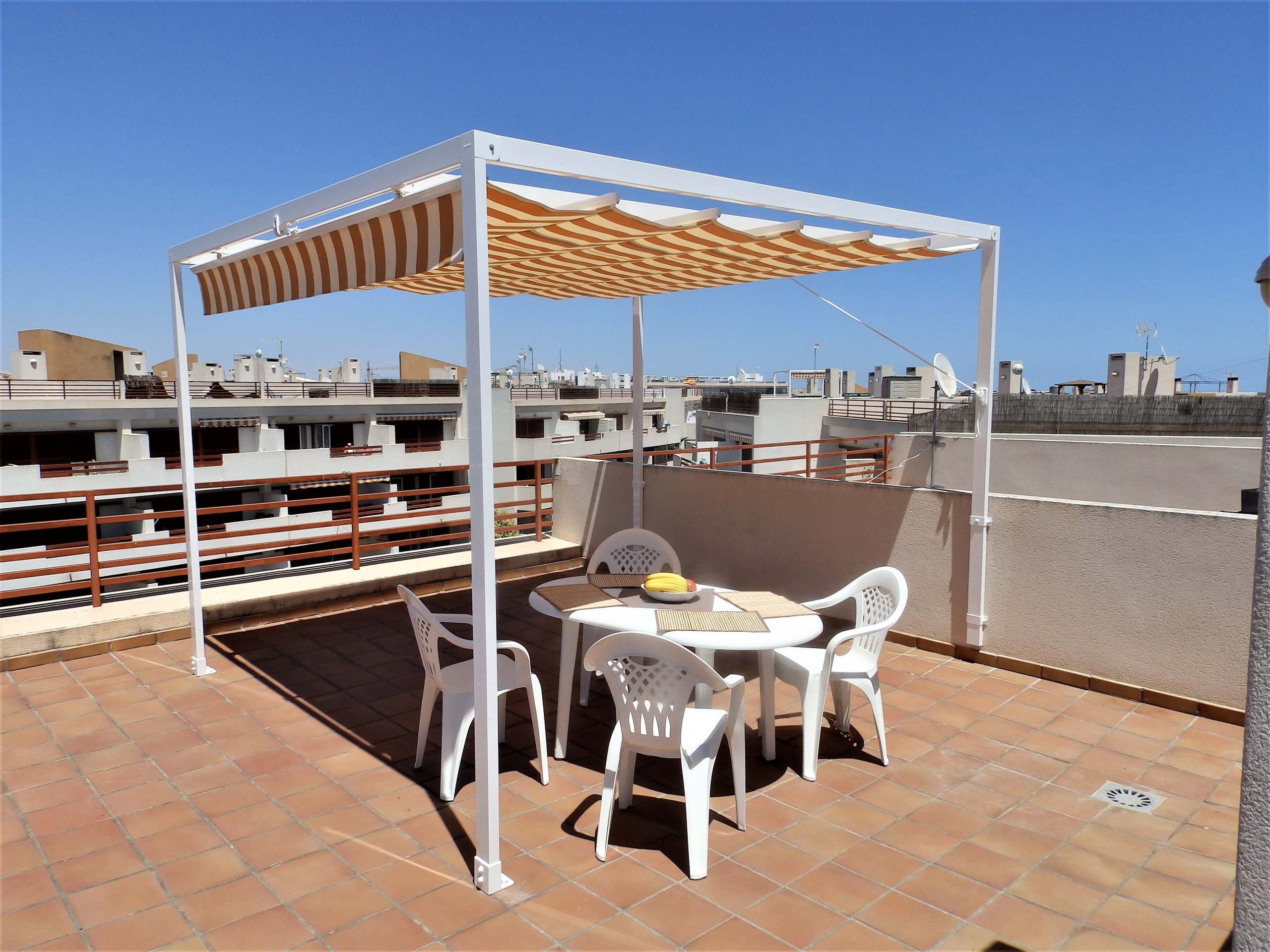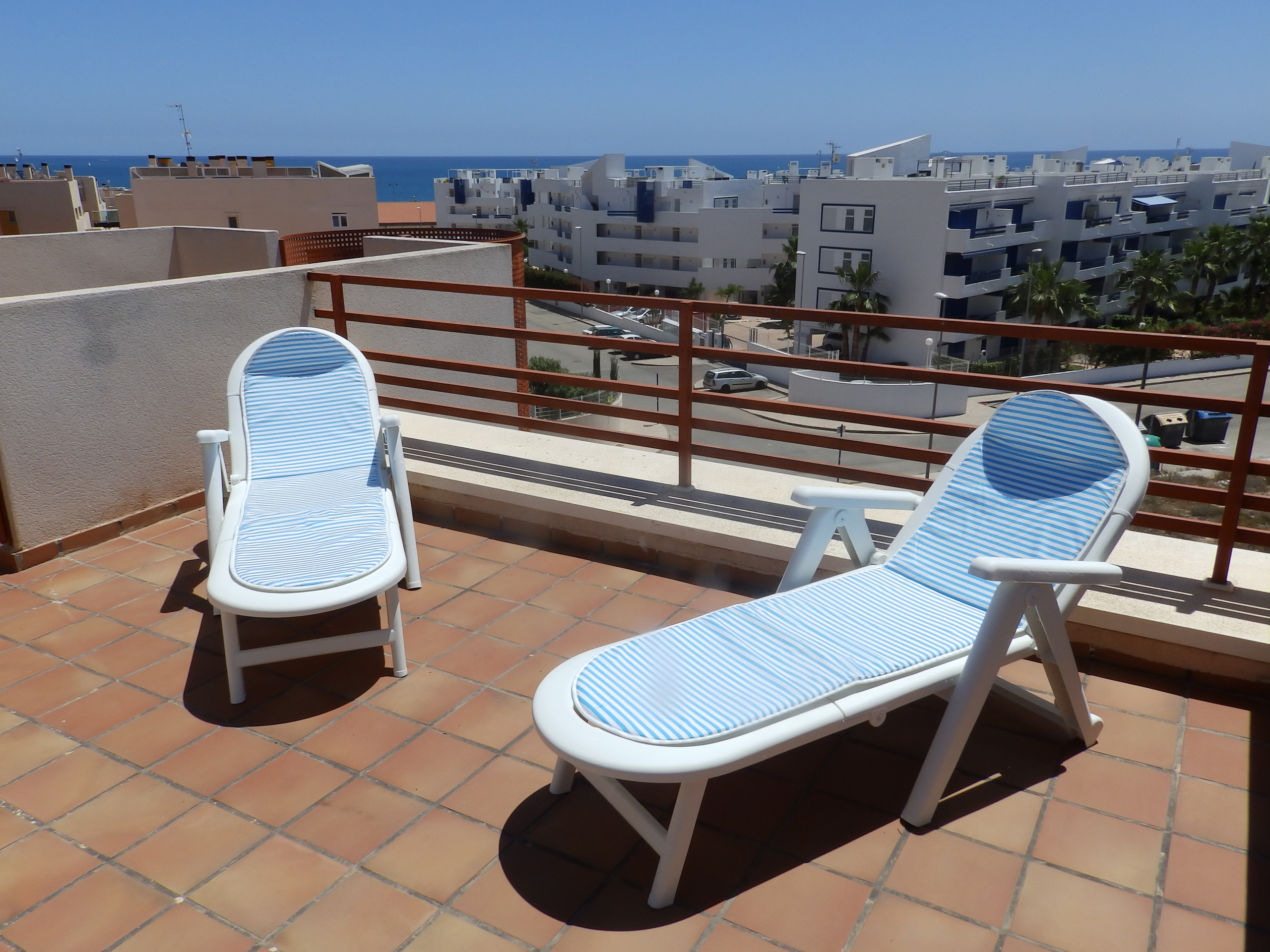 A modern apartment located in a popular area with a lovely green area and two communal swimming pools in Playa Flamenca. It is spread out over 82 m2 and consists of two bedrooms with their own bathrooms, salon, kitchen, utility room and terrace with views of the pool, area and urbanization. Upstairs there is a private solarium complete with a BBQ, which overlooks the sea and the pool also. The apartment is equipped with new furniture (beds with orthopaedic mattresses), electrical appliances (including dishwasher and washing machine, coffee maker, juicer and toaster), bed linen and towels. The terrace and the solarium have outdoor furniture, beds and folding chairs. There is central air conditioning and a TV with Smart-TV. There is also a parking place on the complex. It sleeps up to 4 people No pets are allowed and smoking is prohibited in the apartment. Nearby there are many bars and restaurants also in walking distance is a large supermarket LIDL, Super COR and Carrefour. The Zenia Boulevard shopping complex with its array of over 150 shops, bars, eateries, casino and much more is about 20 minutes on foot. The sea is about 500 meters away.
