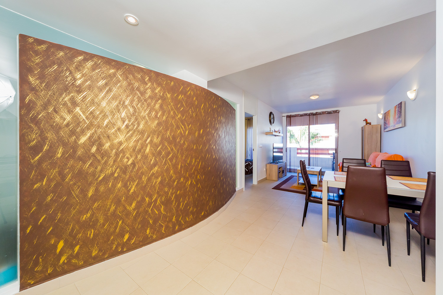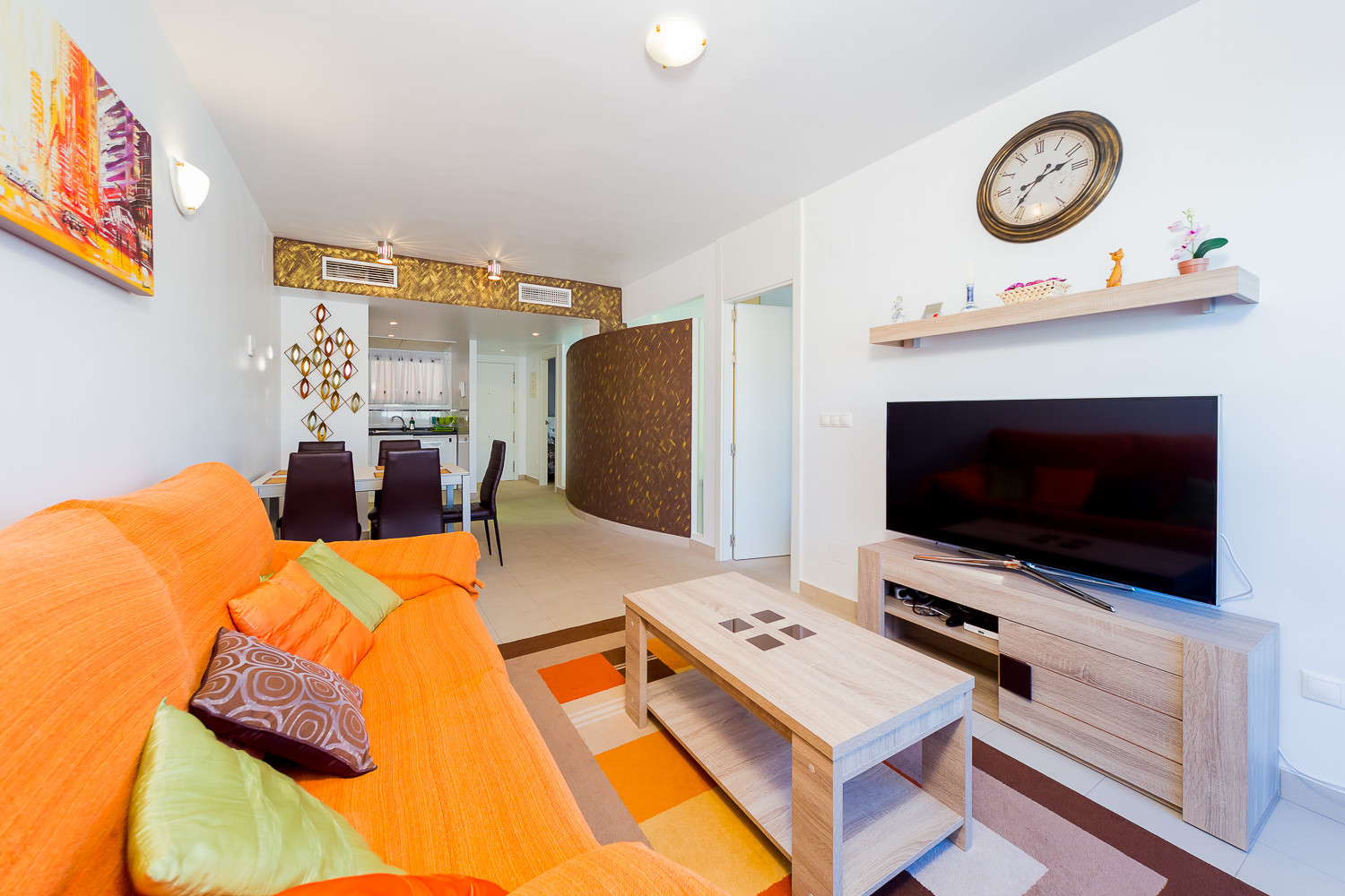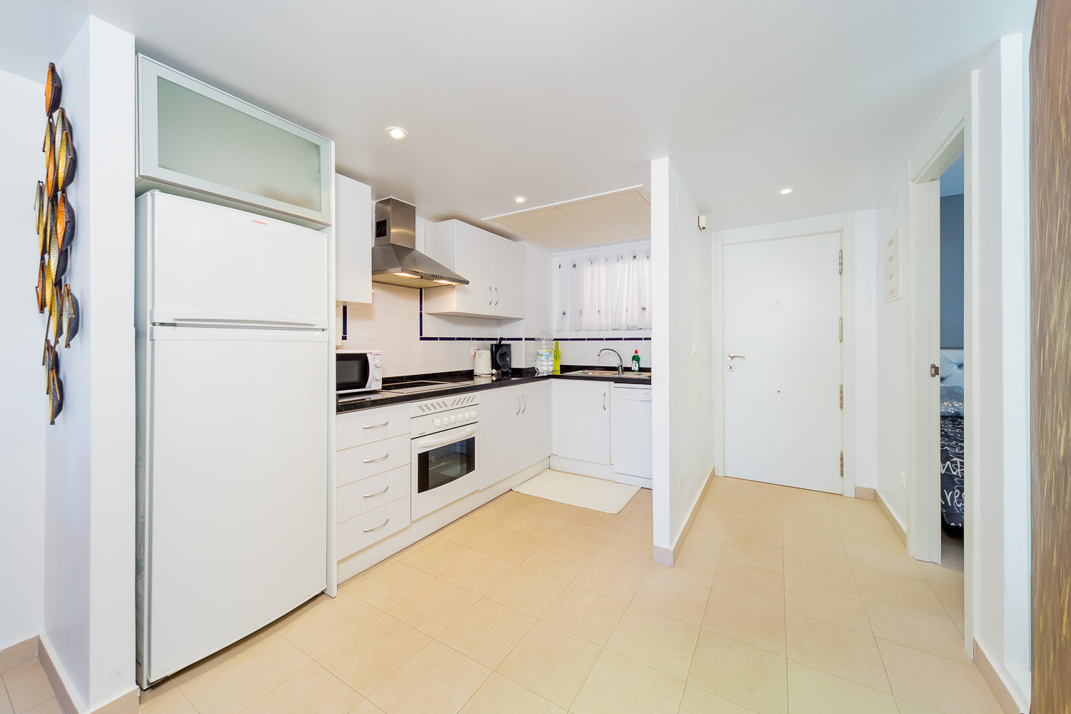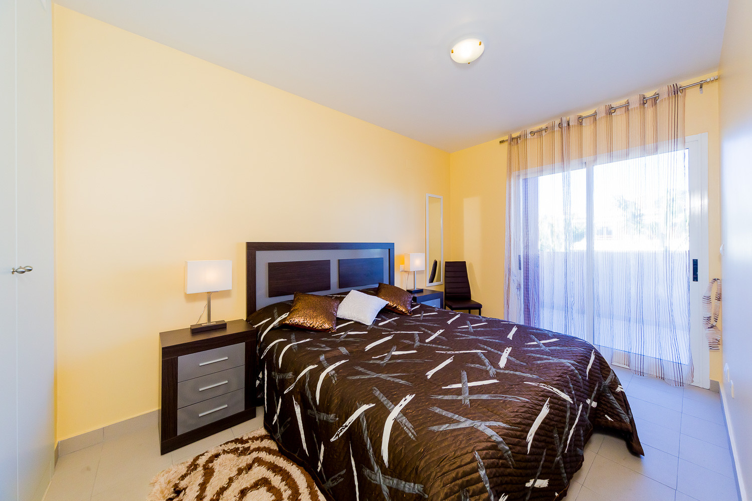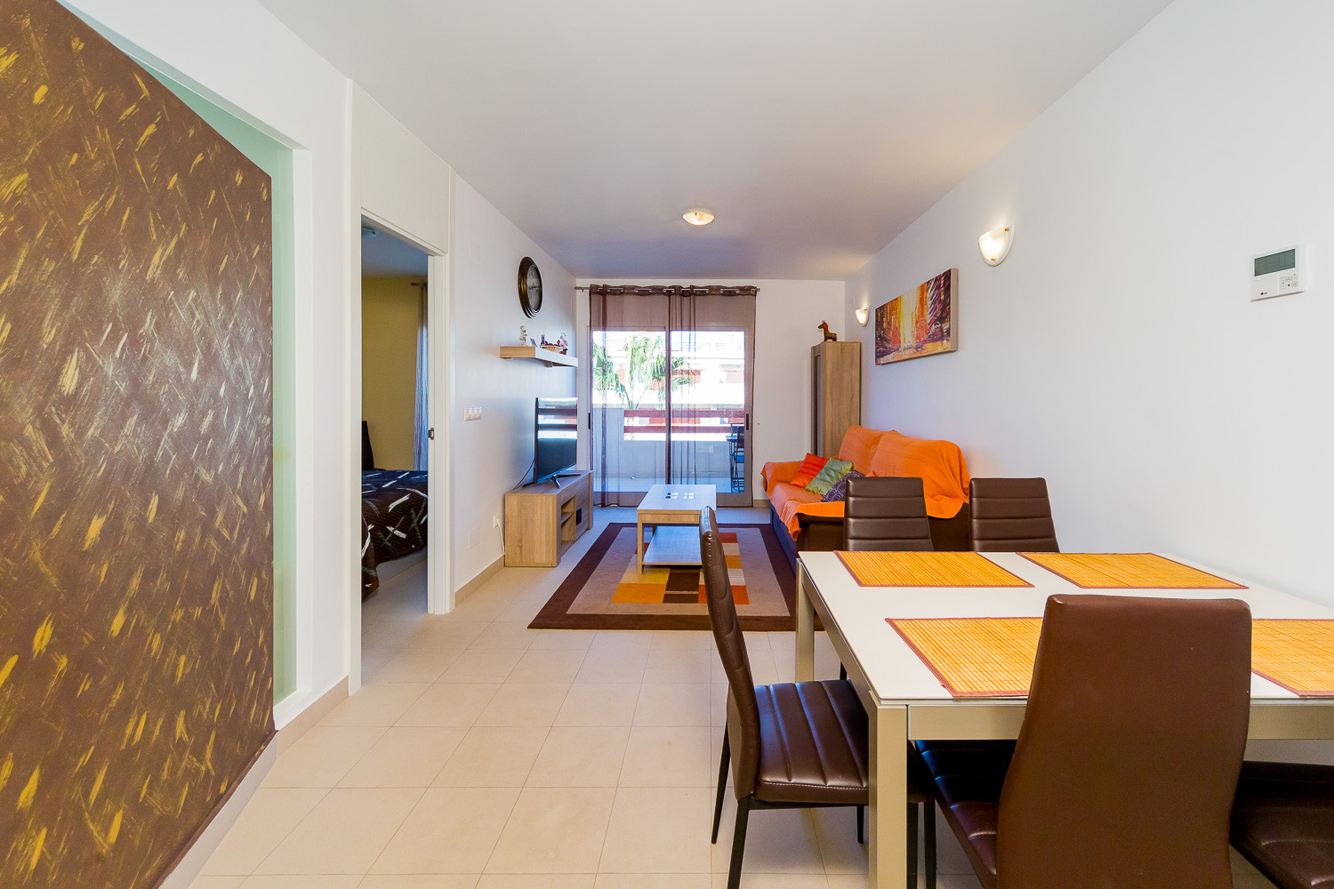 A modern apartment located in a popular area with a lovely green area and two communal swimming pools in Playa Flamenca. It is spread out over 82 m2 and consists of two bedrooms with their own bathrooms, salon, kitchen, utility room and terrace with views of the pool, area and urbanization. Upstairs there is a private solarium complete with a BBQ, which overlooks the sea and the pool also. The apartment is equipped with new furniture (beds with orthopaedic mattresses), electrical appliances (including dishwasher and washing machine, coffee maker, juicer and toaster), bed linen and towels. The terrace and the solarium have outdoor furniture, beds and folding chairs. There is central air conditioning and a TV with Smart-TV. There is also a parking place on the complex. It sleeps up to 4 people No pets are allowed and smoking is prohibited in the apartment. Nearby there are many bars and restaurants also in walking distance is a large supermarket LIDL, Super COR and Carrefour. The Zenia Boulevard shopping complex with its array of over 150 shops, bars, eateries, casino and much more is about 20 minutes on foot. The sea is about 500 meters away.