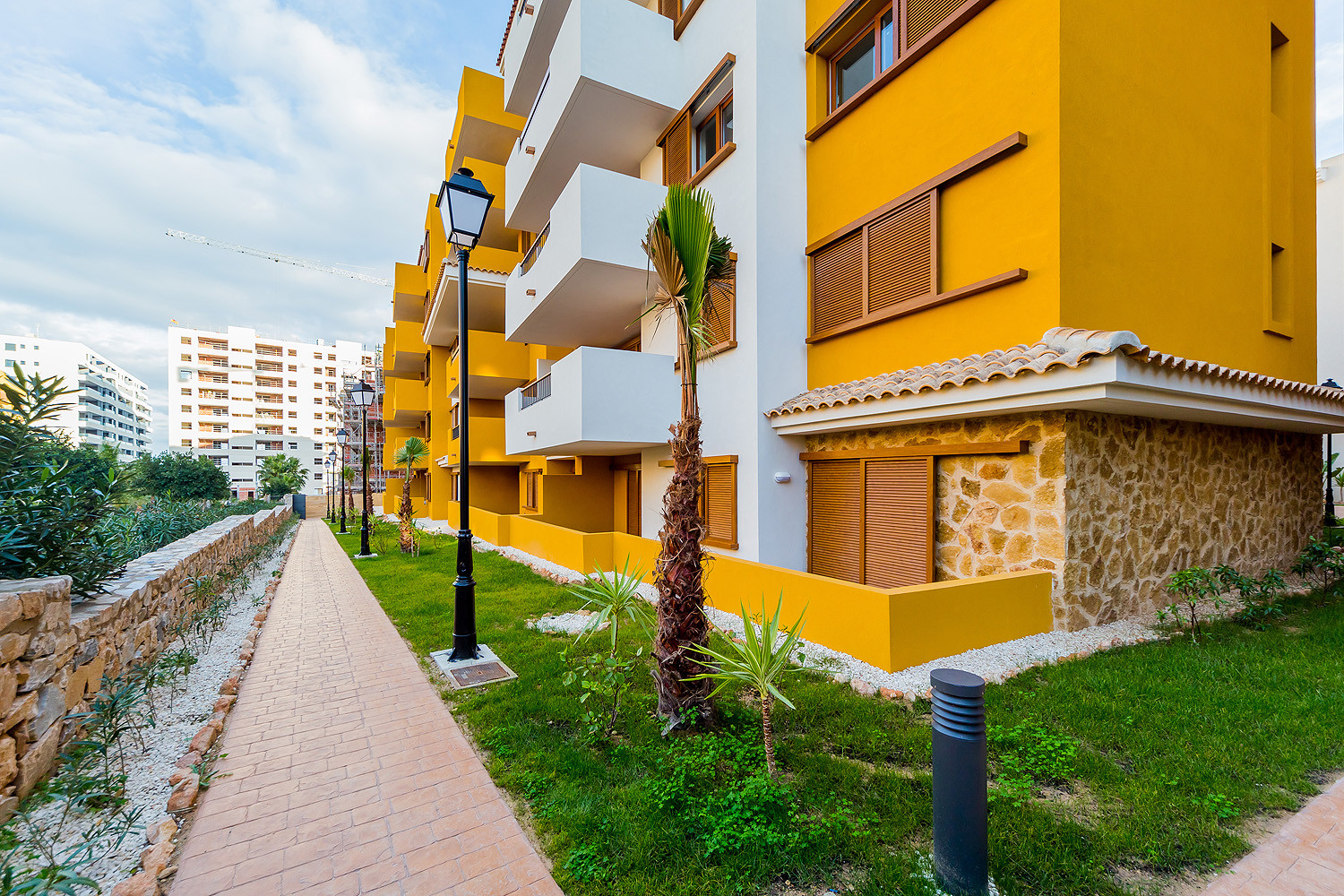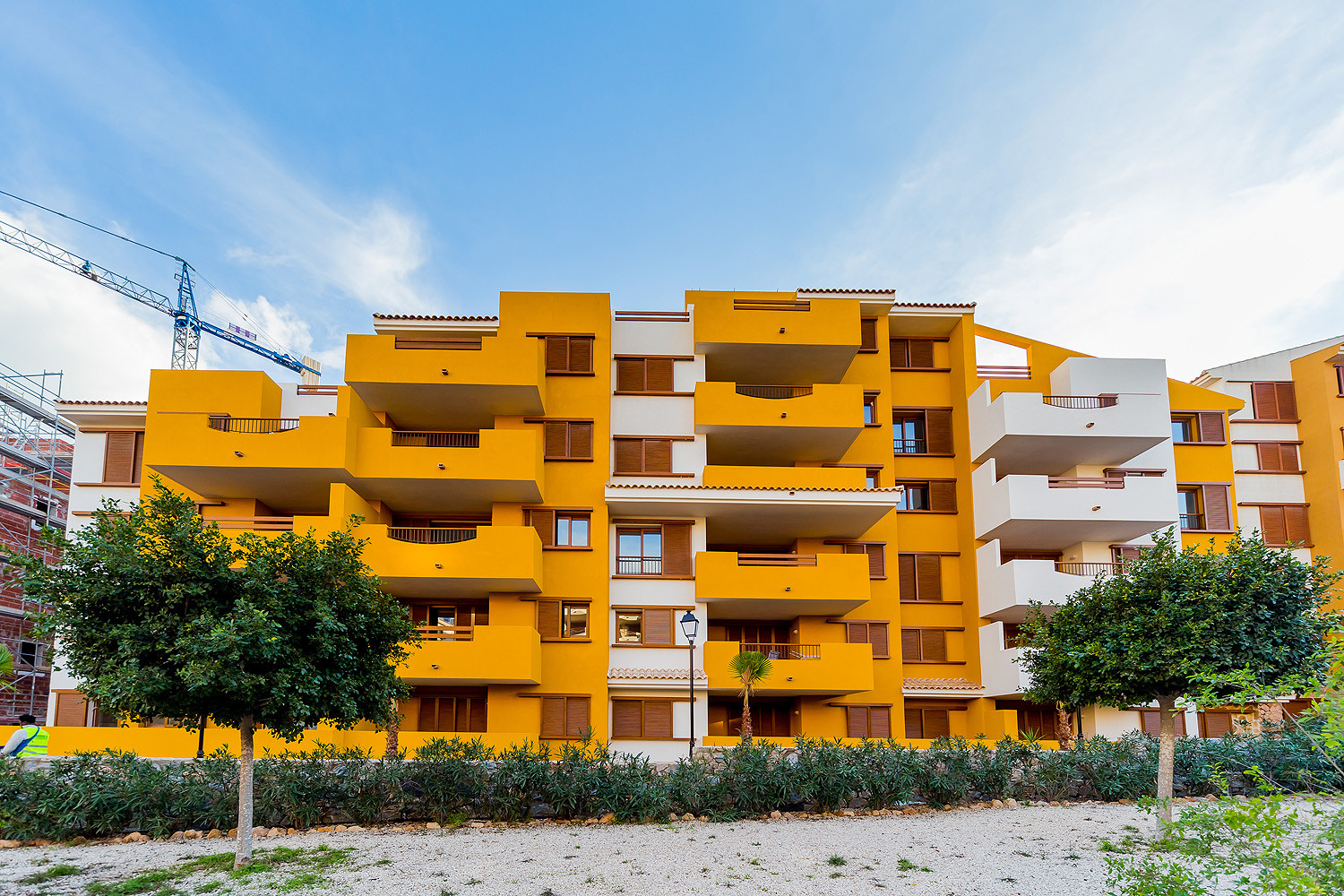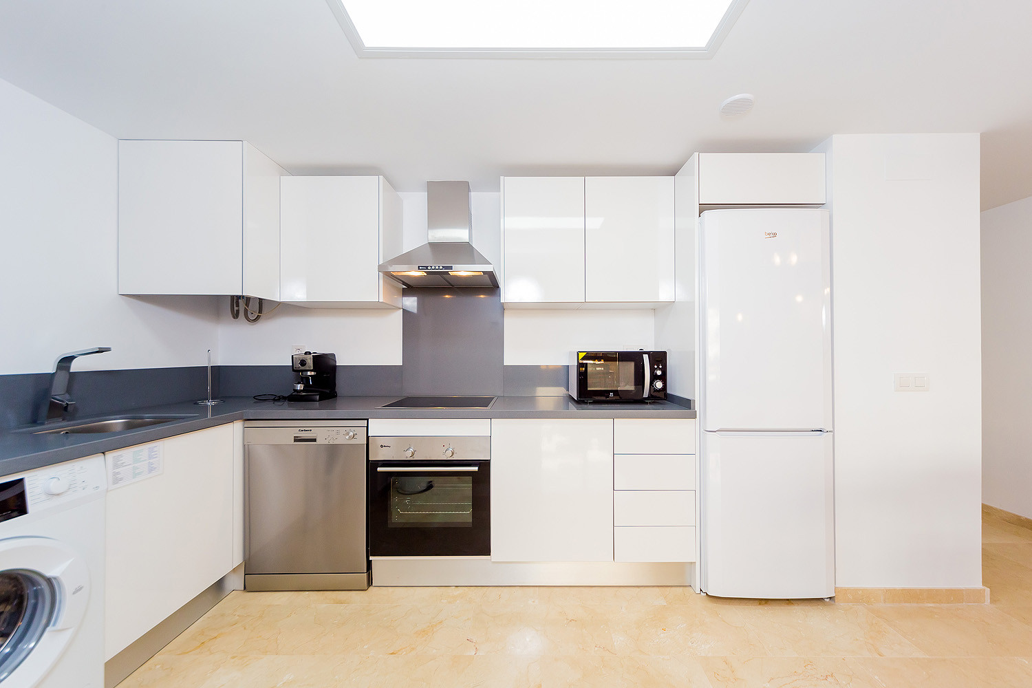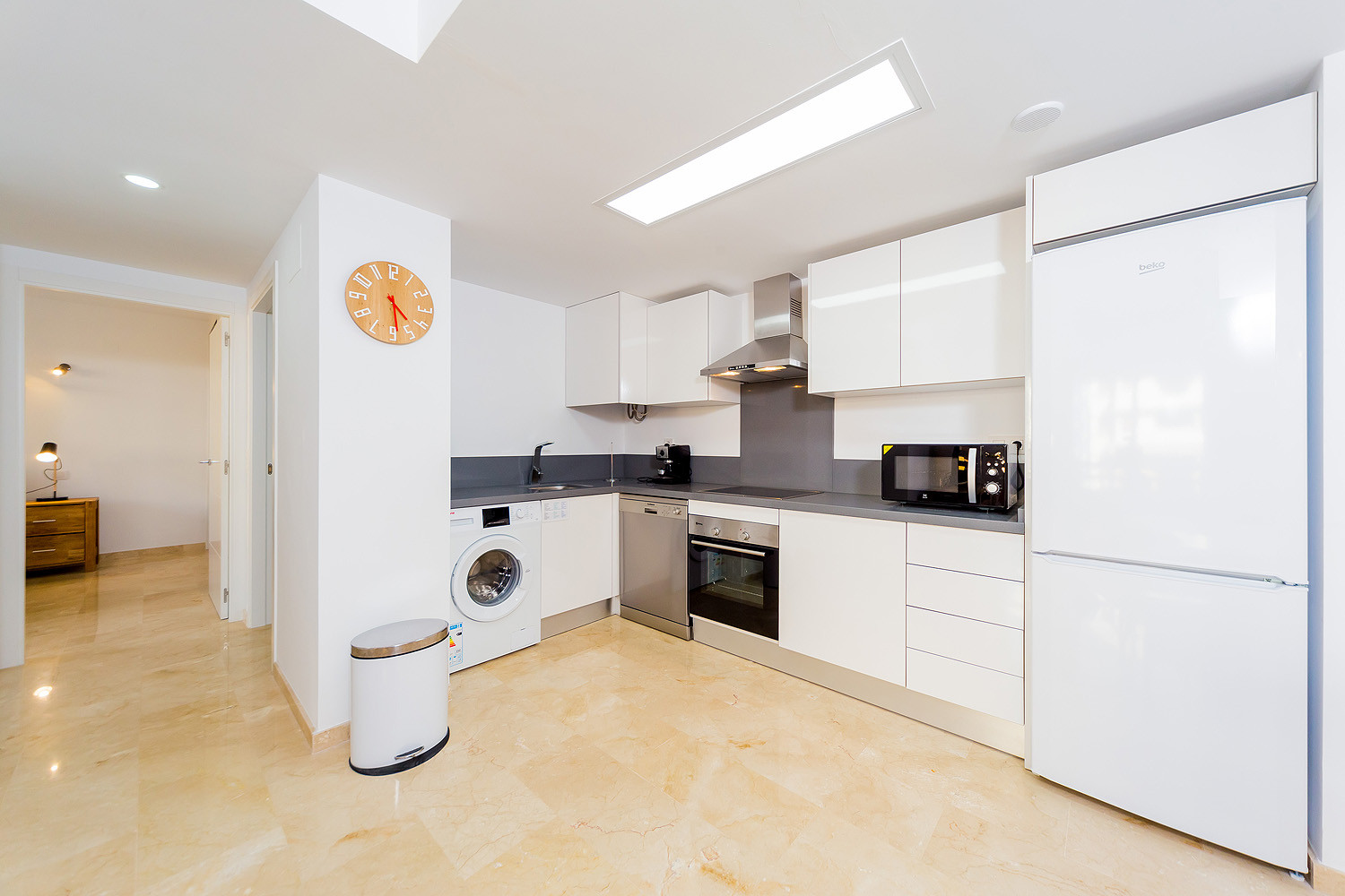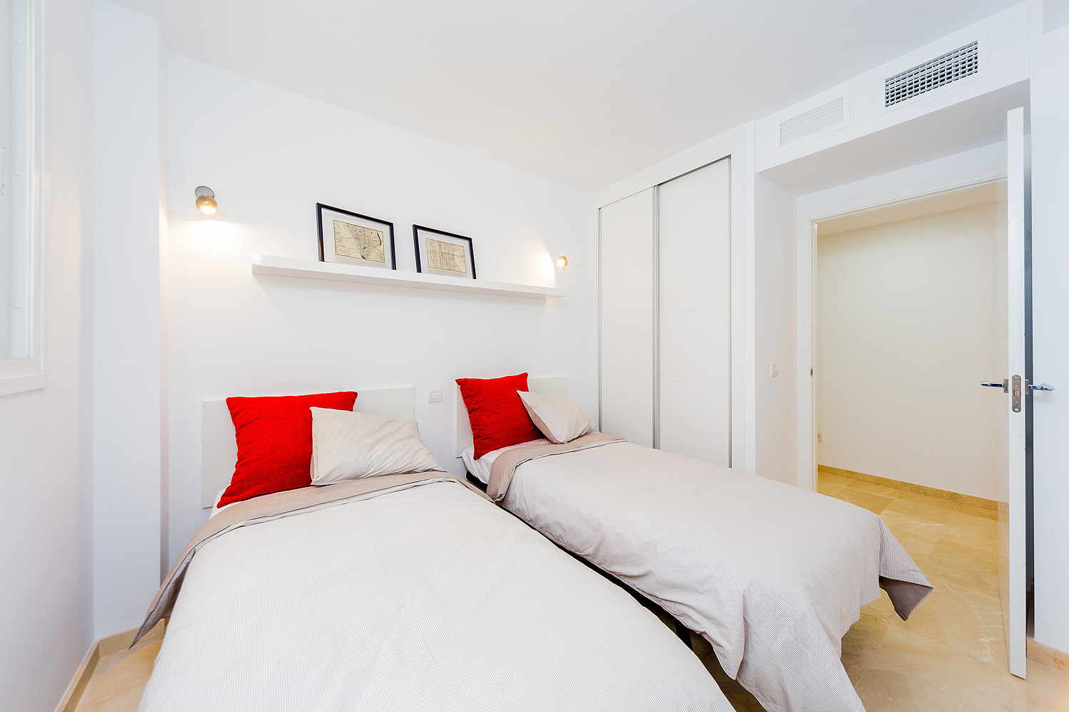 A spacious apartment the "Recoleta" cpmplex in Punta Prima It is spread out over 84 m2 and consists of a living room, three double bedrooms, two bathrooms, a kitchen and a private terrace. The apartment is equipped with furniture, appliances (including a coffee maker), dishes, linens and towels. The air conditioning is centrally controlled. There is a Smart TV with various channels, including Spanish, English and German. There is a private underground parking space.