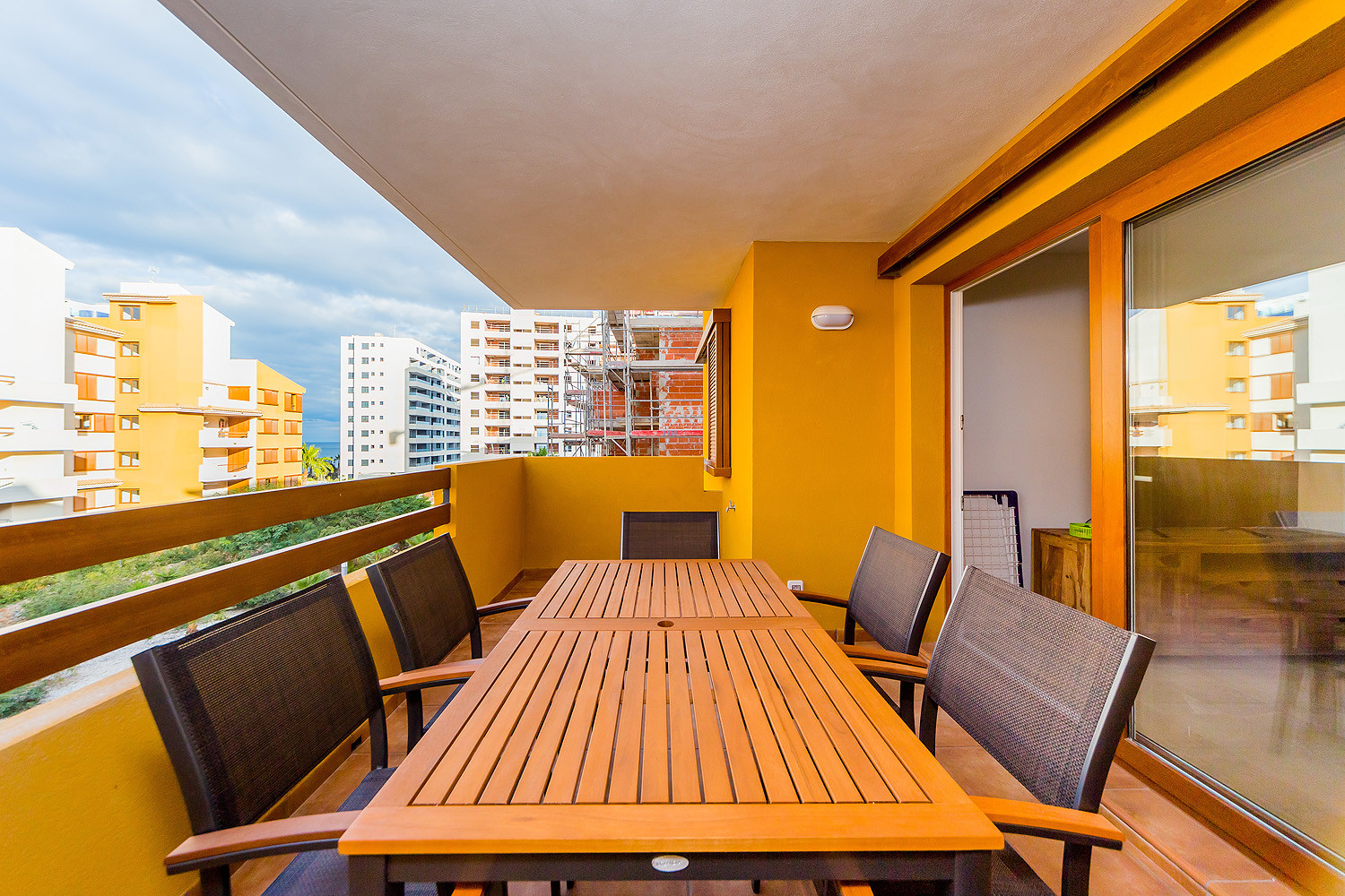 The private terrace is 13 m2 and complete with summer furniture. The apartment sleeps up to 8 people. NO pets are allowed and Smoking is only allowed on the terrace. It is very well located, within walking distance to many bars supermarkets and much more local amenities. The sea about a 300 meter walk. In urbanization the "Recoleta" there are three swimming pools and green areas. A cot and a highchair for children can also be rented at a price of 20 euros for the entire rental period.