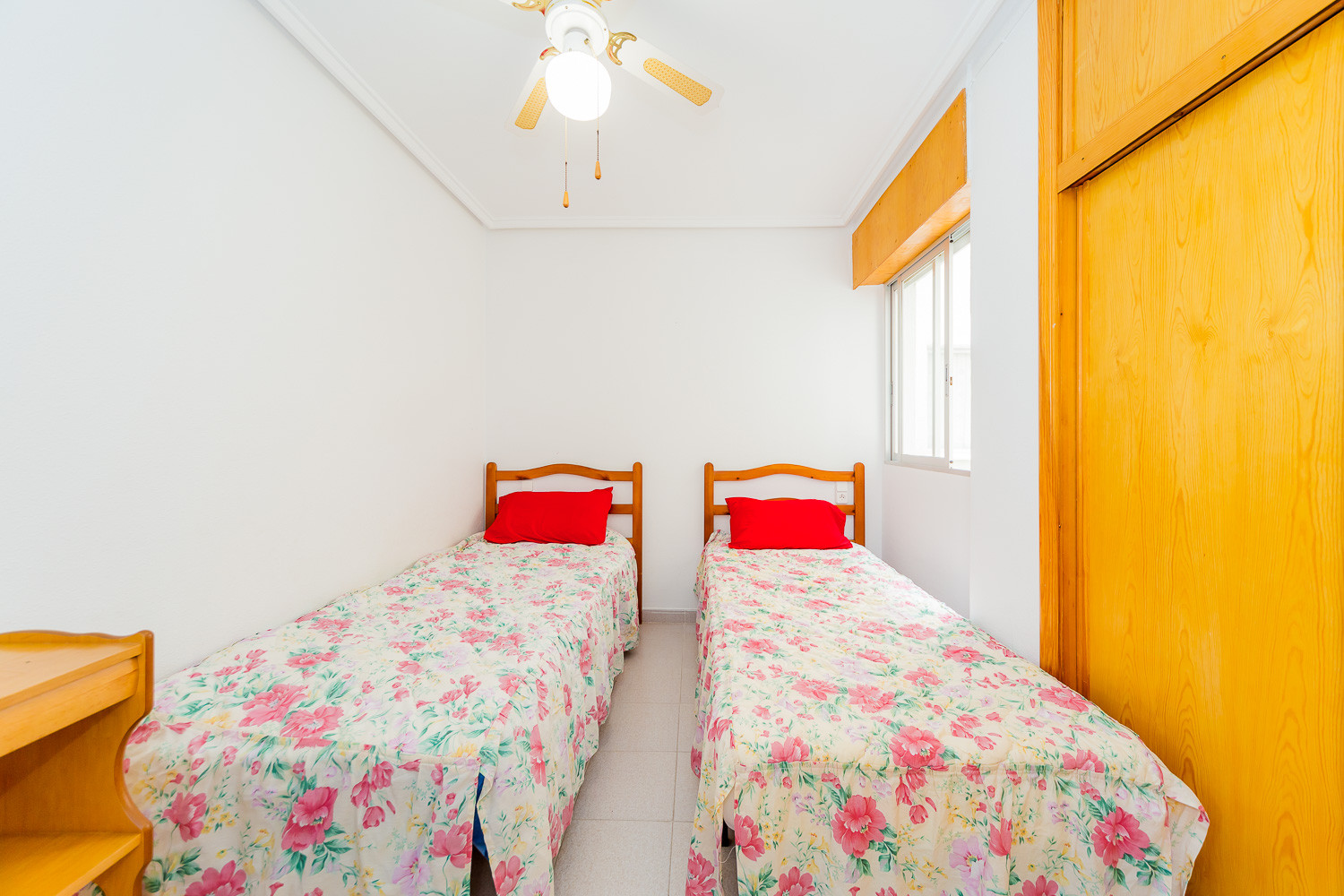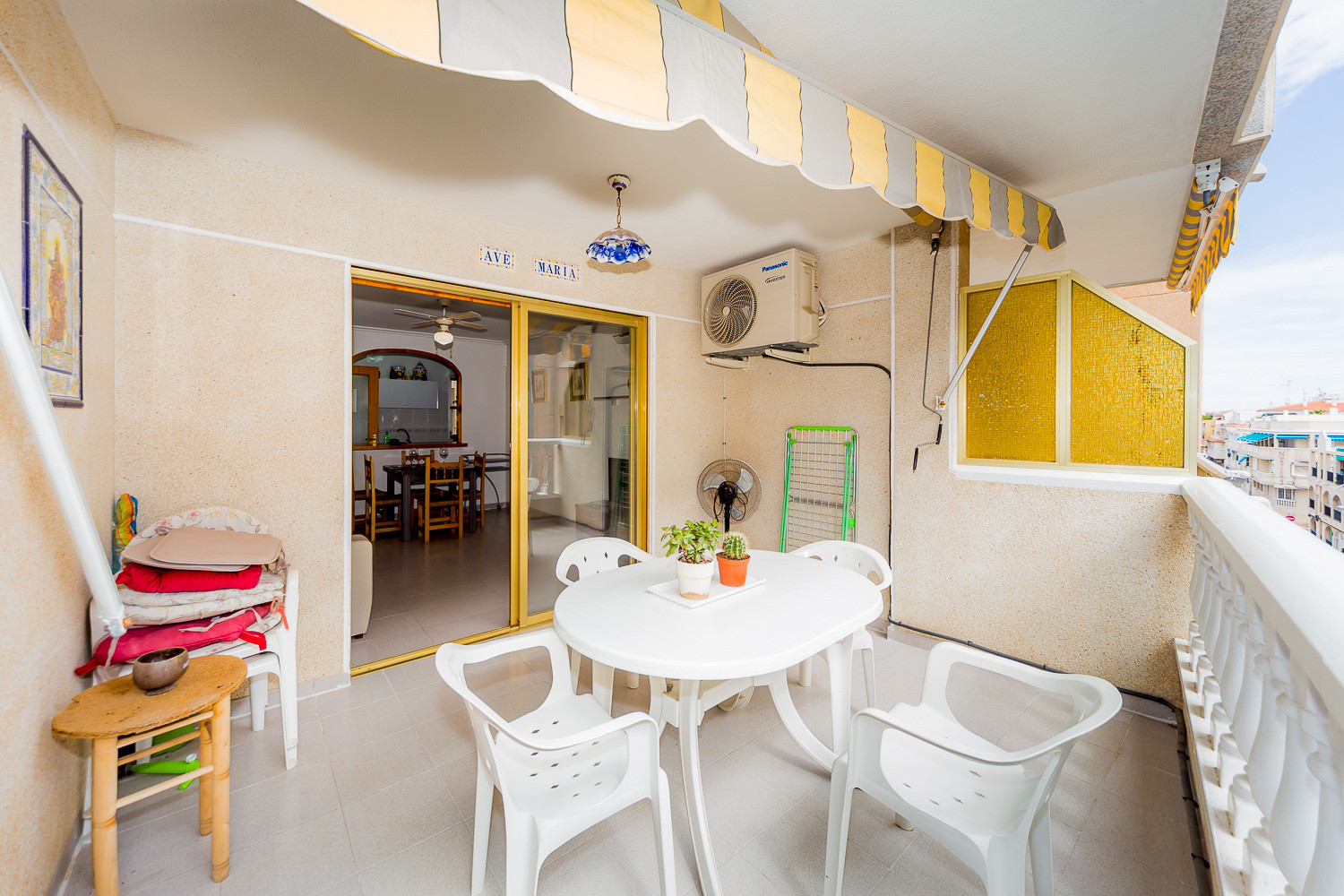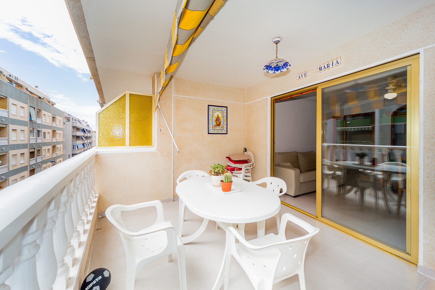 This apartment is only 500 meters within walking distance to the Blue Flag beach of Del Cura. It is set out over 43 m2 and consists of a light and airy bright living room, a bedroom, a kitchen, a bathroom and a large private balcony. It is equipped with furniture, appliances, dishes, linens and towels. The balcony benefits from summer furniture. There is air conditioning in the living room and a ceiling fan in the bedroom. Spanish and Russian television is available. The apartment is very well located and close to many bars, restaurants, supermarkets and much more local amenities all within walking distance. It sleeps up to 4 people. No pets are permitted and smoking is only allowed on the balcony. It can offer rent of a cot and a highchair, price 20 euros for the entire stay.