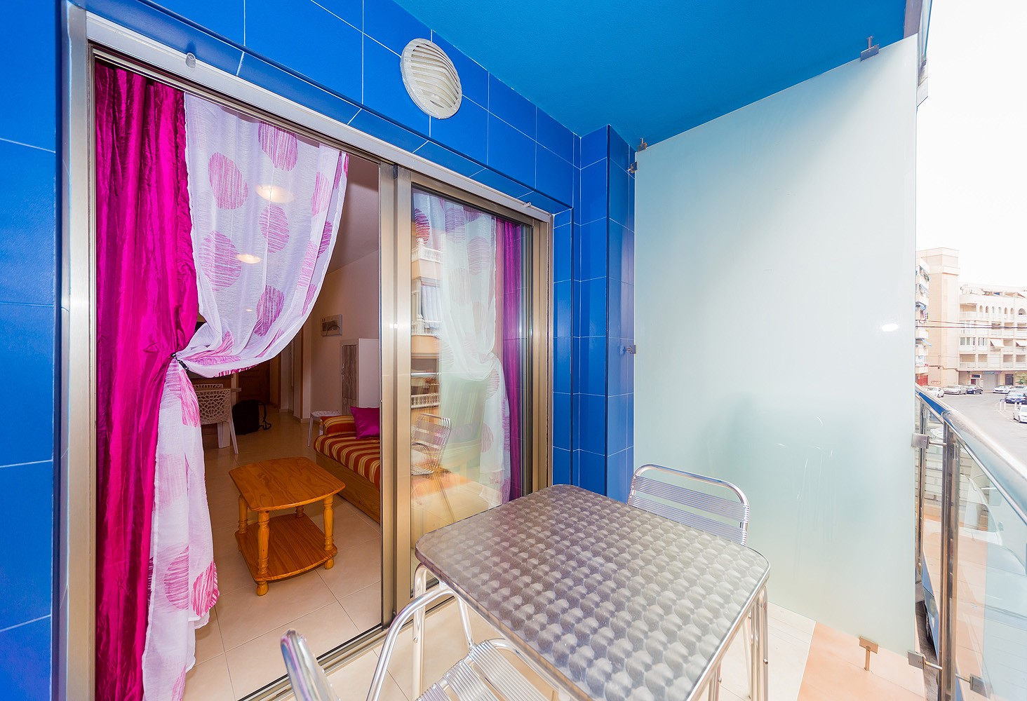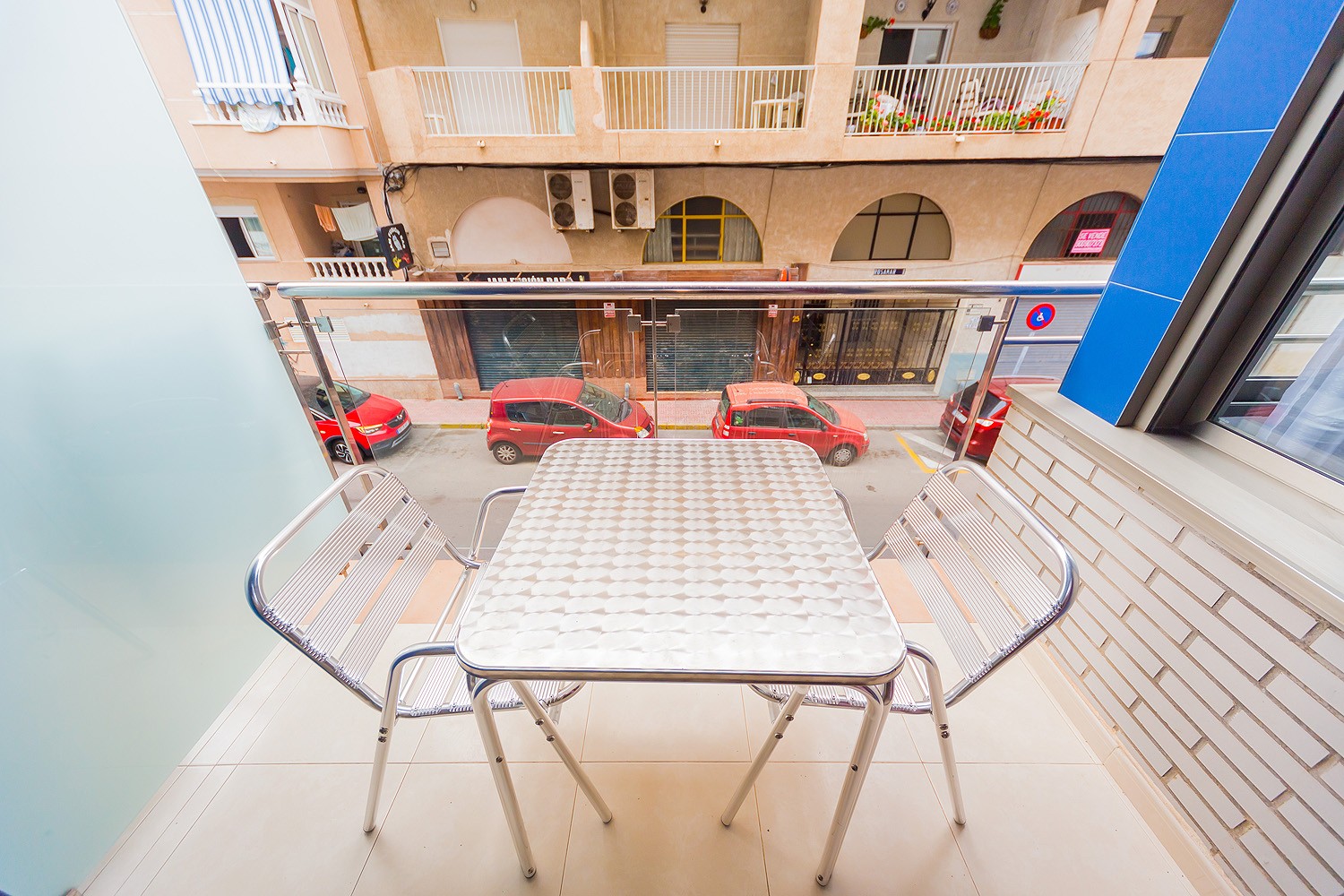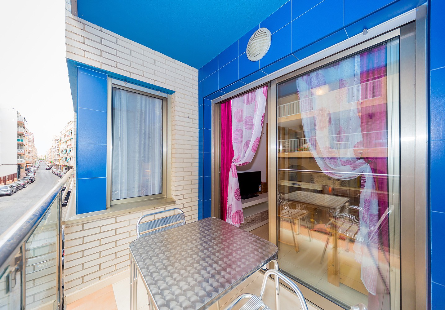 For rent apartment on the first line of the sea near the city of Torrevieja and the Blue Flag Beaches of Los Locos. The apartment is 61 m2 and consists of two bedrooms, lounge, bathroom, French-style kitchen and a balcony. The apartment has everything for living and recreation including furniture, appliances, dishes, bedding and towels. Air conditioning is centrally piped throughout the property. Spanish TV is also available. The apartment has the use of a communal swimming pool. The accommodation sleeps up to 6 people (no pets allowed). Smoking is only allowed on the terrace! The beach and city centre is literally across the street and it is near to many bars and restaurants. The local bus station of Torrevieja is also a short walk away.