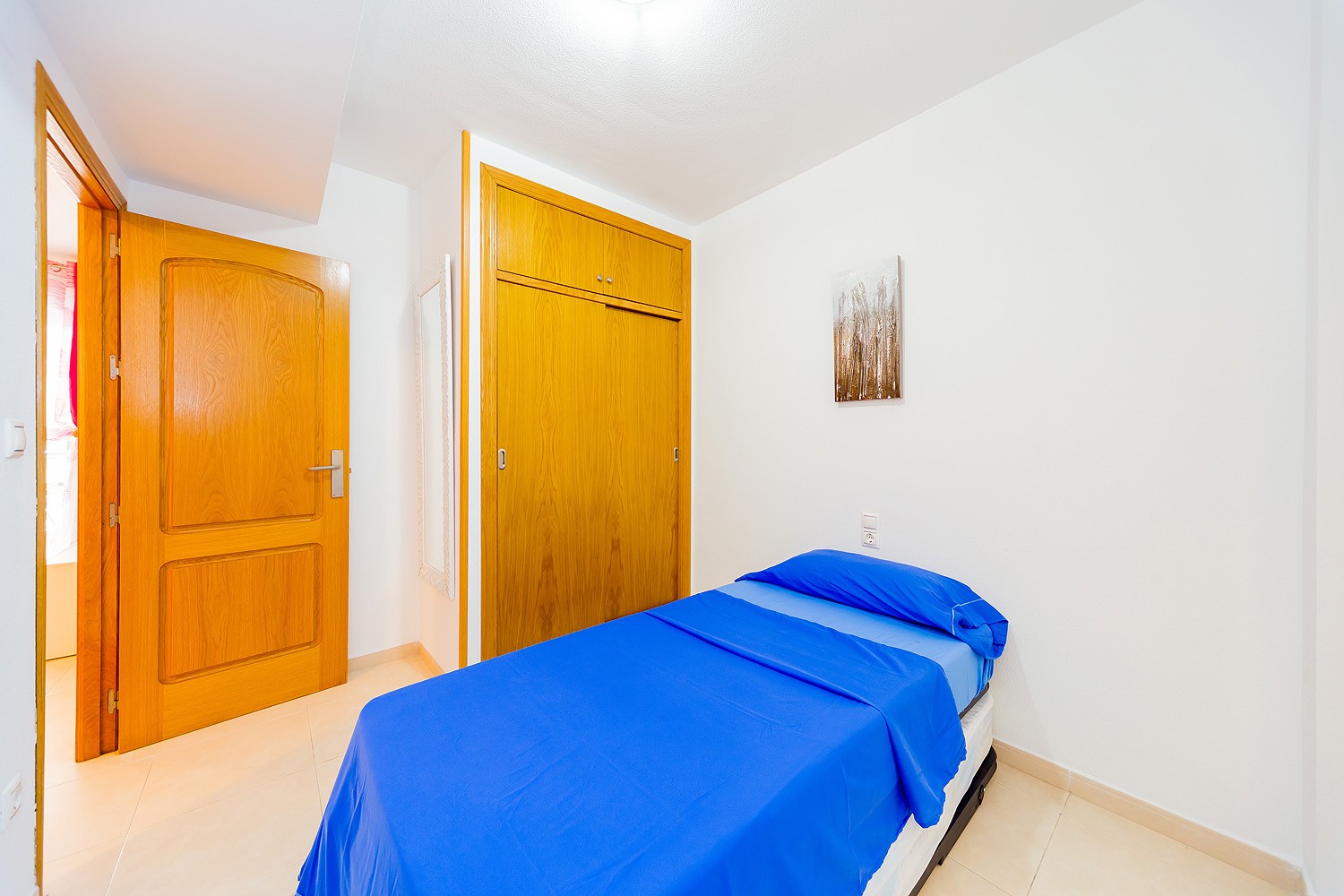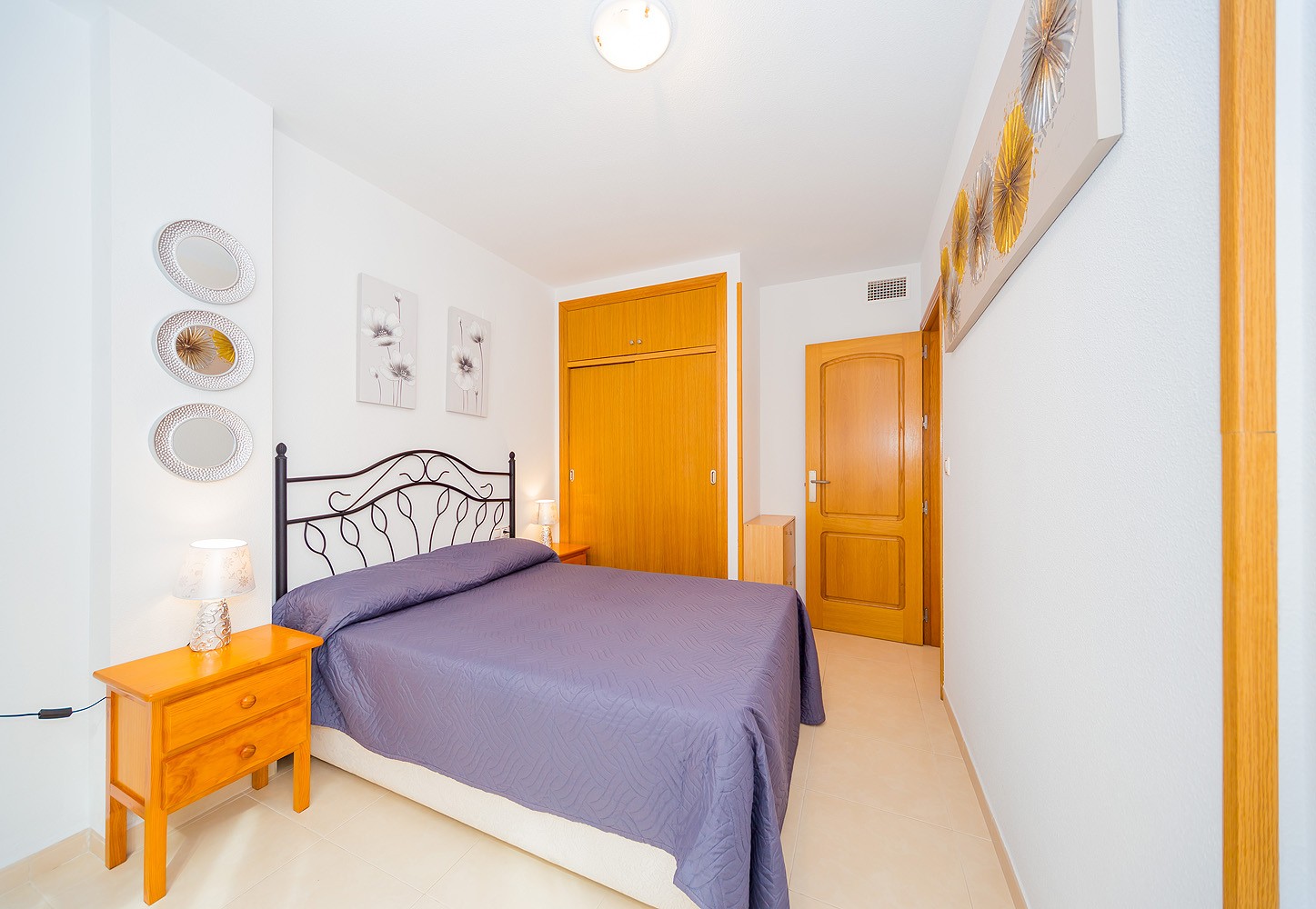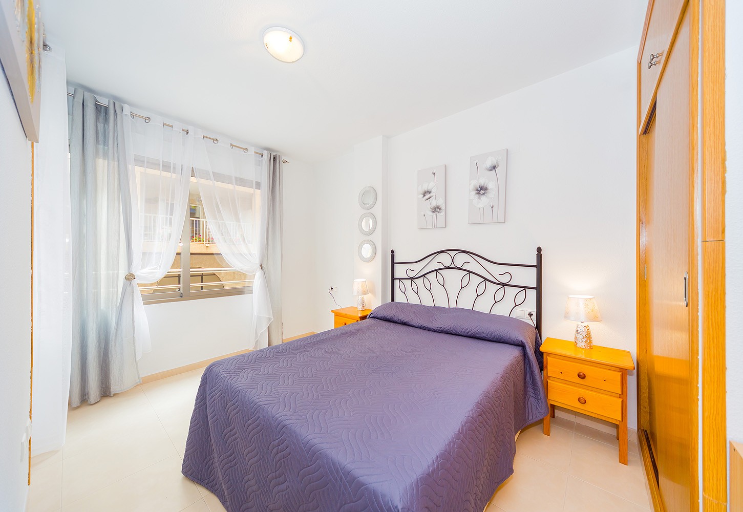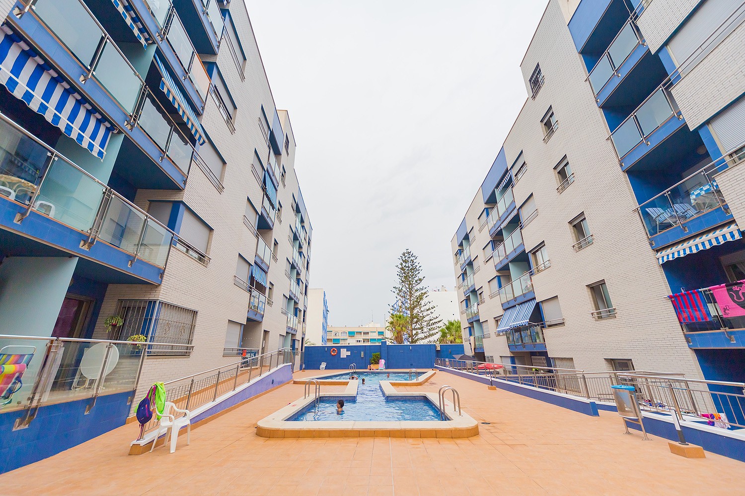 For rent apartment on the first line of the sea near the city of Torrevieja and the Blue Flag Beaches of Los Locos. The apartment is 61 m2 and consists of two bedrooms, lounge, bathroom, French-style kitchen and a balcony. The apartment has everything for living and recreation including furniture, appliances, dishes, bedding and towels. Air conditioning is centrally piped throughout the property. Spanish TV is also available. The apartment has the use of a communal swimming pool. The accommodation sleeps up to 6 people (no pets allowed). Smoking is only allowed on the terrace! The beach and city centre is literally across the street and it is near to many bars and restaurants. The local bus station of Torrevieja is also a short walk away.