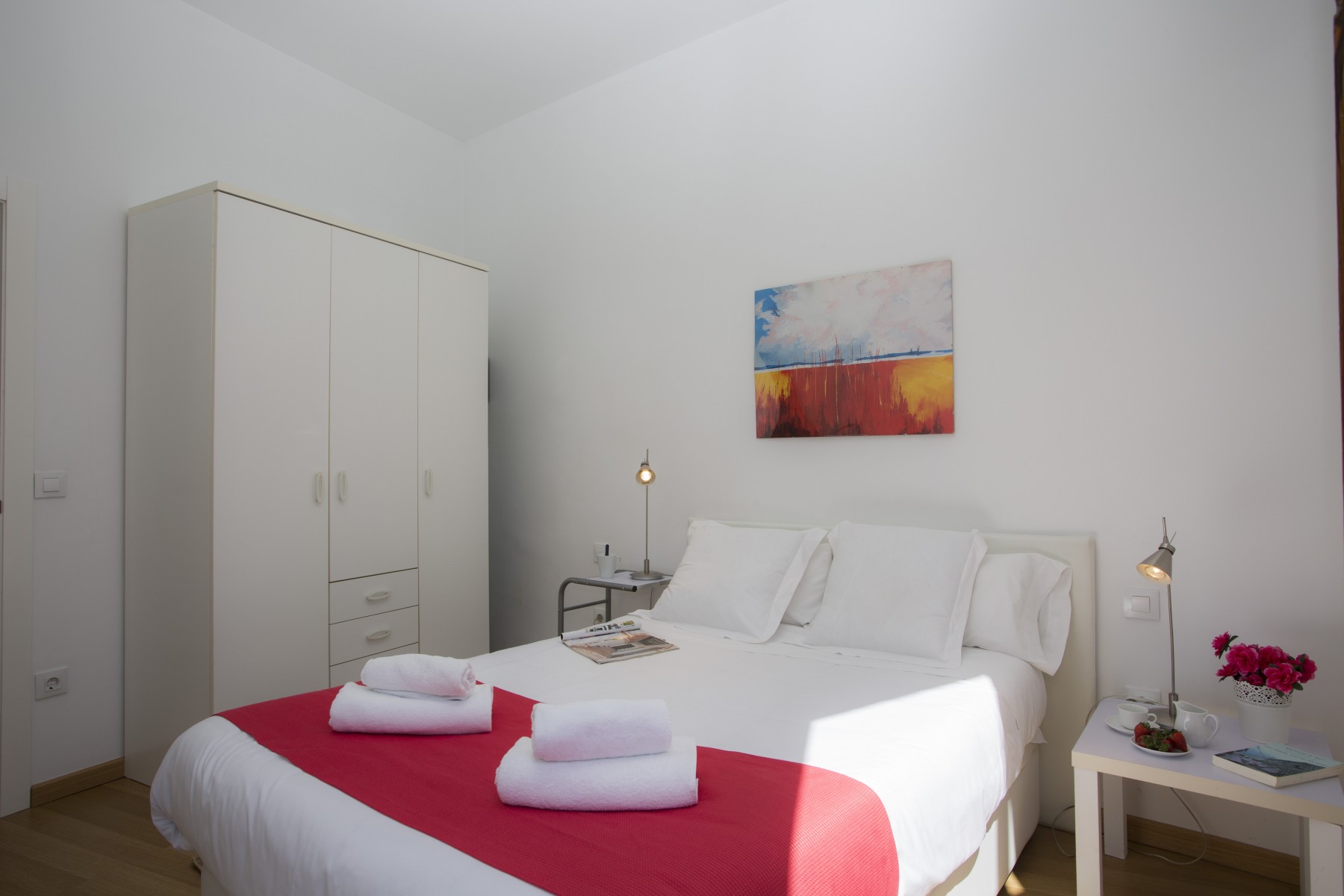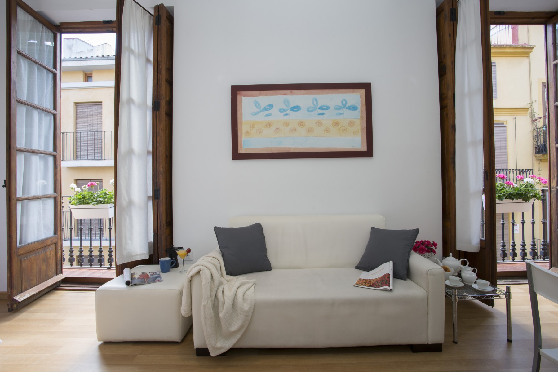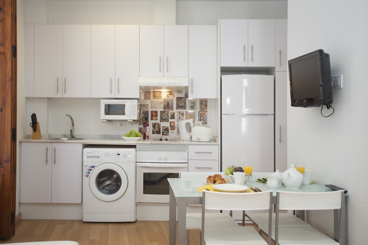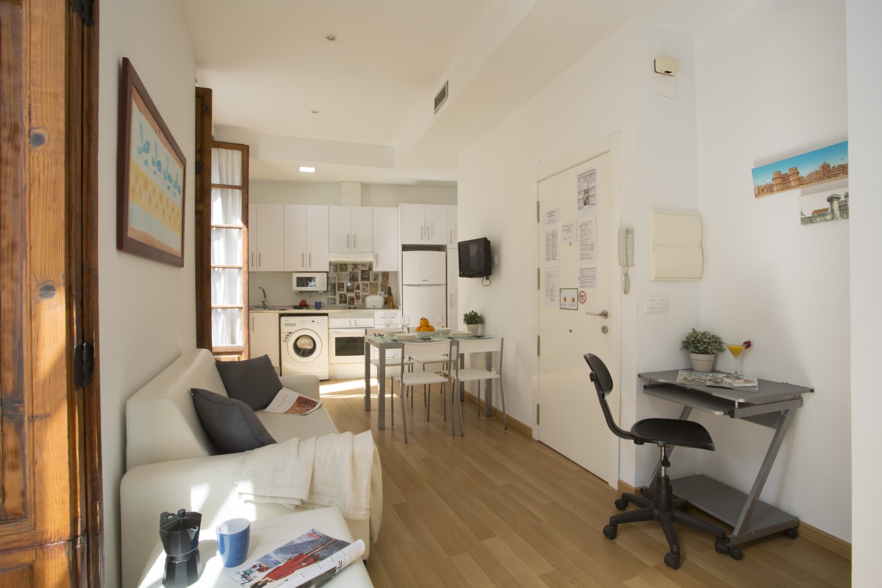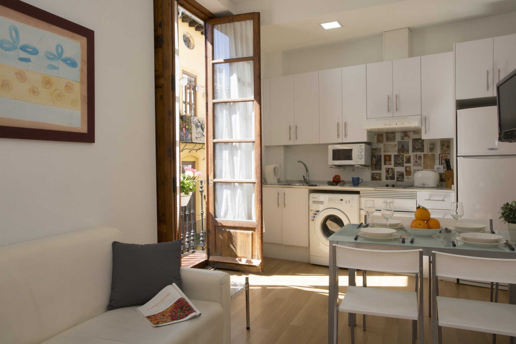 This apartment has an excellent communal terrace equipped with comfortable garden furniture. With capacity for 3 people, fully equipped and with large wooden windows complementing its beautiful decoration of light tones.