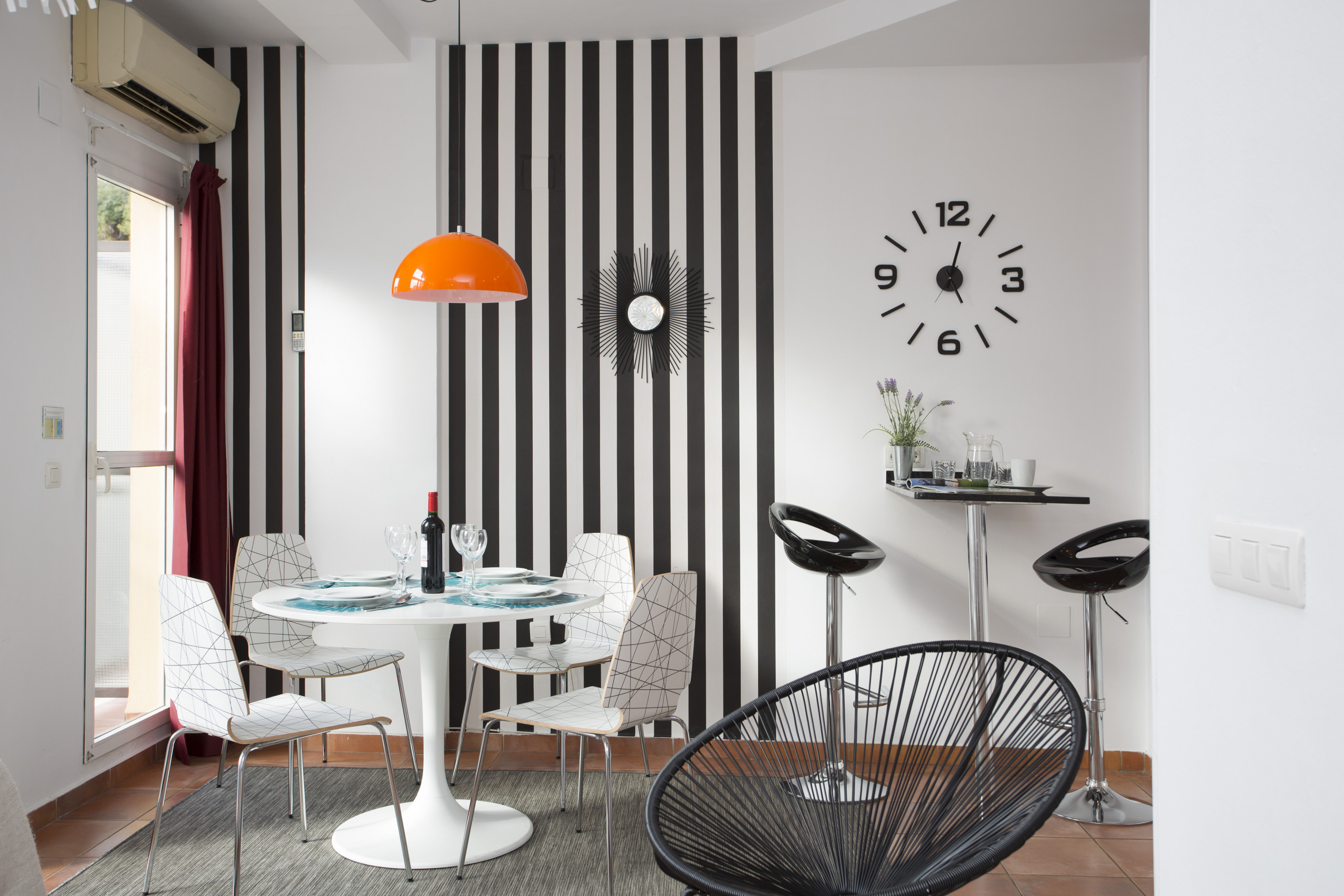 Modern fully equipped apartment for your maximum comfort. The large window of the dining room makes this accommodation a perfect place to enjoy the sky of Valencia. It consists of a double room with authentic wooden beams on the ceiling, with a nice balcony.