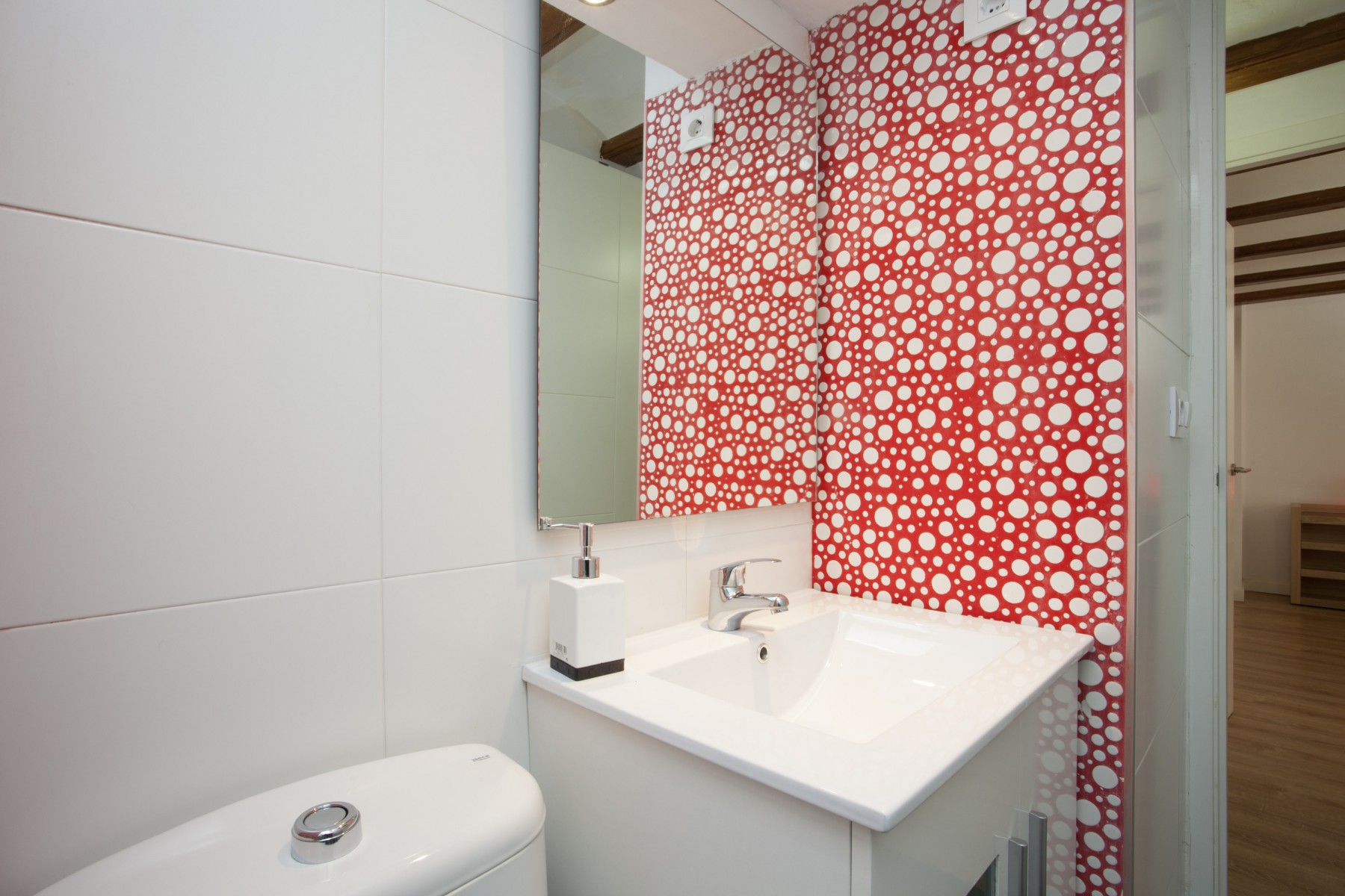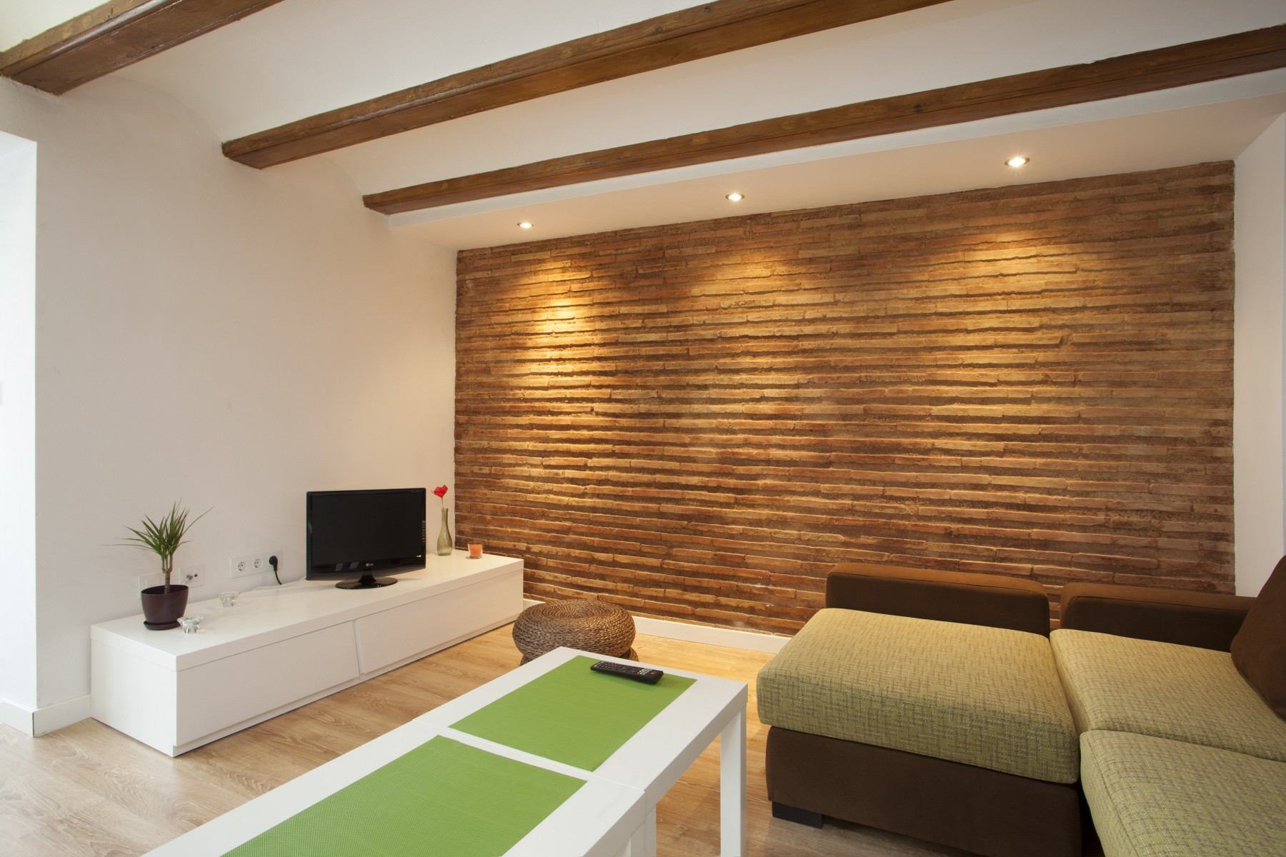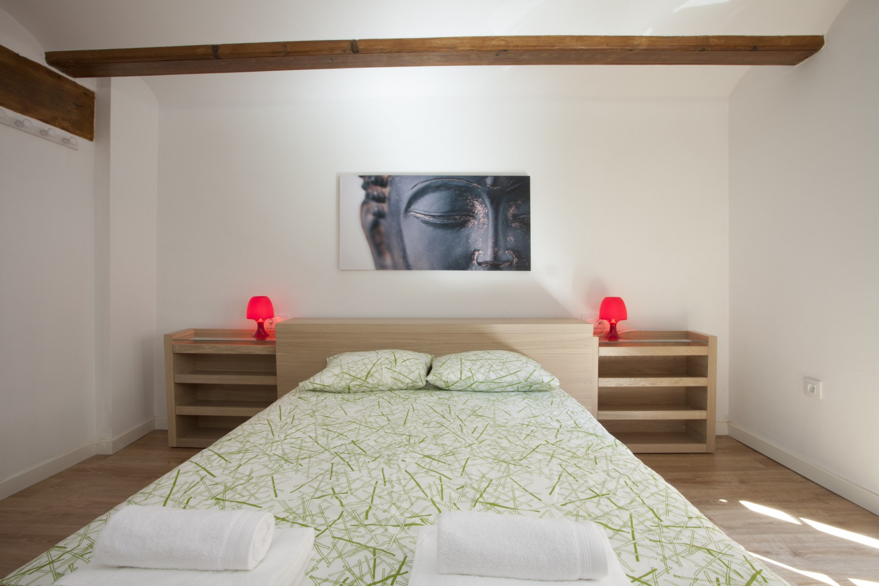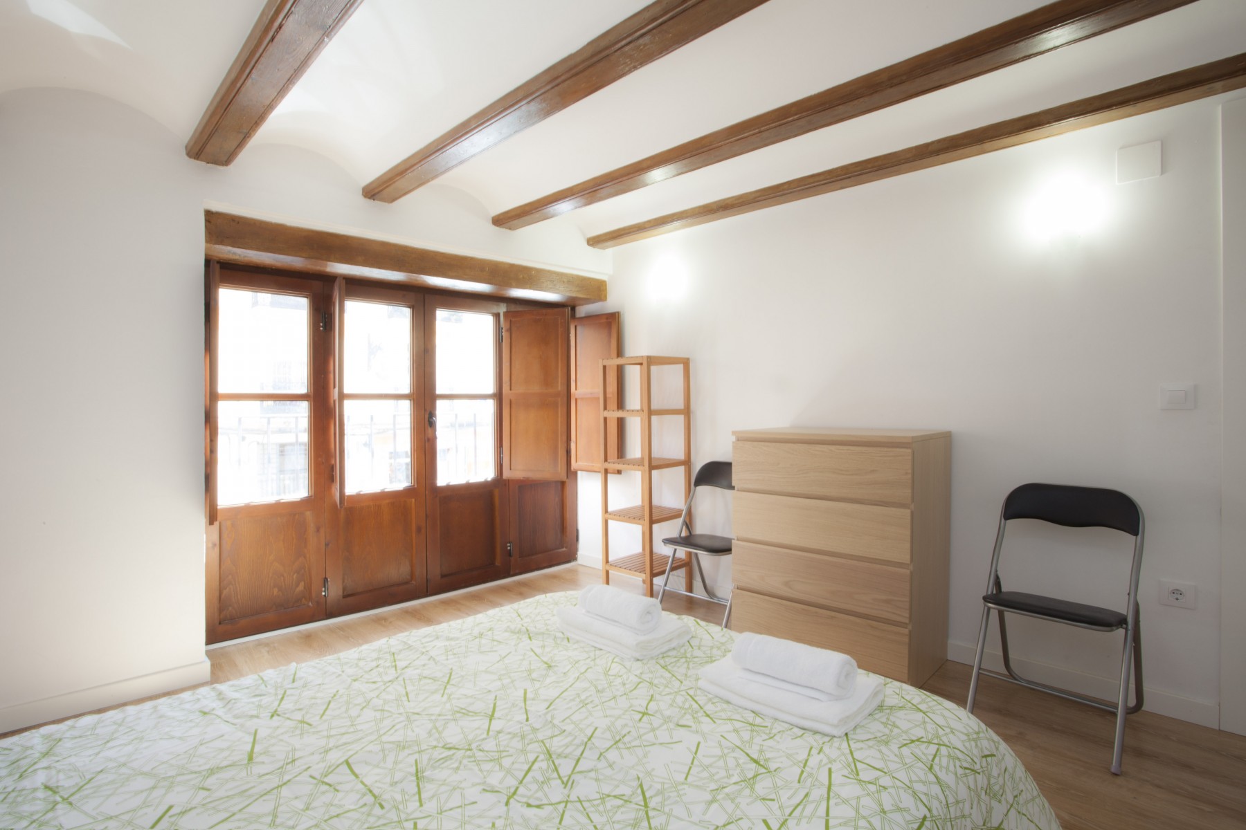 This cozy apartment in the city of Valencia enjoys an authentic decoration with wooden beams, parquet floors and white walls. It has 3 bedrooms and 2 bathrooms. The fully equipped kitchen communicates with the spacious dining room.