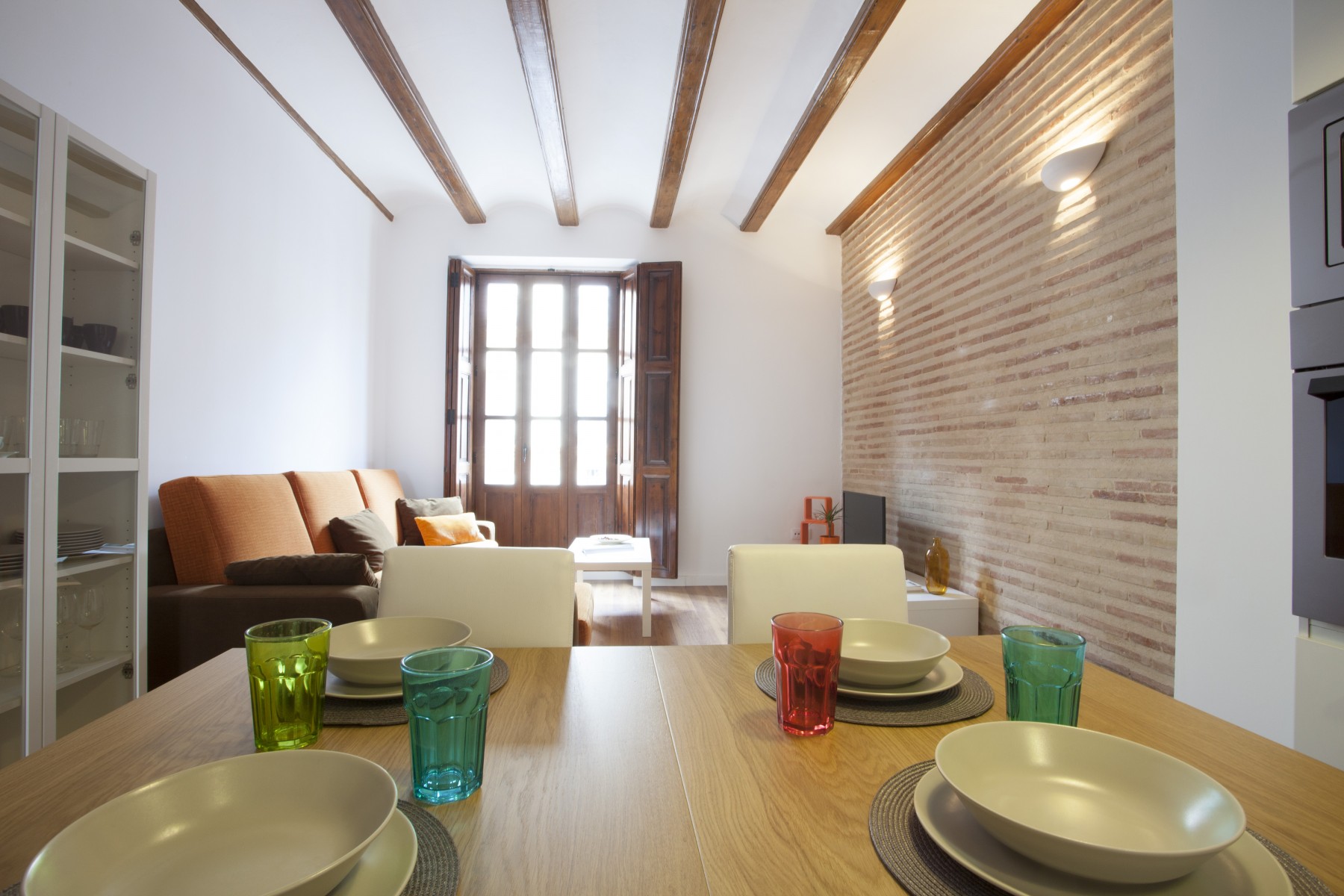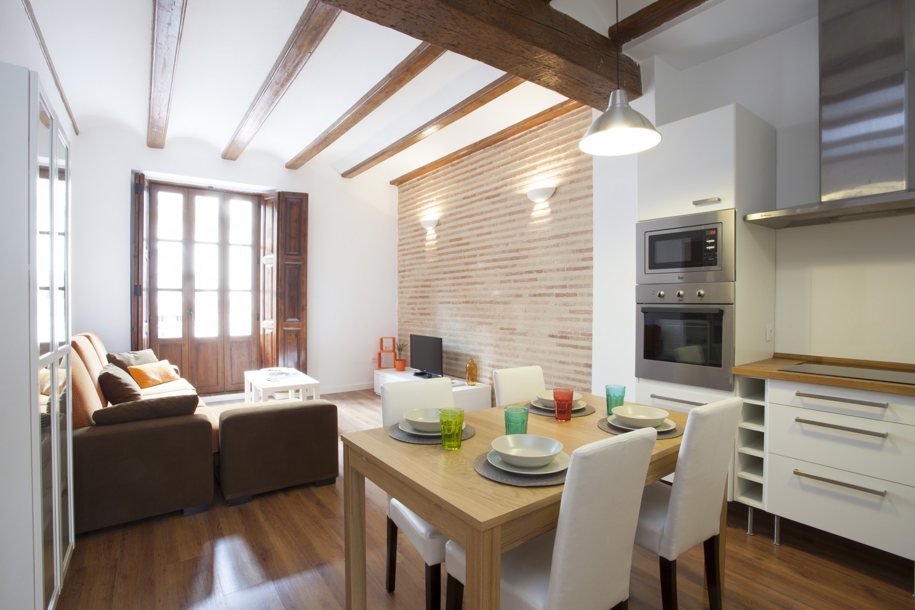This cozy apartment in Valencia boasts authentic decoration with wooden beams, parquet floors and white walls. The fully equipped kitchen communicates with the spacious dining room. All its amenities will make your stay unforgettable.