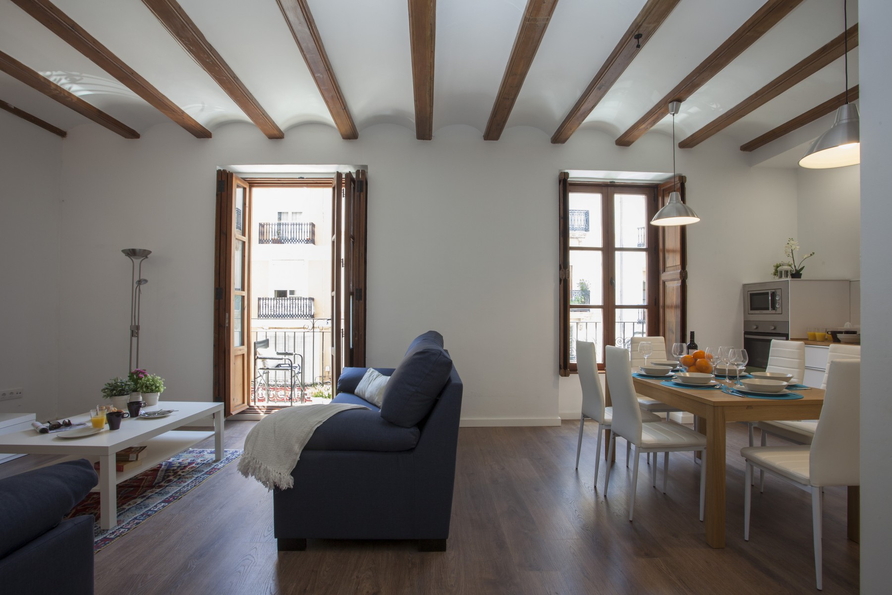 This cozy apartment in the city of Valencia enjoys authentic décor with wooden beams, parquet floors and white walls. Its exquisite decoration is modern and classic at the same time. It has 3 bedrooms and 2 bathrooms. The fully equipped kitchen communicates with the spacious dining room. All its amenities will make your stay unforgettable.
