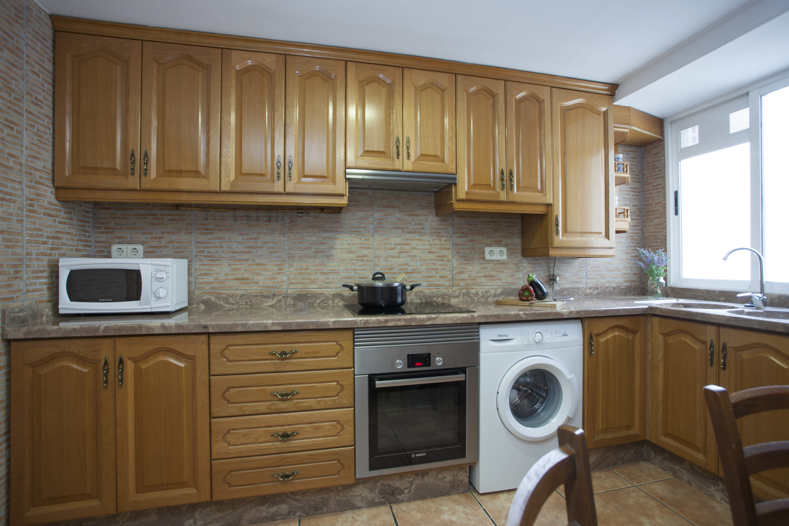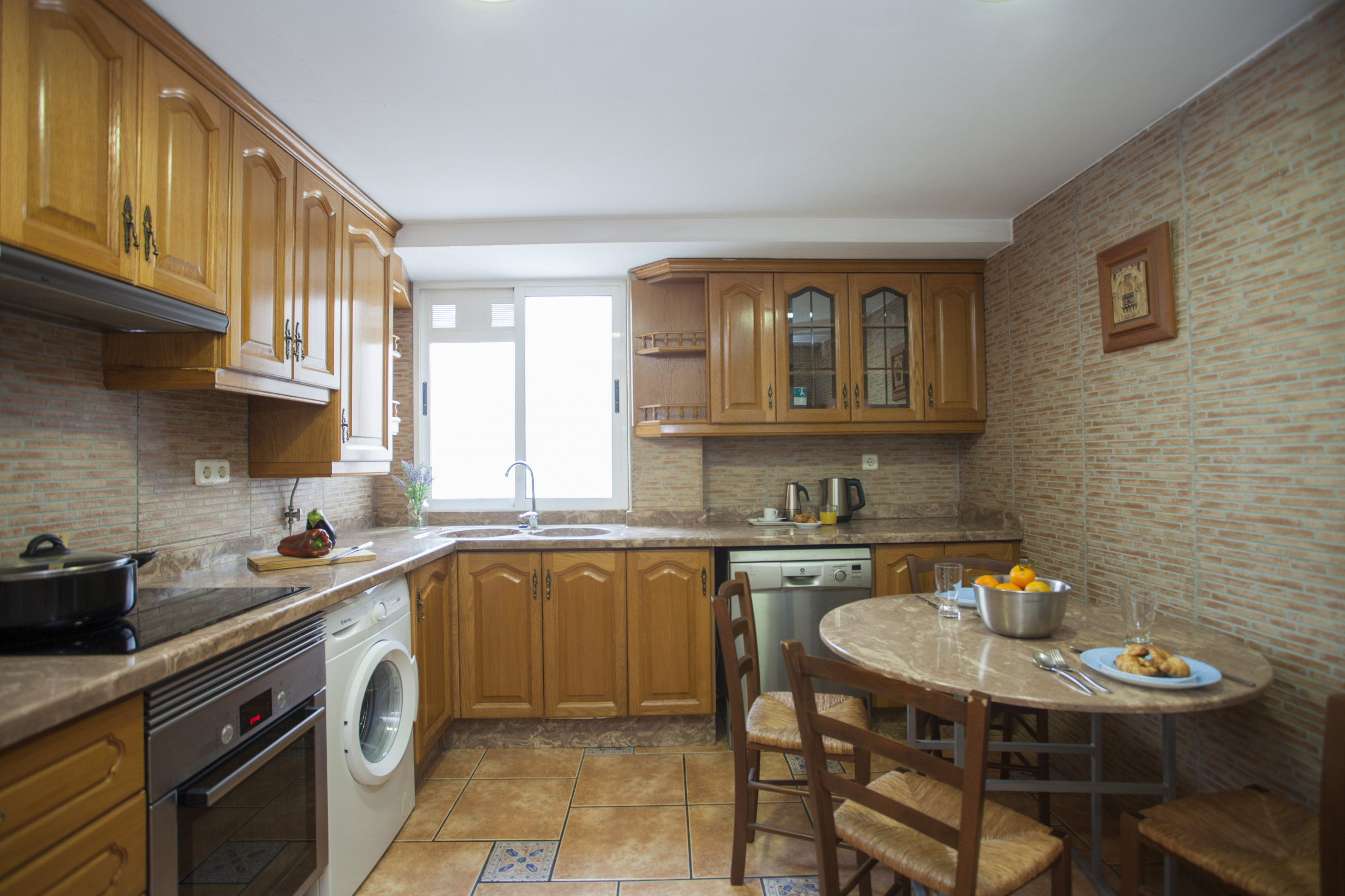 In the electric independent kitchen, refrigerator, microwave, oven, freezer, washing machine, dishwasher, dishes/cutlery, kitchen utensils and coffee machine are provided.