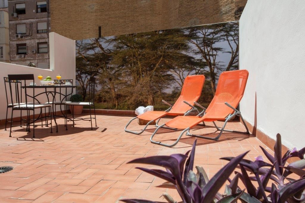 This apartment in the heart of Valencia enjoys an incredible terrace of 30m² equipped with hammocks and a table for four people. In addition, the double room has access to a small private balcony. Bright, modern, cozy and with garage in the same building.