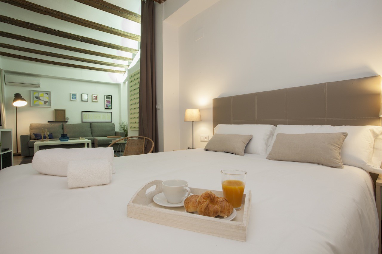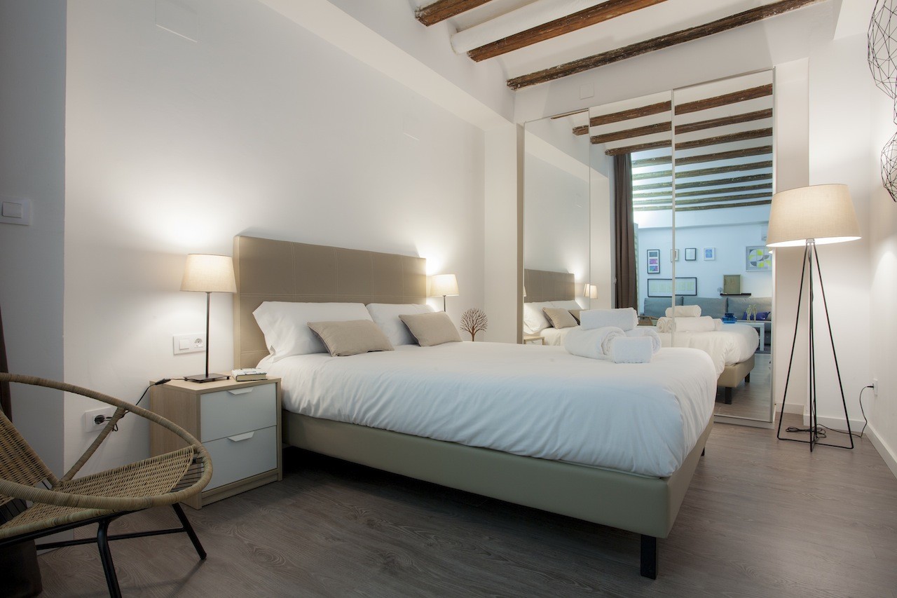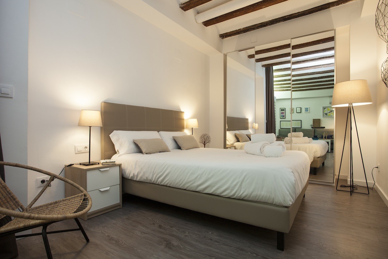 This apartment has the perfect location: in the historic centre of the city of Valencia, specifically up the street from the Mercado Central. Today it is both an important space for the sale of fresh produce, as well as a great cultural and touristic attraction for foreign visitors and even for the Valencians themselves. Within walking distance, you will find the Plaza de la Virgen and its cathedral, as well as an infinity of restaurants and hotels. The lungs of the city are at a short 15-minute walk away, los Jardines del Turia, the old river bed that goes through the city west to east, from the Bioparc to the City of Arts and Sciences.