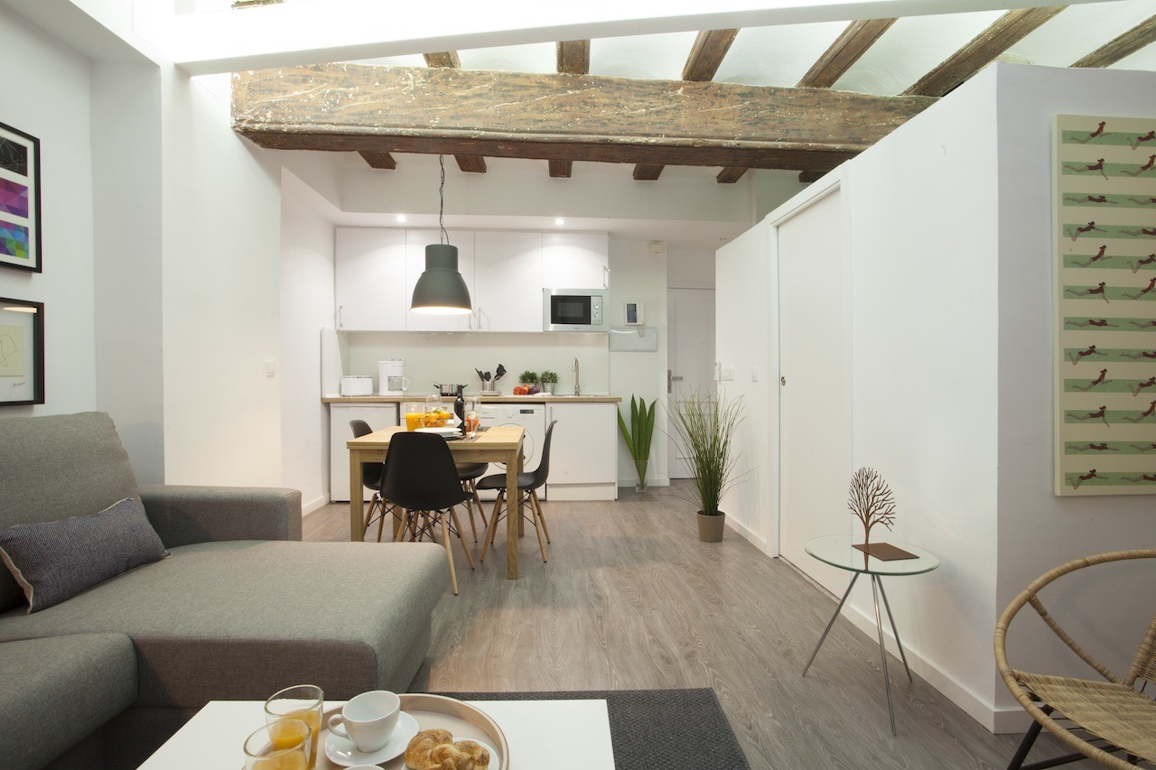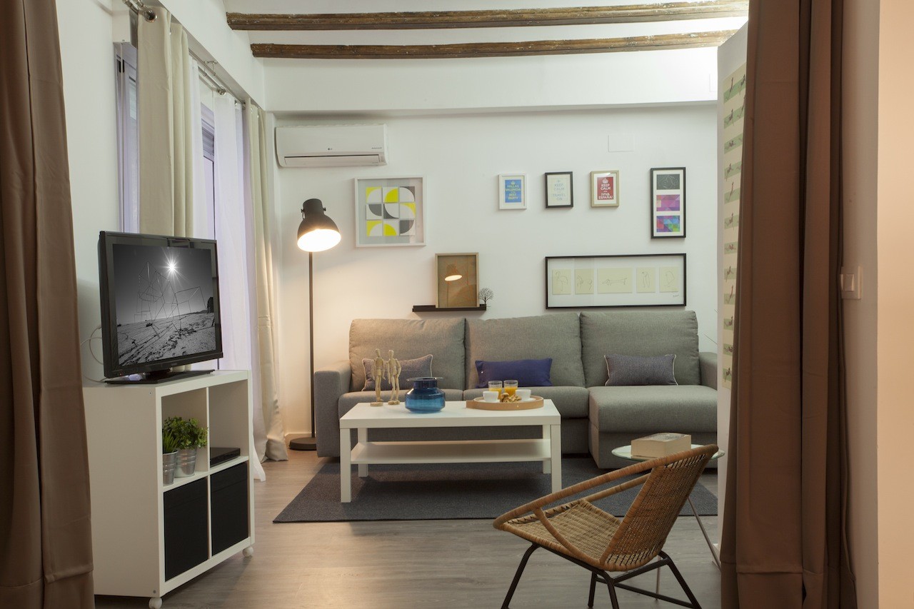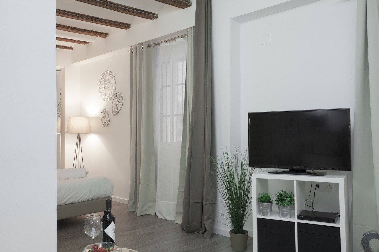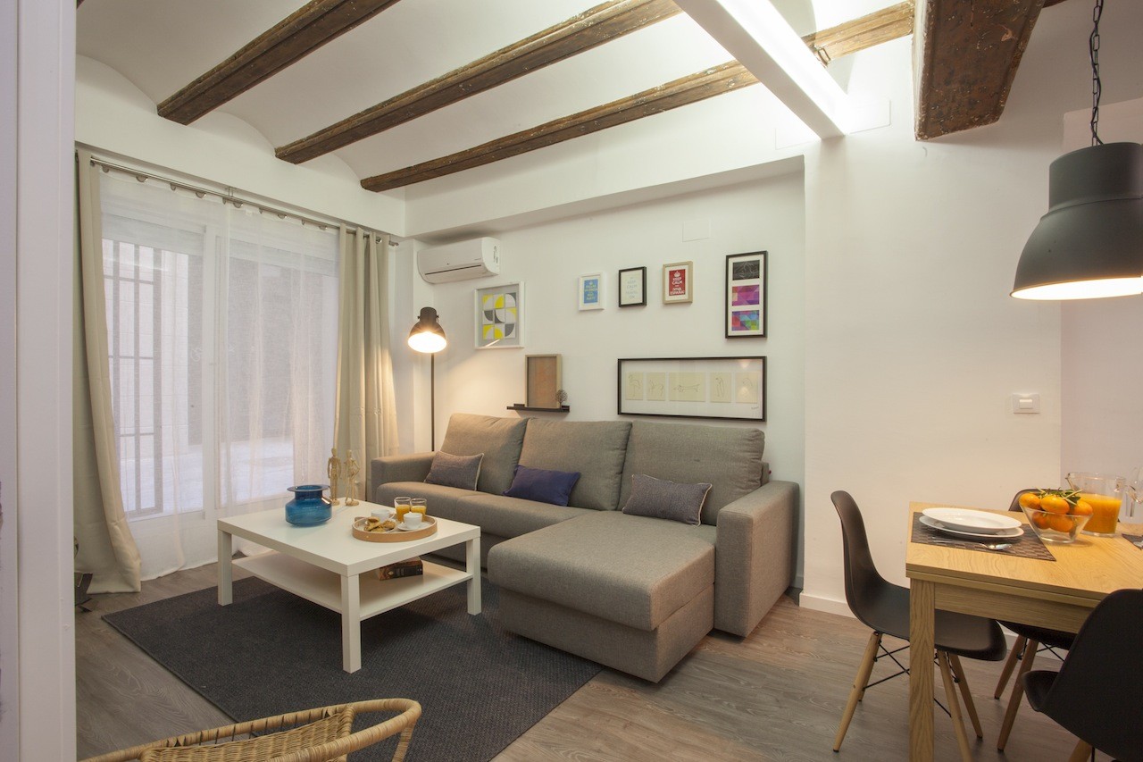 This apartment has the perfect location: in the historic centre of the city of Valencia, specifically up the street from the Mercado Central. Today it is both an important space for the sale of fresh produce, as well as a great cultural and touristic attraction for foreign visitors and even for the Valencians themselves. Within walking distance, you will find the Plaza de la Virgen and its cathedral, as well as an infinity of restaurants and hotels. The lungs of the city are at a short 15-minute walk away, los Jardines del Turia, the old river bed that goes through the city west to east, from the Bioparc to the City of Arts and Sciences.