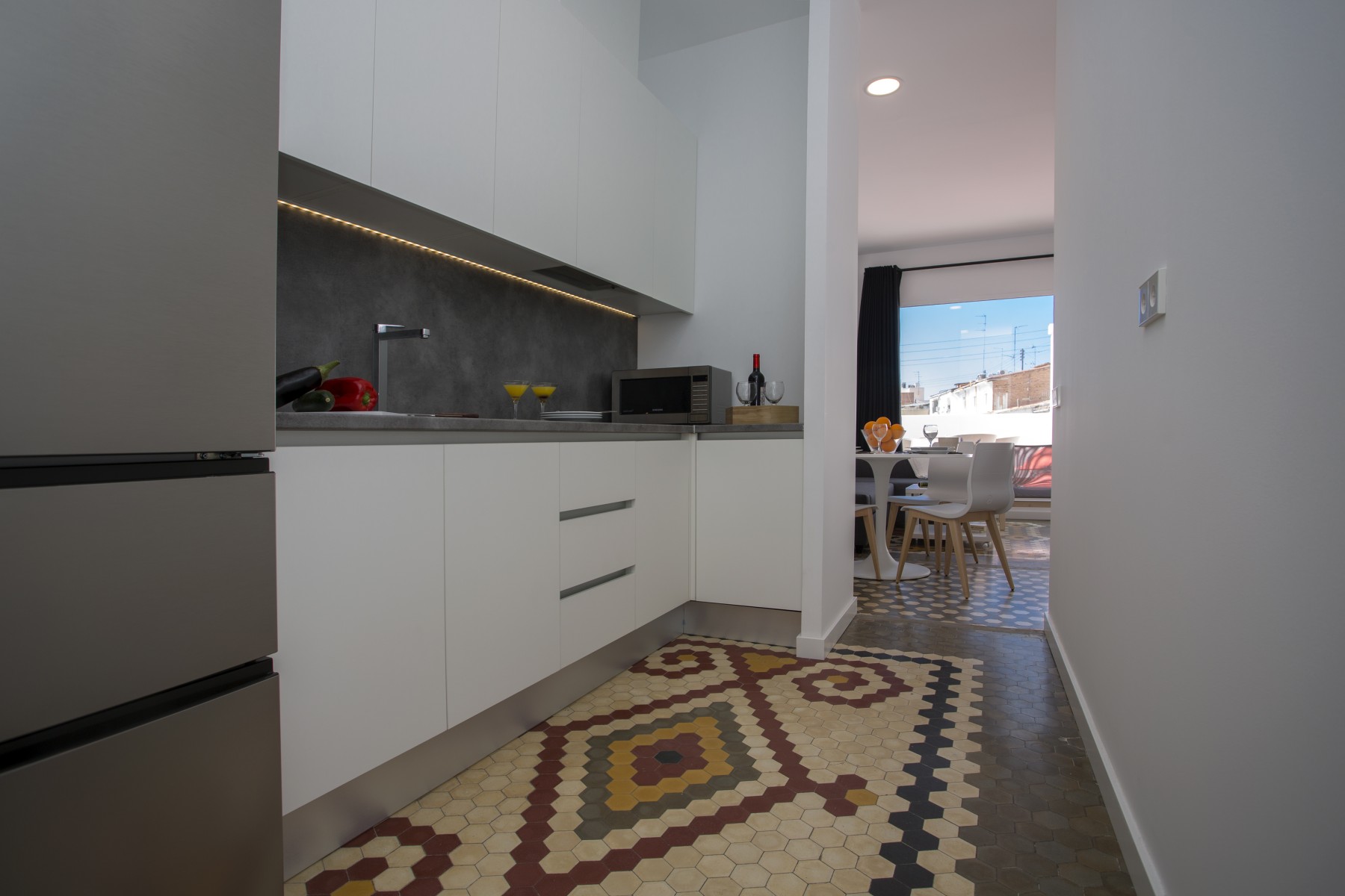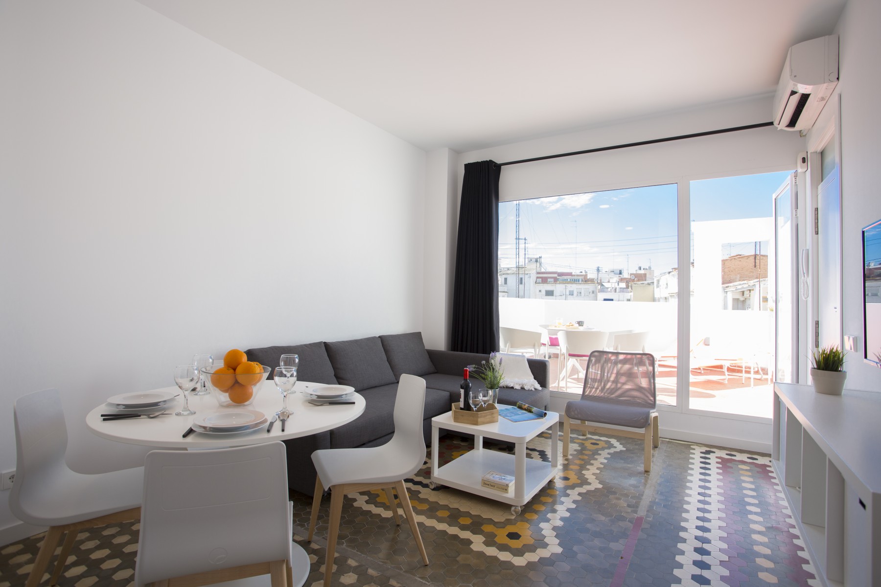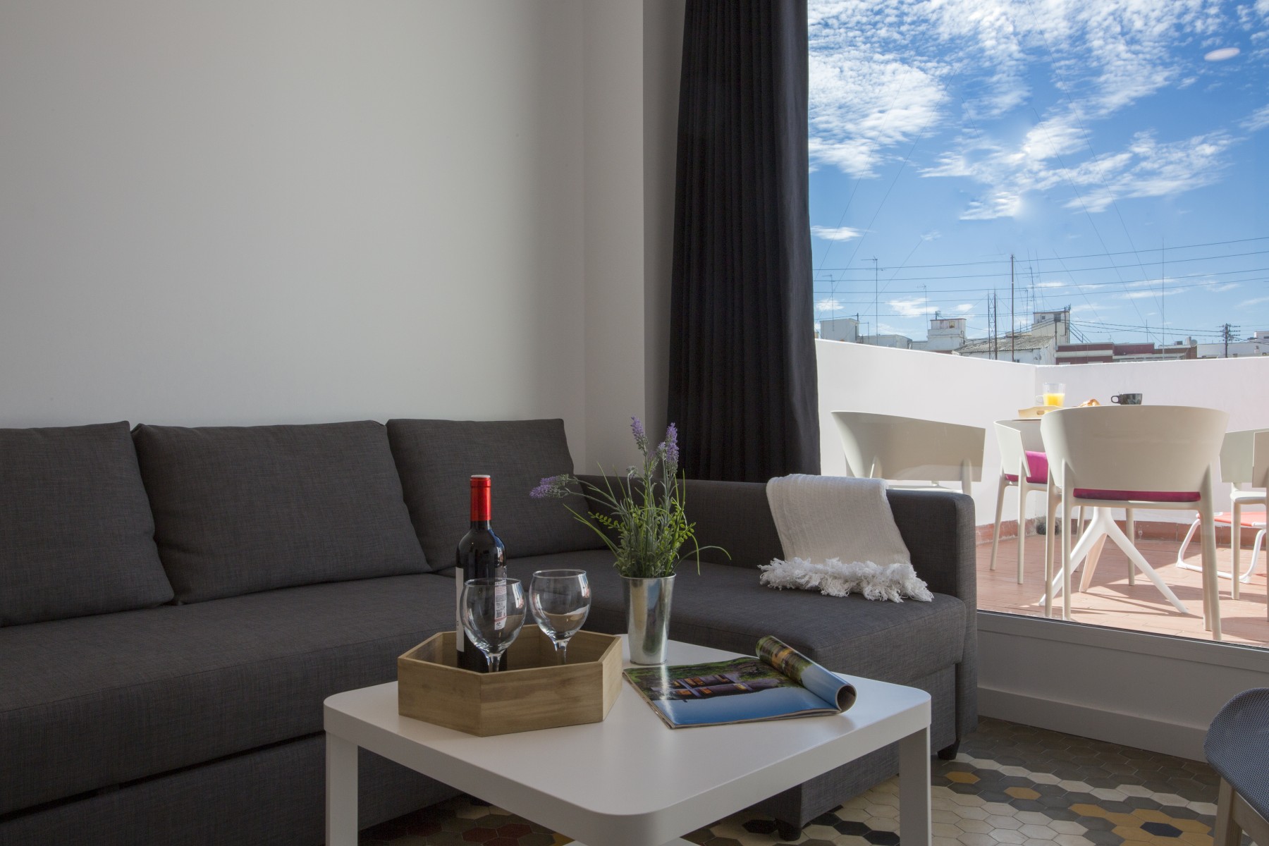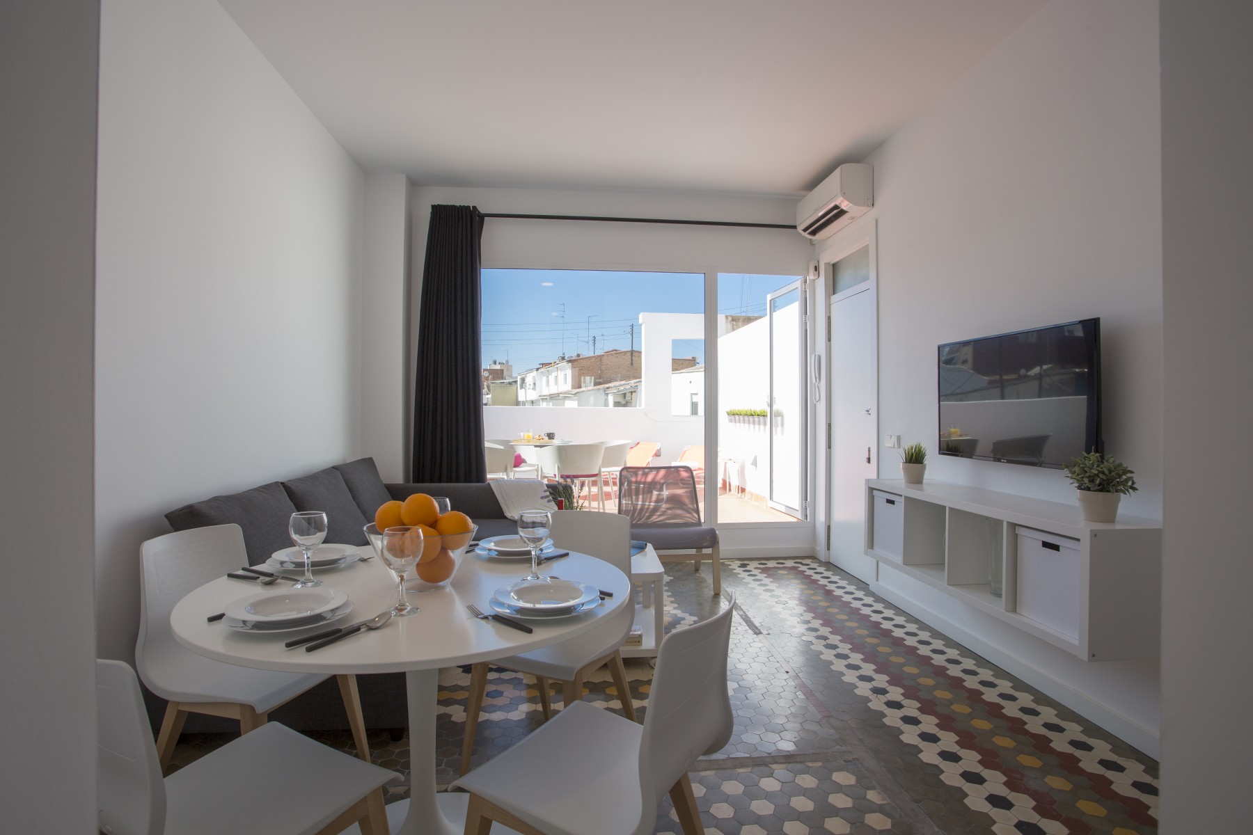 Stunning apartment for 4 people very close to the center of the city. The fully equipped kitchen communicates with the spacious living room with access and views to the spectacular terrace, equipped with hammocks and a table for four. With an exquisite decoration, being a very luminous space thanks to its large windows.