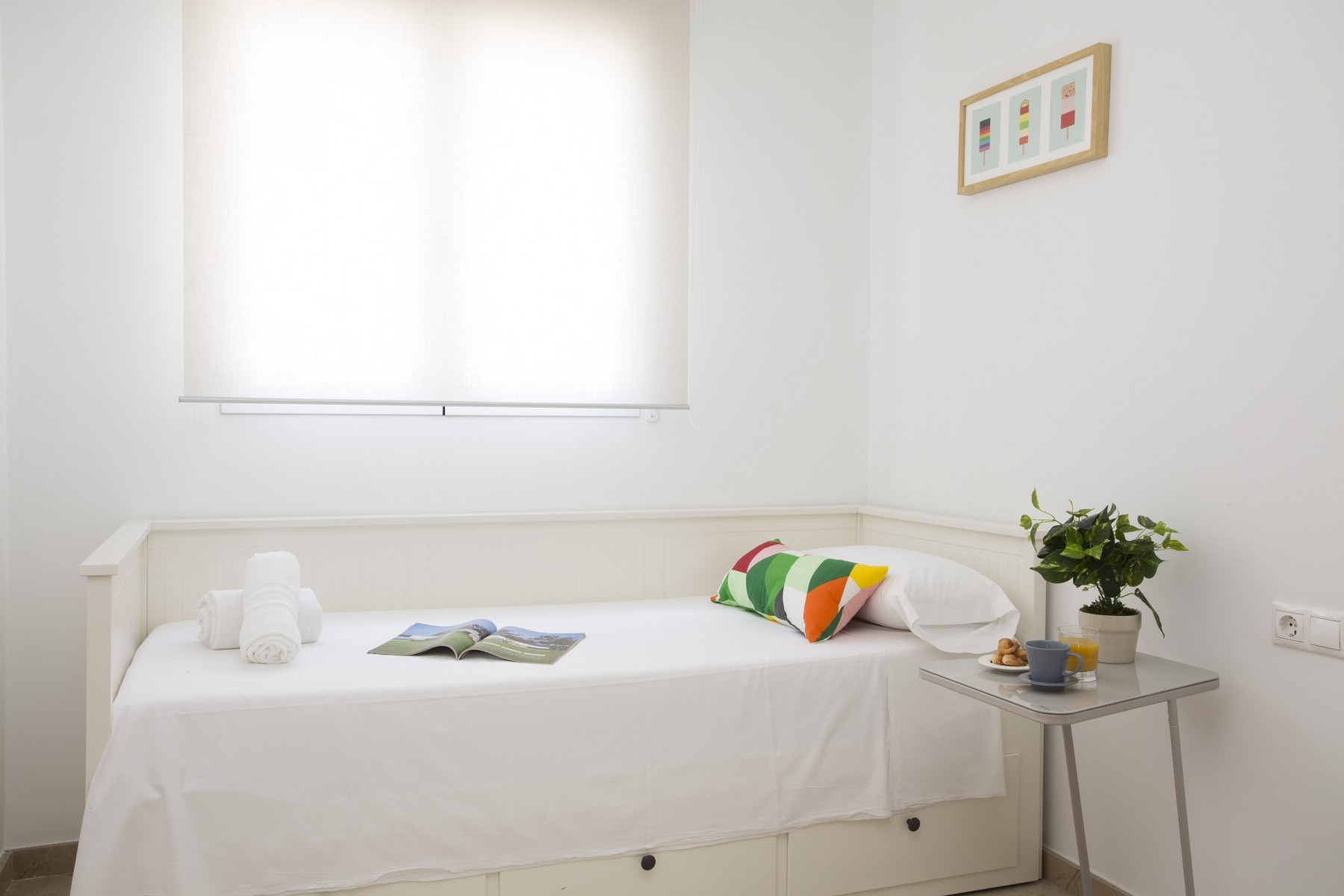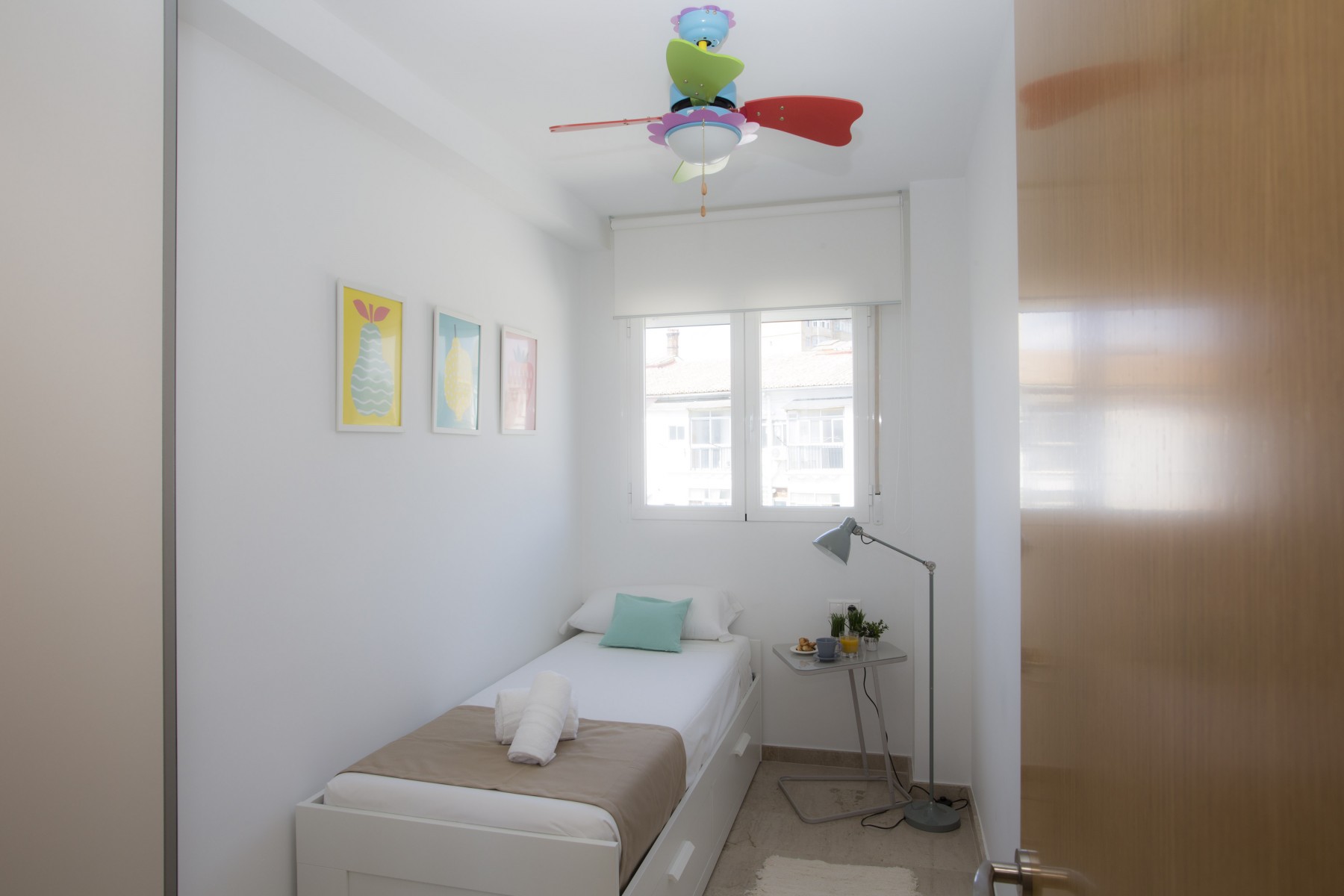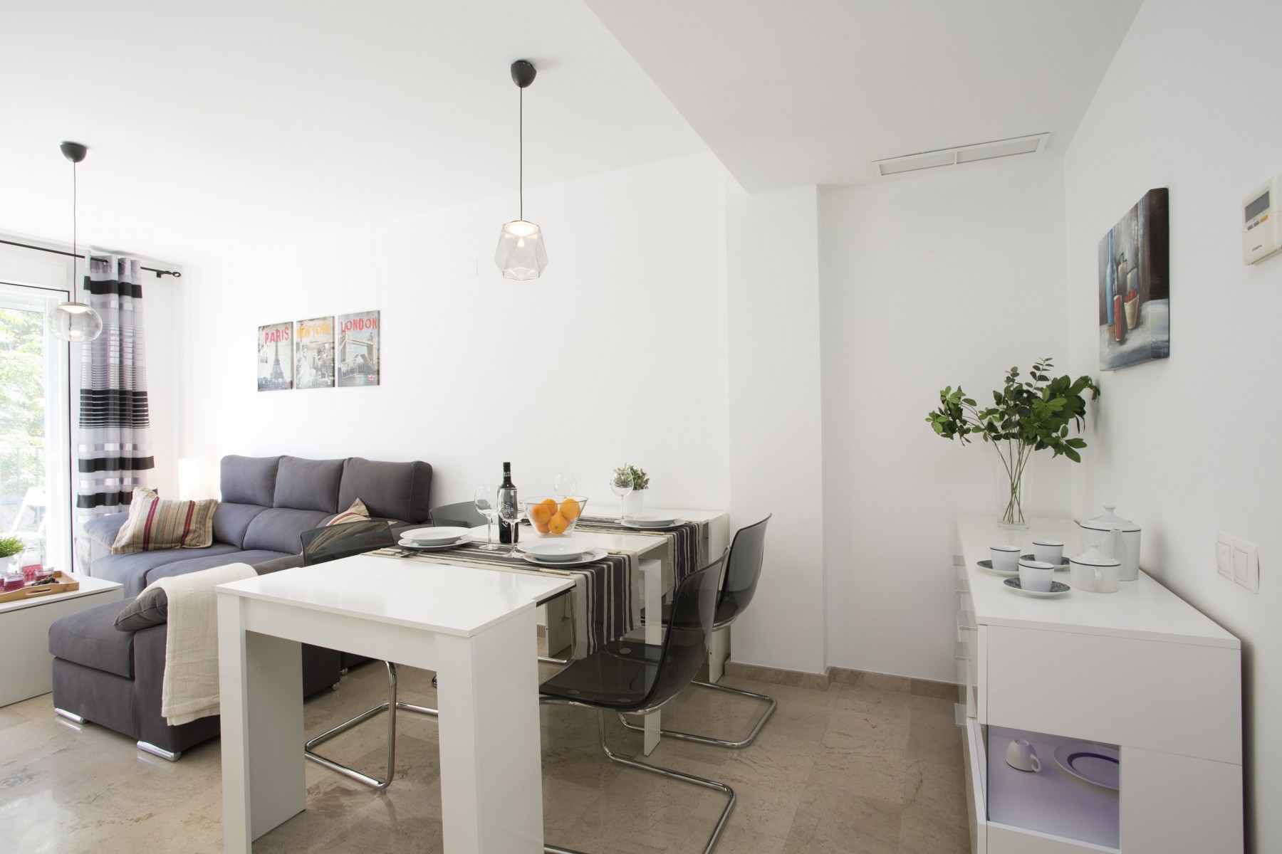 Spacious apartment overlooking the city of Valencia. From its magnificent dining room you can access the cozy balcony that offers this accommodation, equipped with a small table and two comfortable chairs. The kitchen is independent and fully equipped, just like the rest of the apartment.