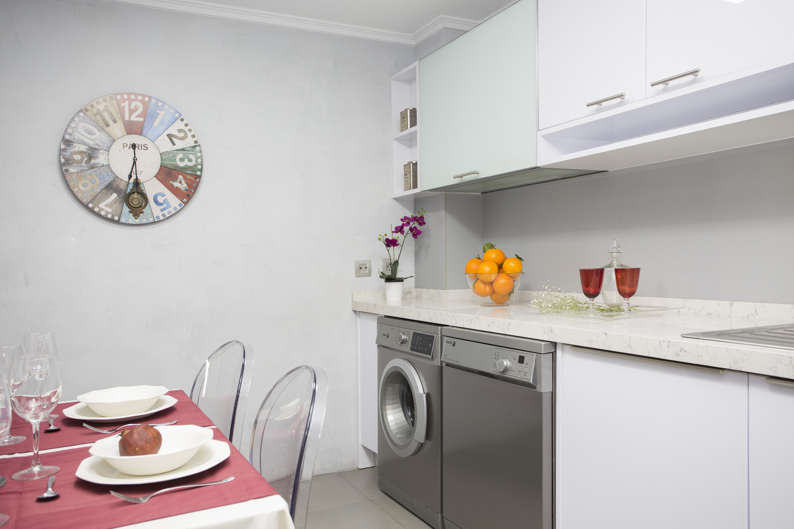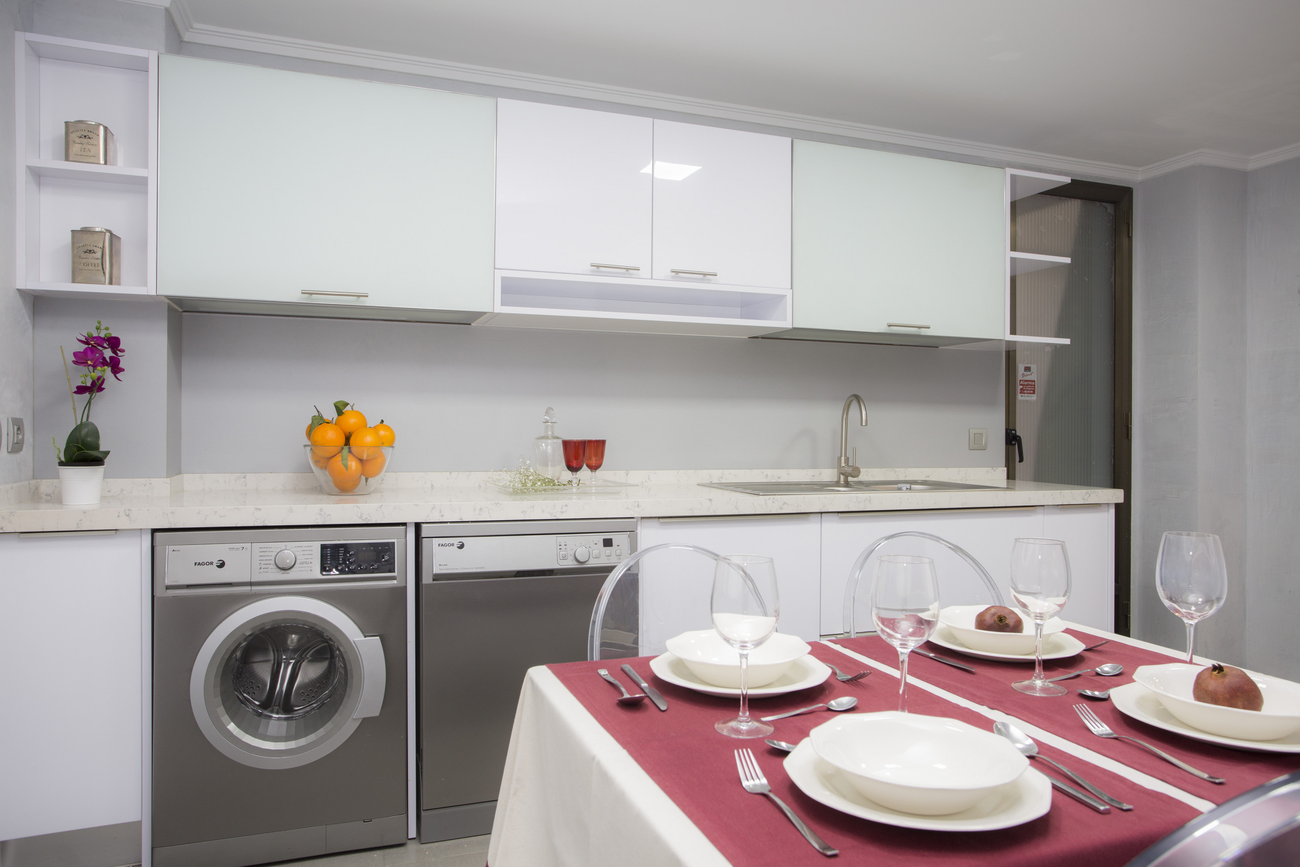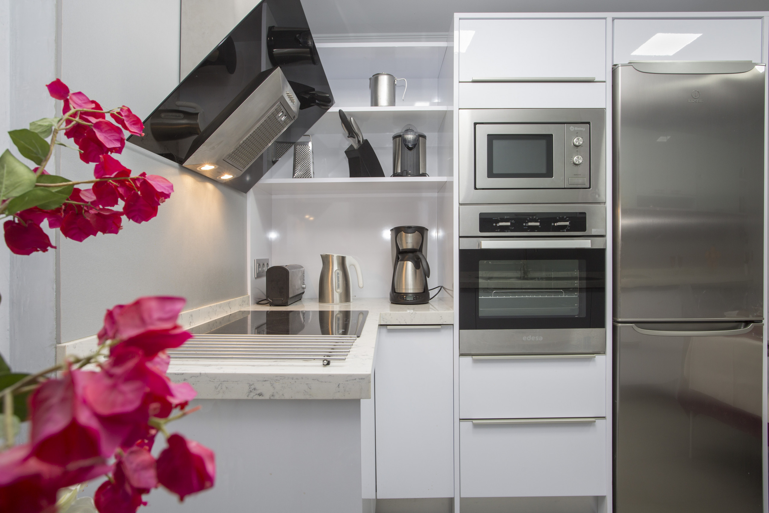 In the vitroceramic independent kitchen, refrigerator, microwave, oven, freezer, washing machine, dishwasher, dishes/cutlery, kitchen utensils, coffee machine, toaster, kettle and juicer are provided.