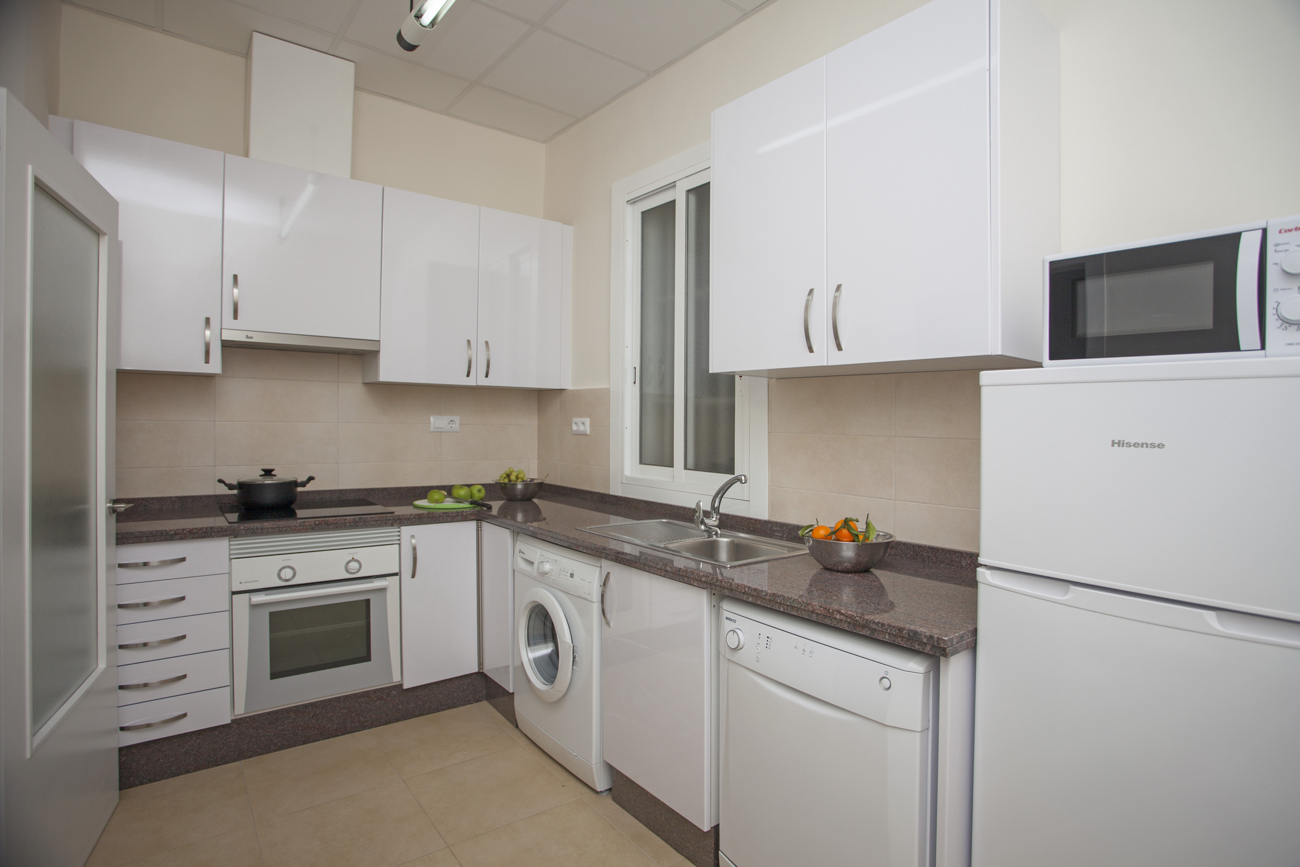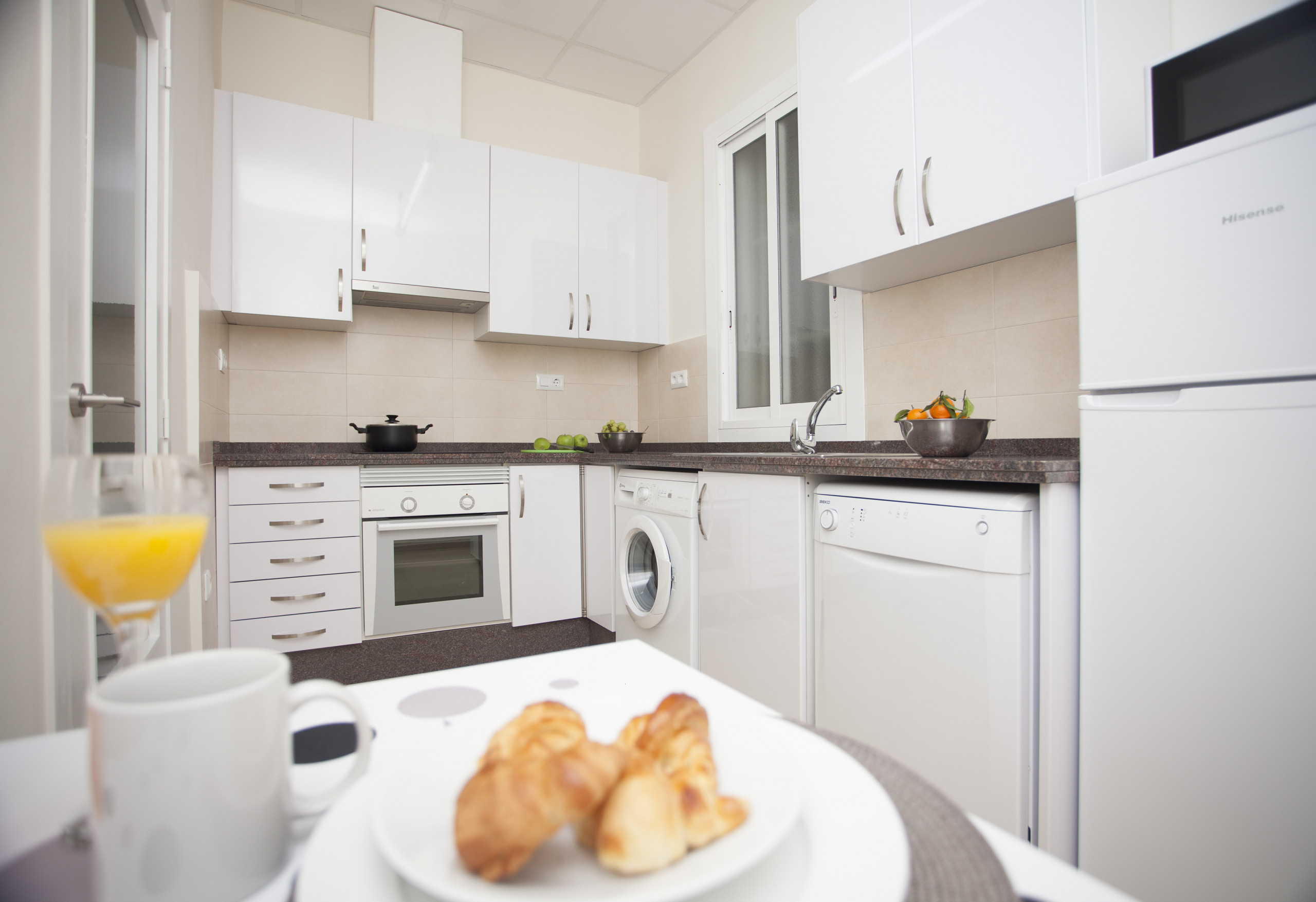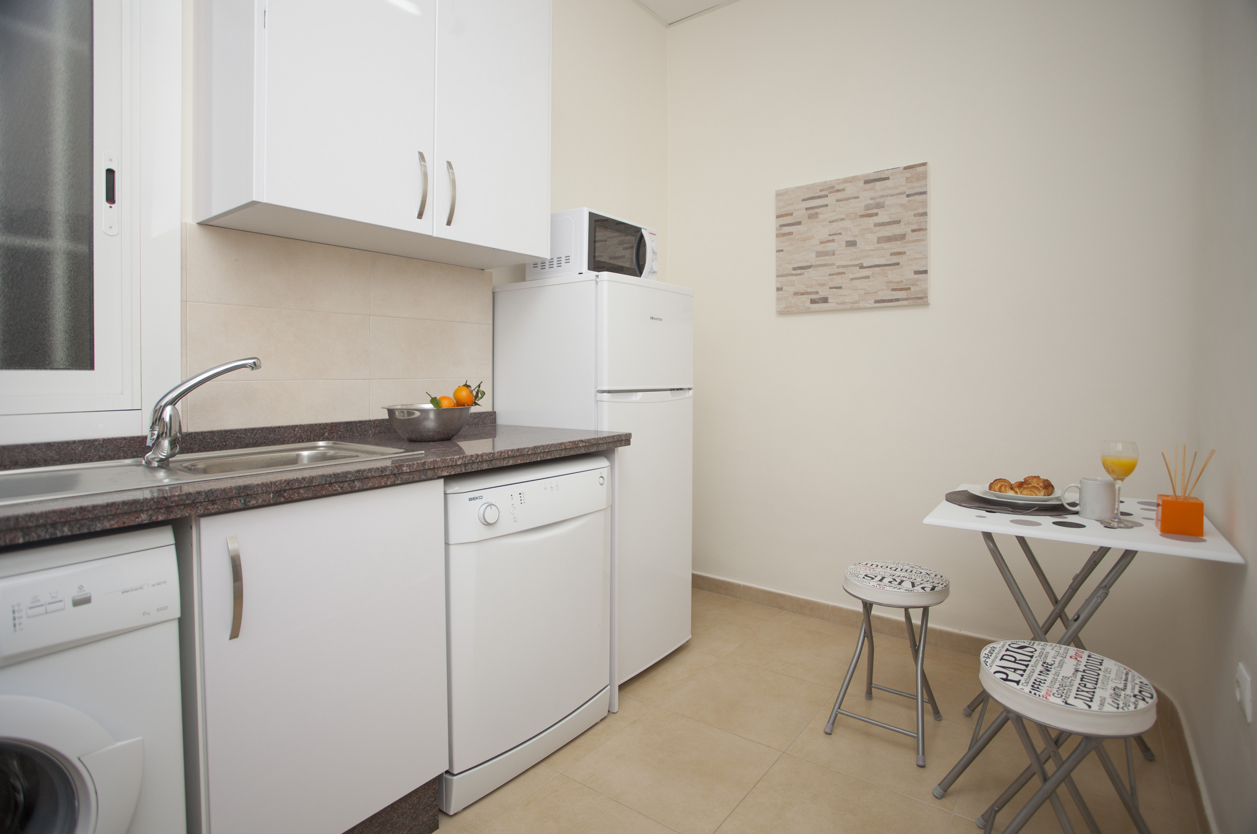 Very well located 60m² cozy apartment. It has a small balcony that will make this space a much brighter and more comfortable place, since you can enjoy it throughout the year. It has a modern décor contrasting the light tones of the walls with the dark ones of the comfortable furniture. It has a bedroom with double bed, fully equipped kitchen and one bathroom with shower.