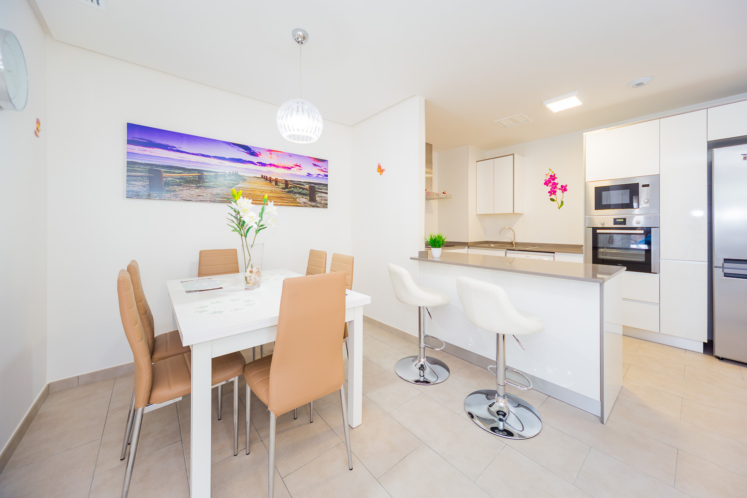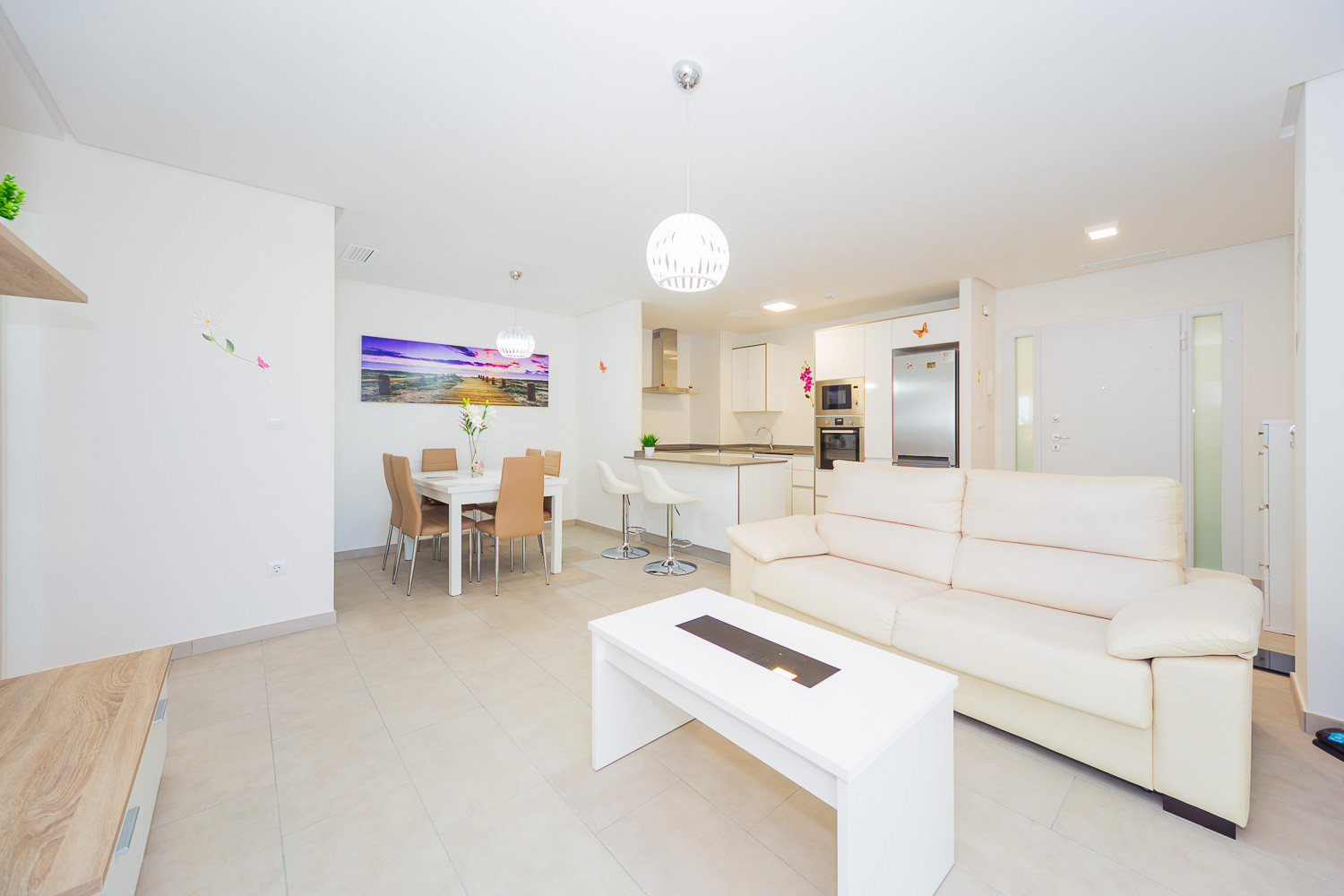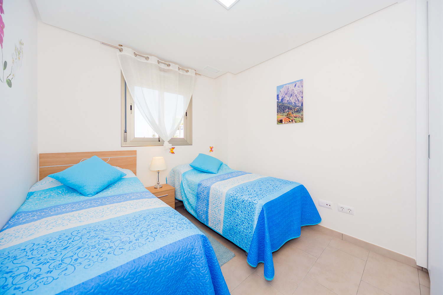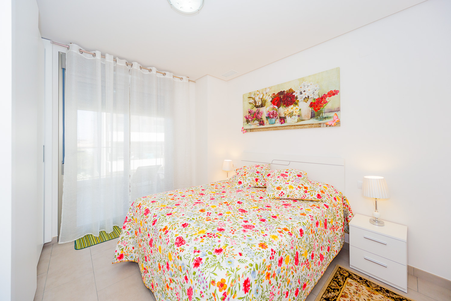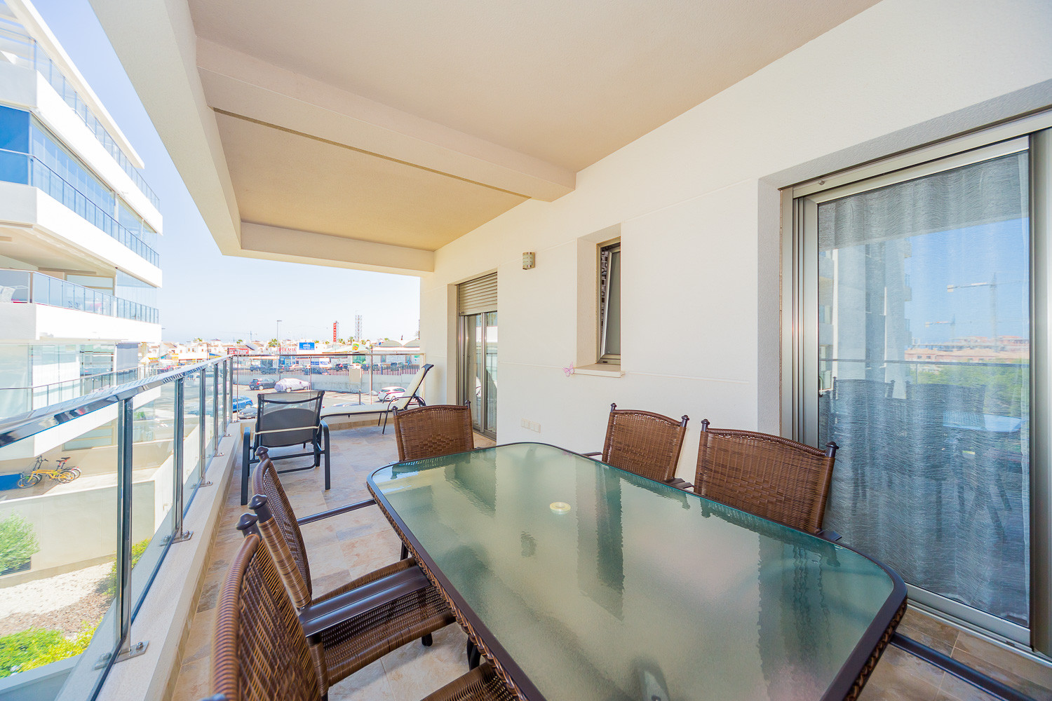 This apartment is located in Villamartin on the Orihuela Costa. It consists of two bedrooms, a large living room with kitchen, two bathrooms and a large balcony. Located in a closed urbanization with lovely maintained communal swimming pools, parking, sauna, sports hall and a green garden area. It is approximately 95 m2. The apartment is equipped with new furniture, appliances (including dishwasher), central air conditioning, kitchen utensils, bed linen and towels. Spanish television is also available. There are 2 communal swimming pools, jacuzzi, sauna, sports hall and children's games. There is a private parking space. It is walking distance to supermarkets, bars and restaurants and much more. The beach is a 7-10 minute drive away. The apartment sleeps up to 6 people (no pets allowed!). Smoking is only allowed on the balcony or terrace! There is no English television but almost all the shows and movies on Spanish channels can be seen in the original version (English).