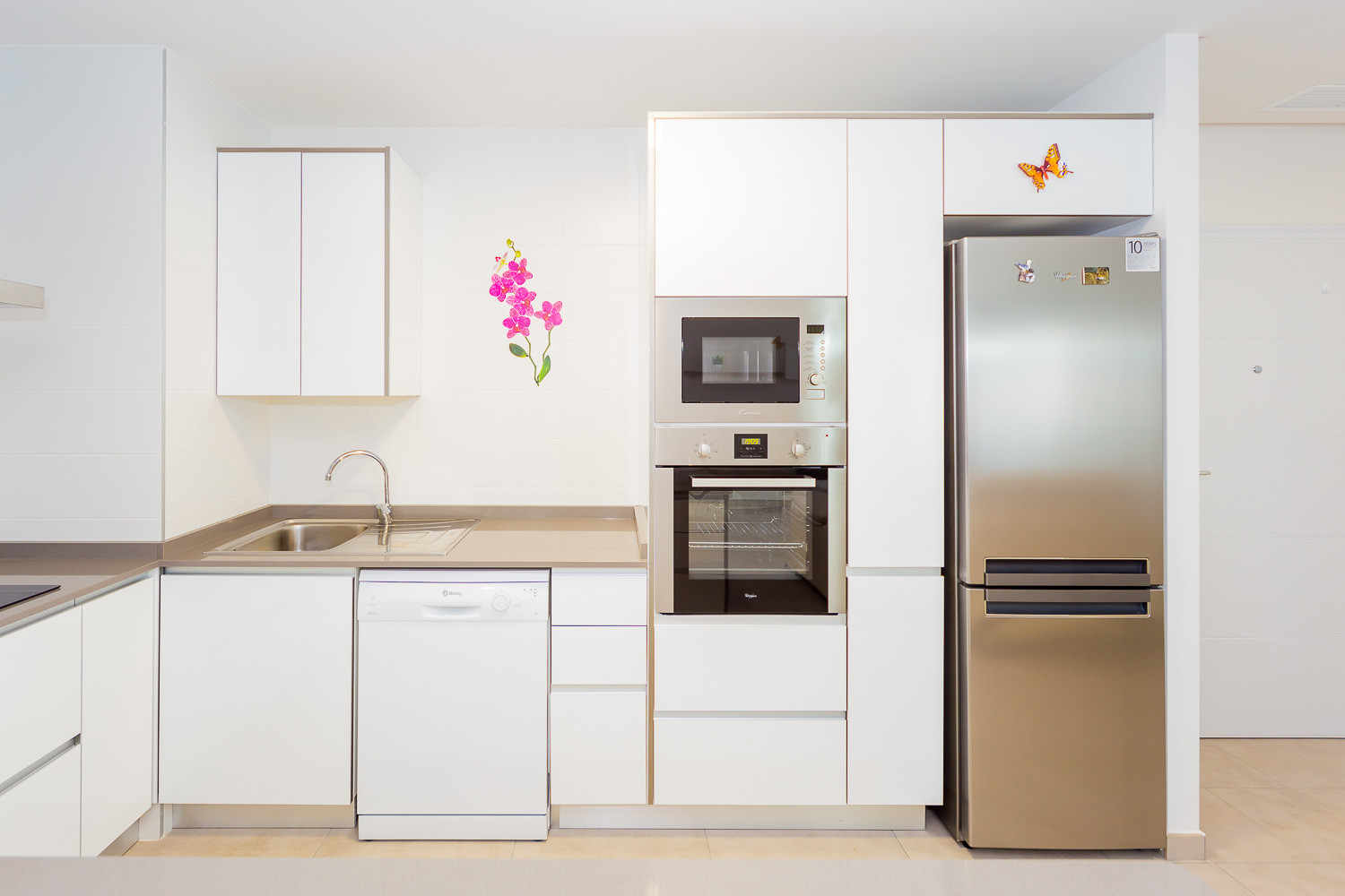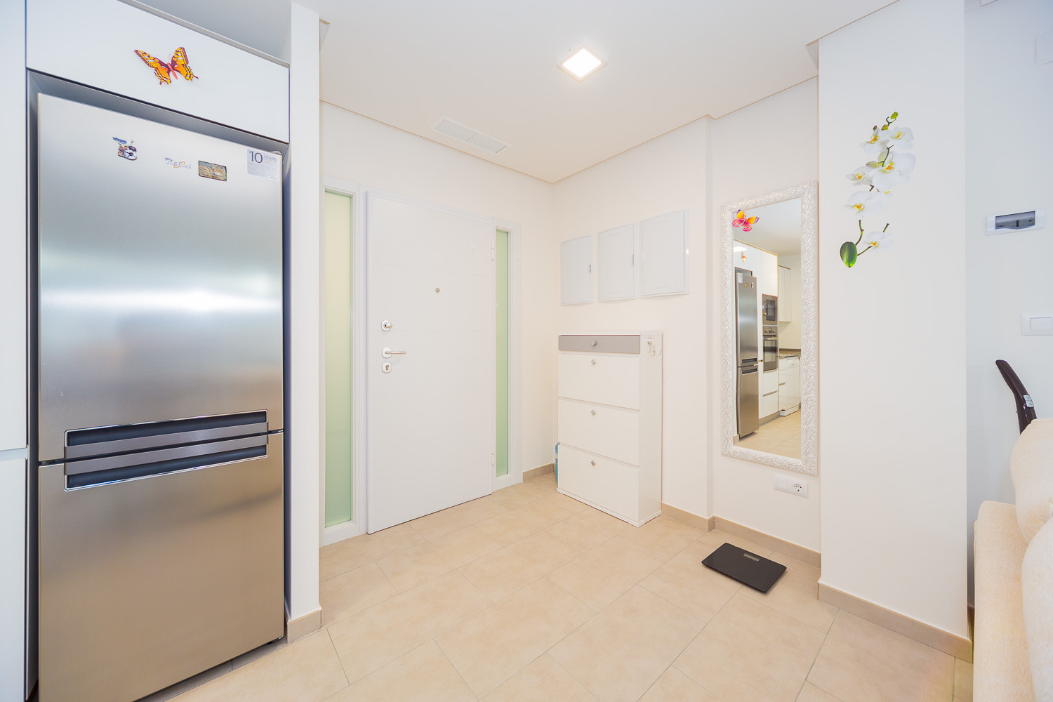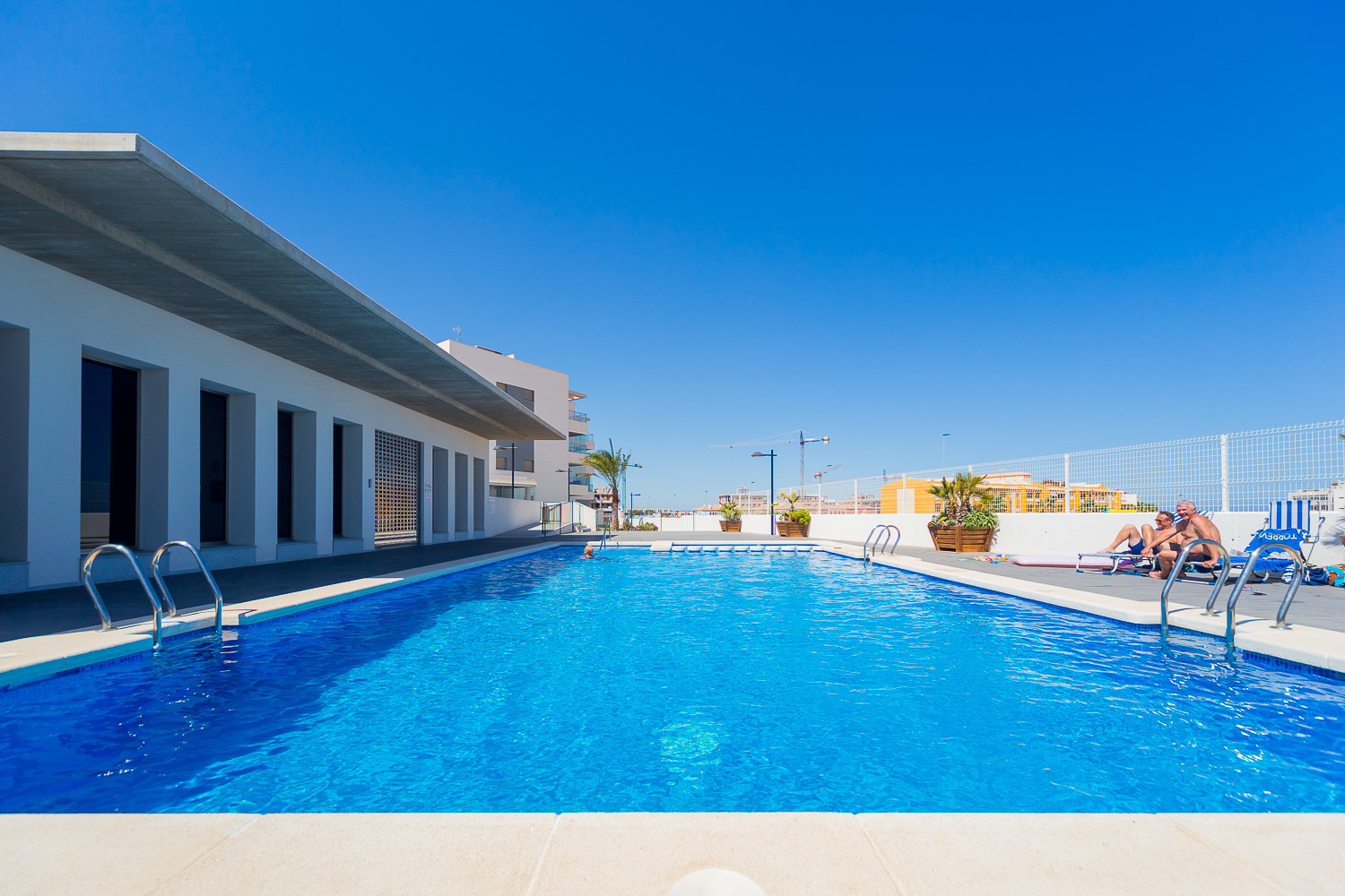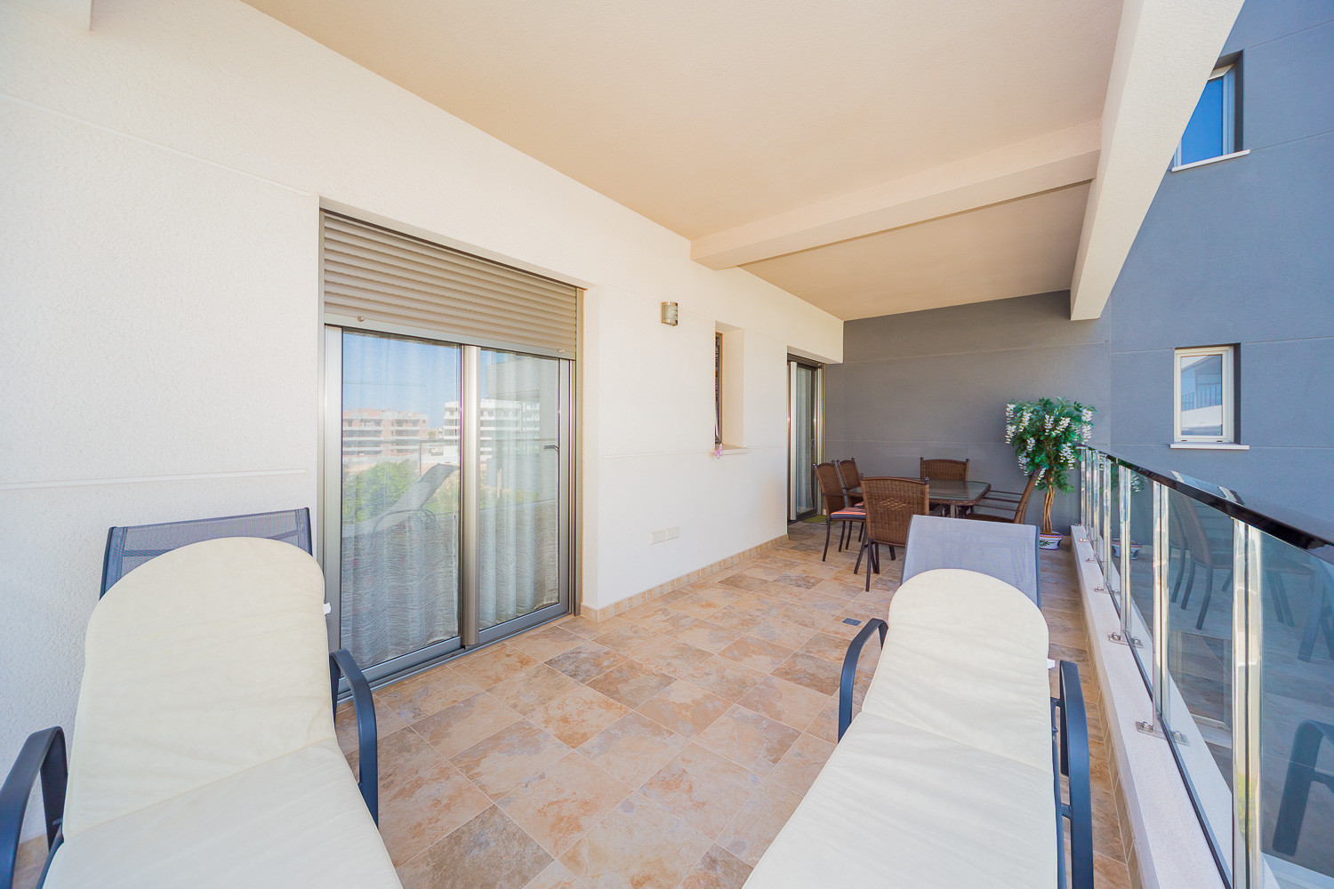 This apartment is located in Villamartin on the Orihuela Costa. It consists of two bedrooms, a large living room with kitchen, two bathrooms and a large balcony. Located in a closed urbanization with lovely maintained communal swimming pools, parking, sauna, sports hall and a green garden area. It is approximately 95 m2. The apartment is equipped with new furniture, appliances (including dishwasher), central air conditioning, kitchen utensils, bed linen and towels. Spanish television is also available. There are 2 communal swimming pools, jacuzzi, sauna, sports hall and children's games. There is a private parking space. It is walking distance to supermarkets, bars and restaurants and much more. The beach is a 7-10 minute drive away. The apartment sleeps up to 6 people (no pets allowed!). Smoking is only allowed on the balcony or terrace! There is no English television but almost all the shows and movies on Spanish channels can be seen in the original version (English).