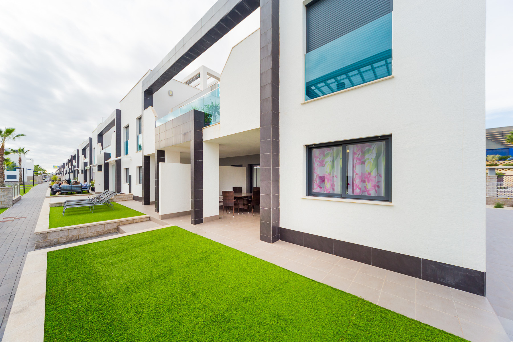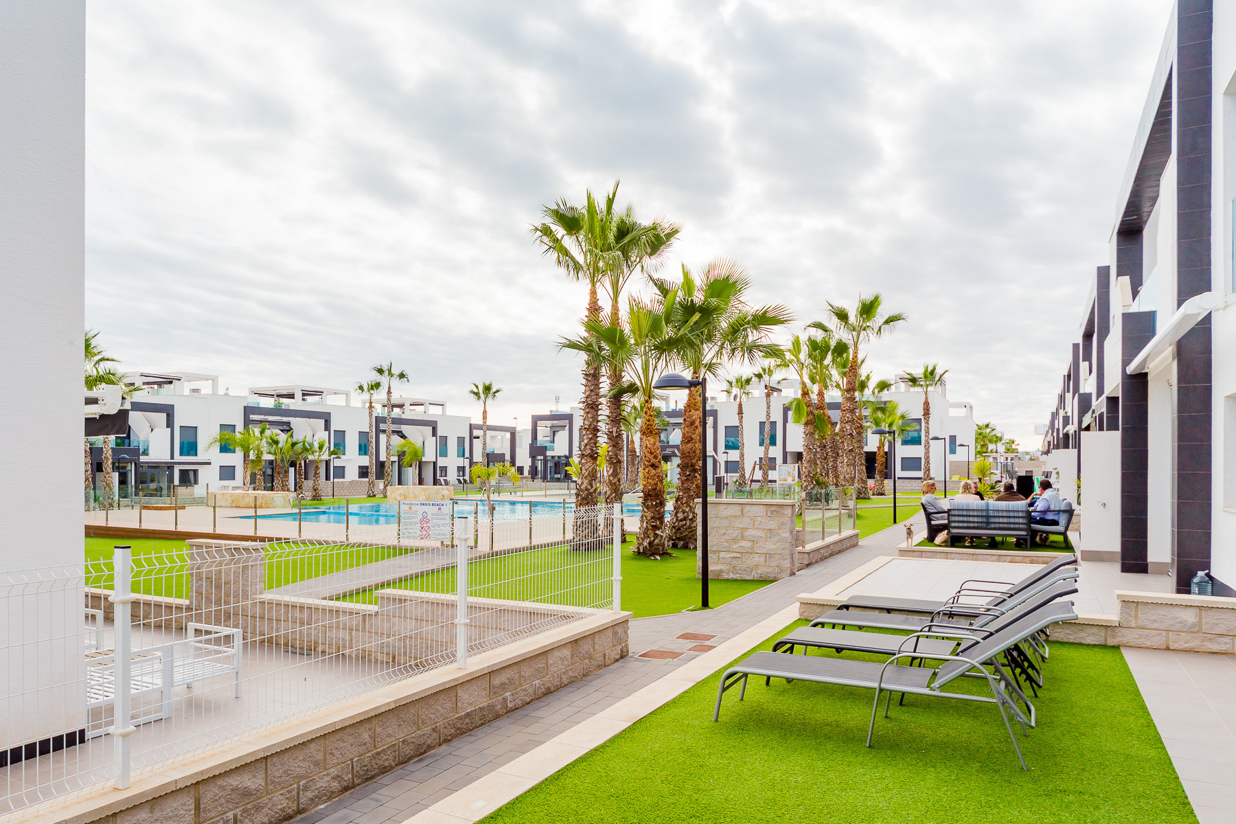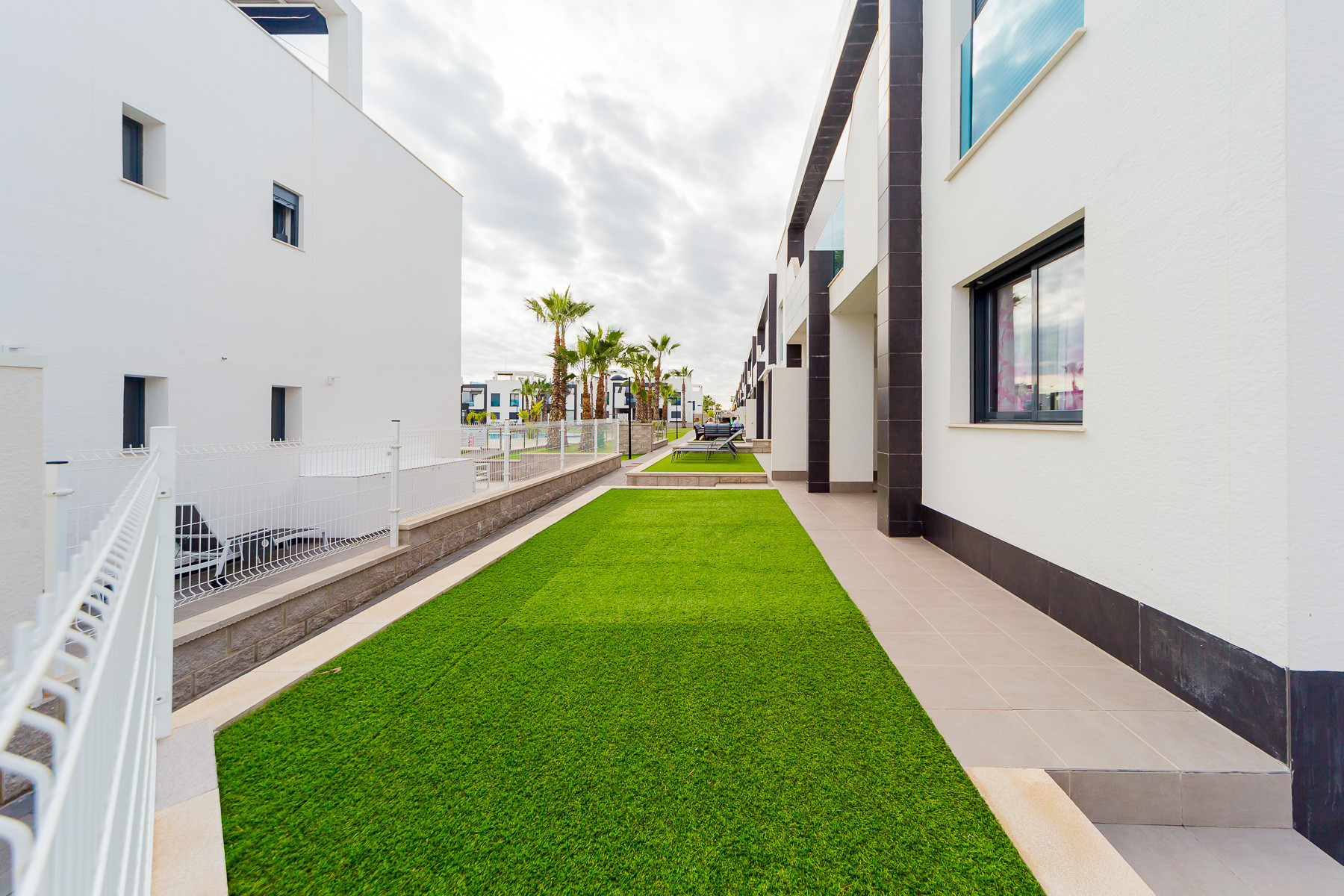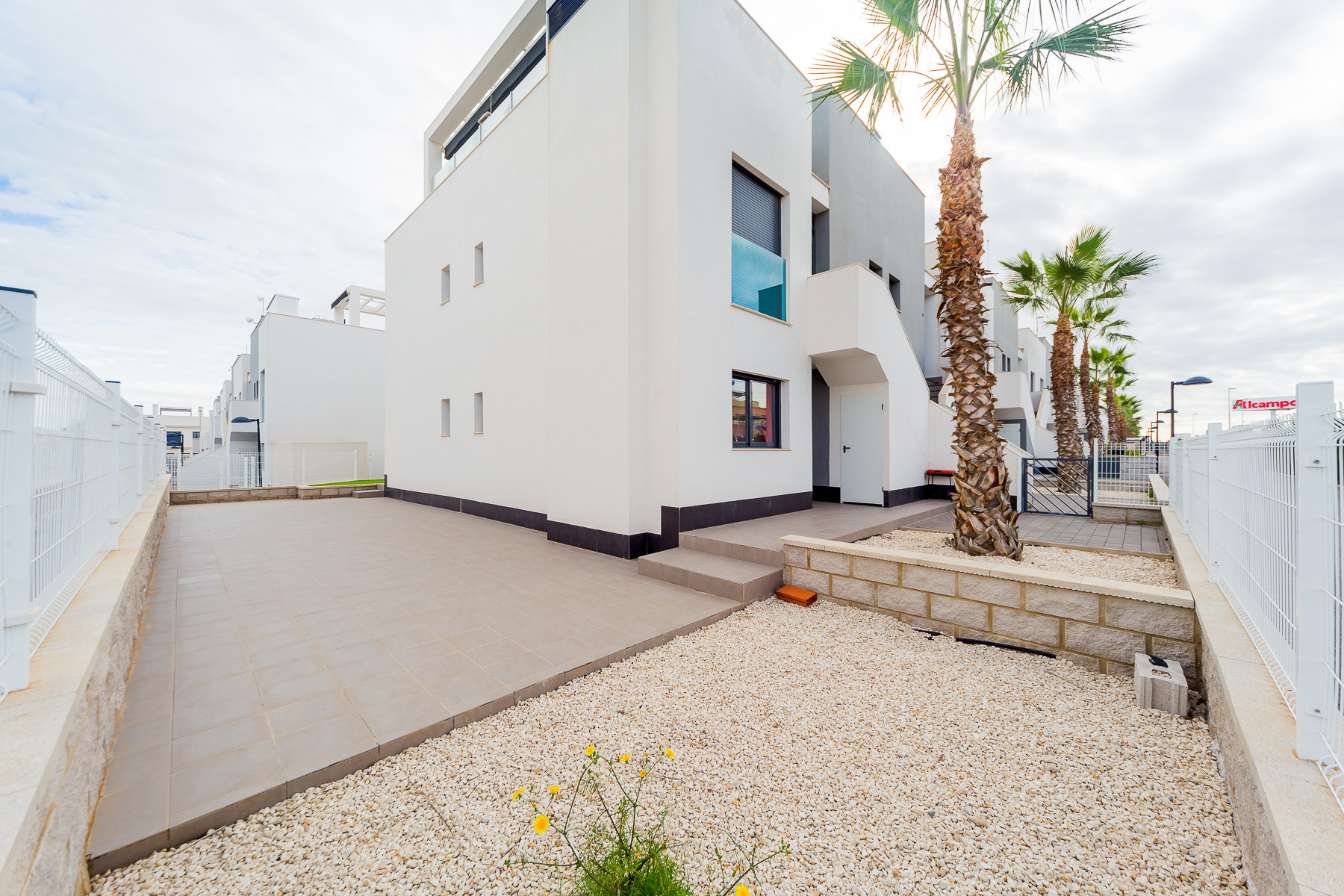 A modern bungalow located in a gated complex with communal swimming pool. It is spread out over 73 m2 and consists of a salon, two bedrooms, kitchen, two bathrooms and a terrace. There is a large private courtyard and a private garage parking space. It is fully equipped with new furniture, appliances, linens and towels, kitchen utensils, air conditioning, heated floors (which is important for the off-season).The air conditioning is only in the living room, but it's enough for all the apartments. Russian and Spanish TV are available. The terrace has outdoor furniture. It sleeps up to six people. Pets are not allowed and smoking is only permitted on the terrace. It is located adjacent to the new Zenia Boulevard open air shopping complex with a variety of over 150 shops bars, eateries, casino and much more. The sea is about 1 km away.