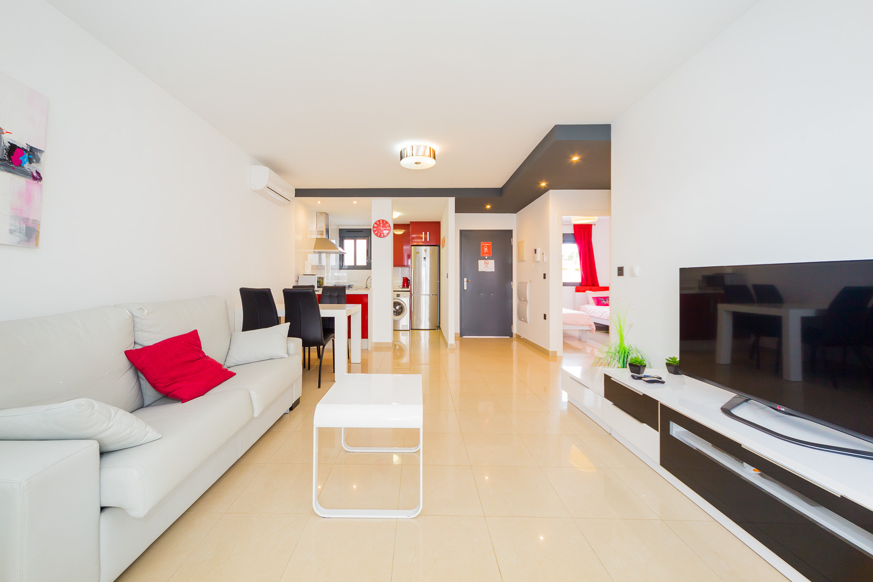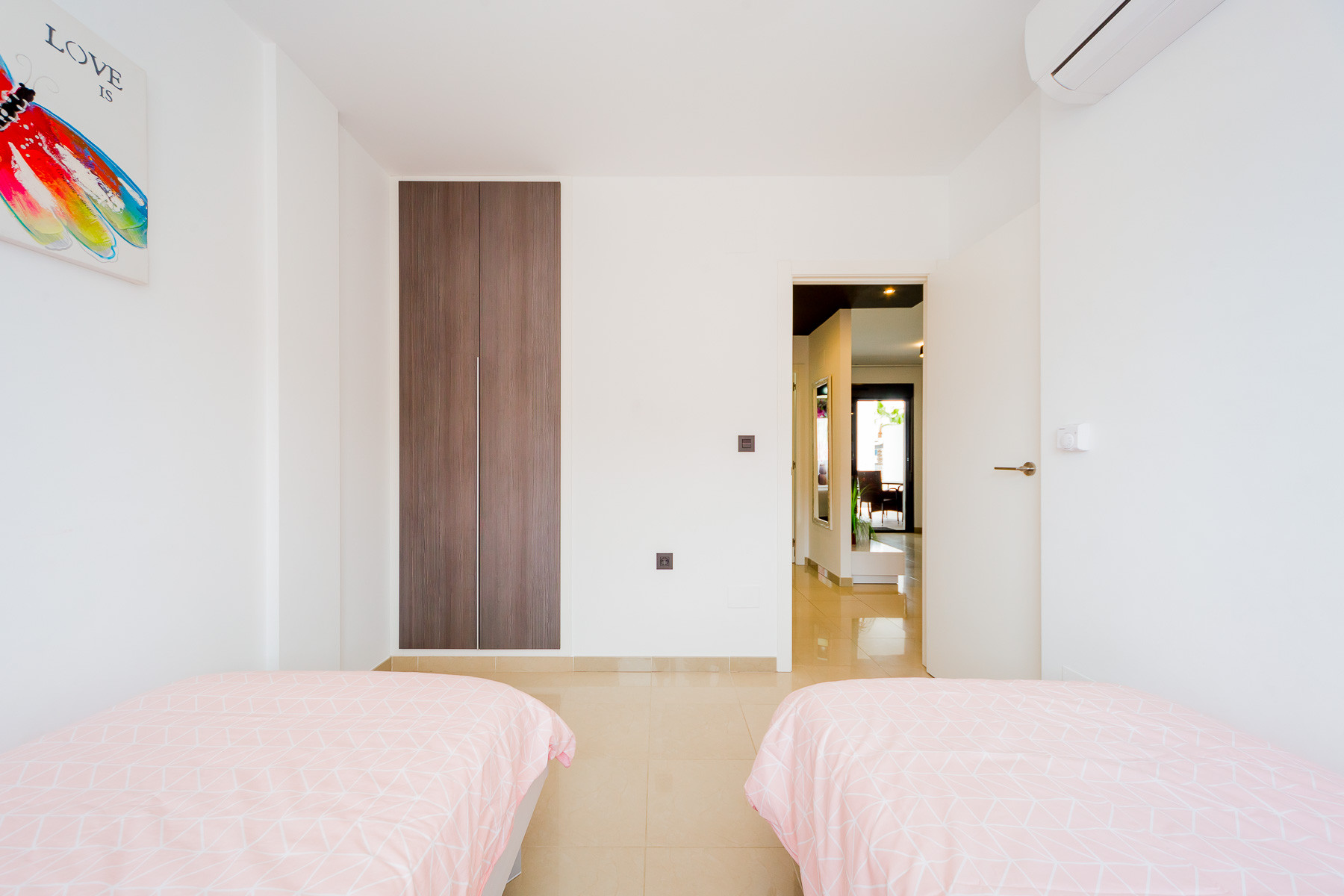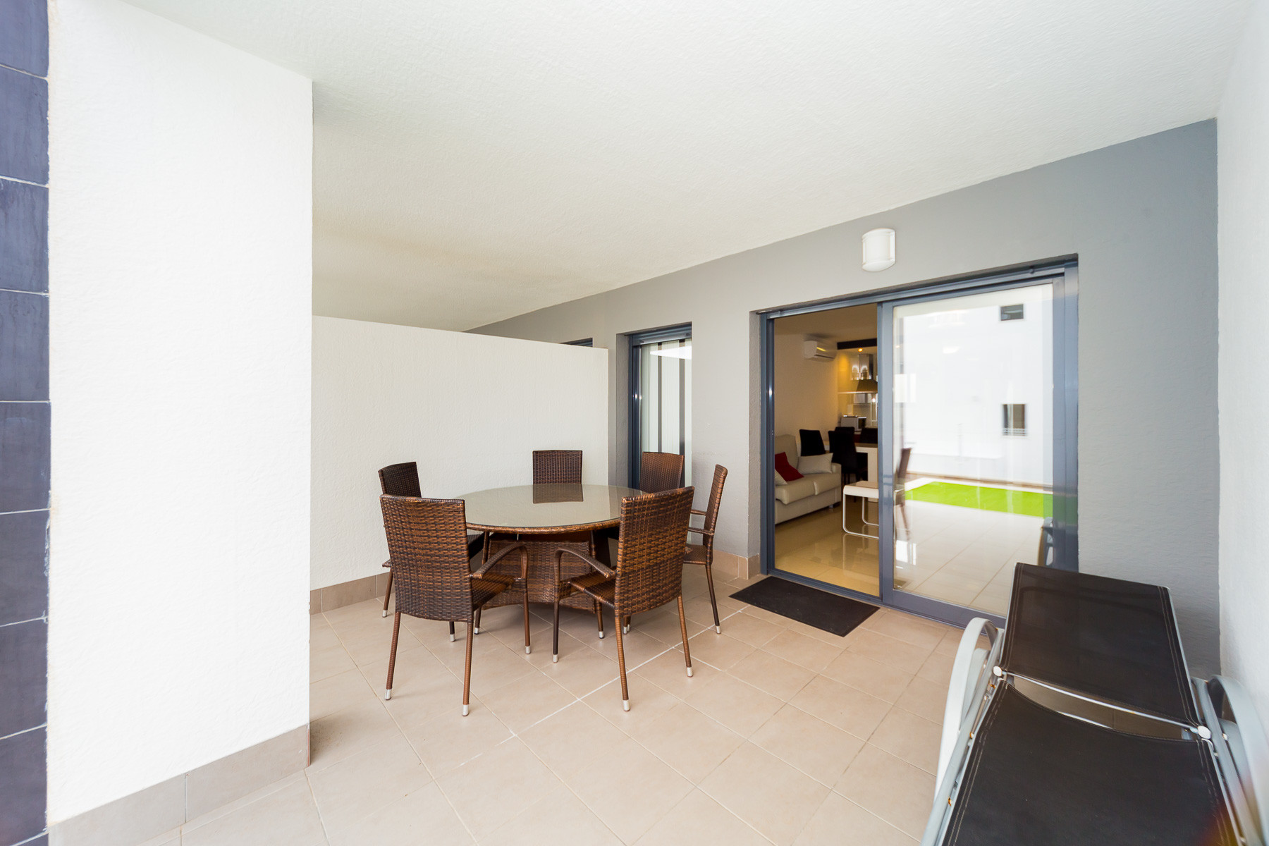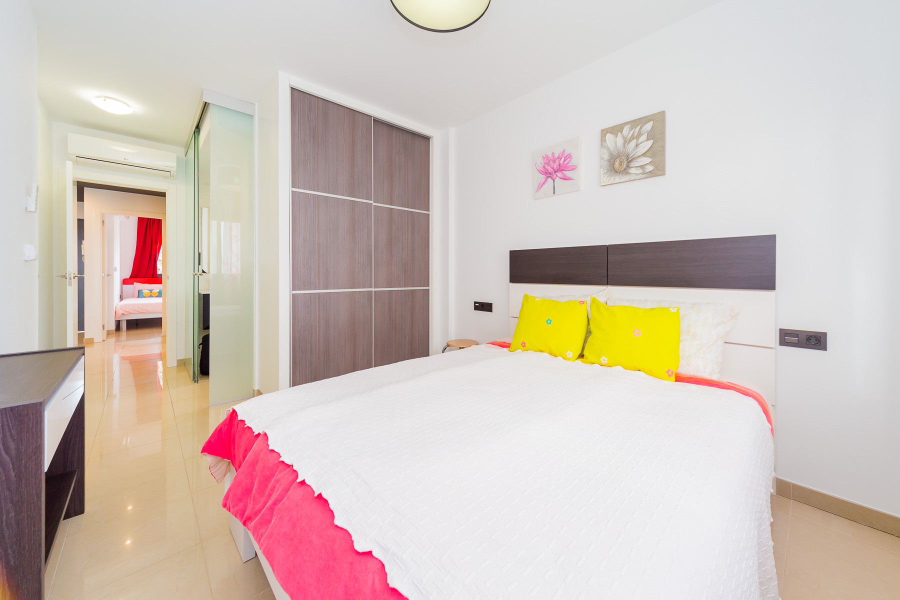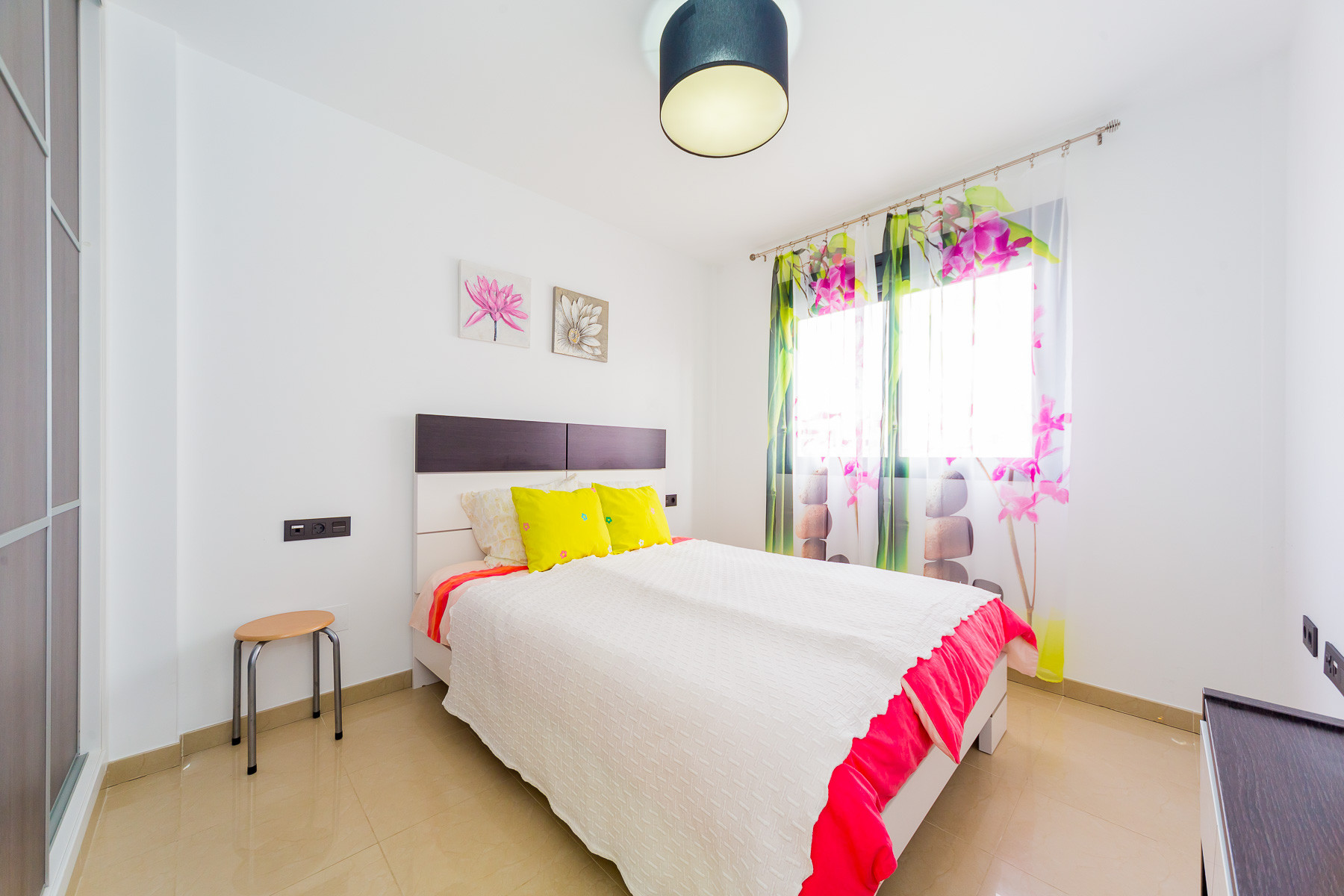 A modern bungalow located in a gated complex with communal swimming pool. It is spread out over 73 m2 and consists of a salon, two bedrooms, kitchen, two bathrooms and a terrace. There is a large private courtyard and a private garage parking space. It is fully equipped with new furniture, appliances, linens and towels, kitchen utensils, air conditioning, heated floors (which is important for the off-season).The air conditioning is only in the living room, but it's enough for all the apartments. Russian and Spanish TV are available. The terrace has outdoor furniture. It sleeps up to six people. Pets are not allowed and smoking is only permitted on the terrace. It is located adjacent to the new Zenia Boulevard open air shopping complex with a variety of over 150 shops bars, eateries, casino and much more. The sea is about 1 km away.