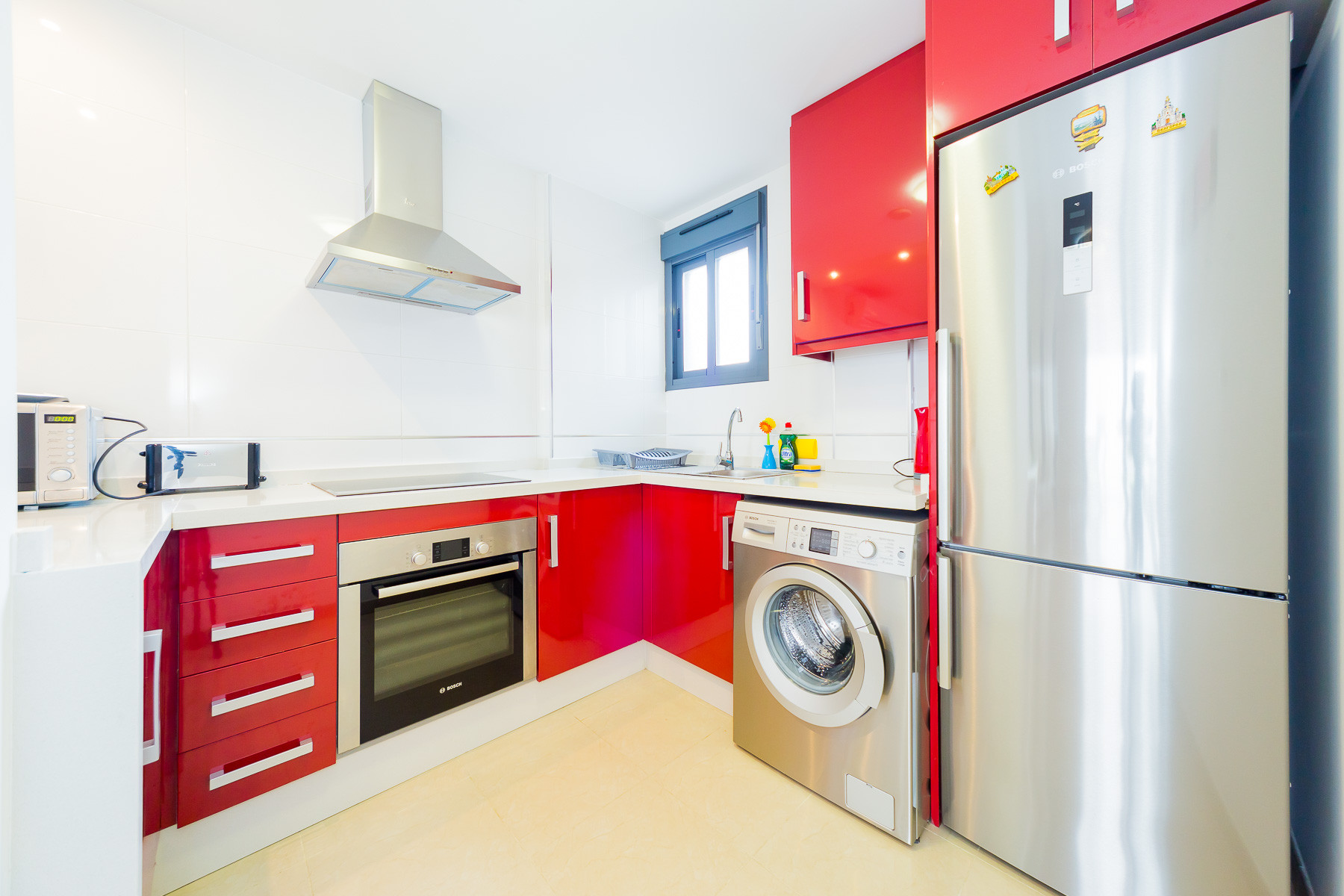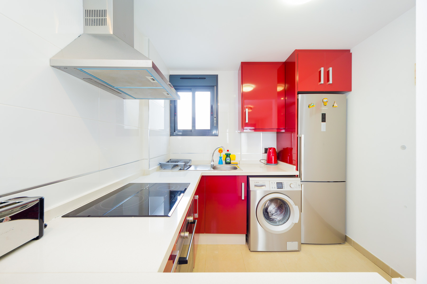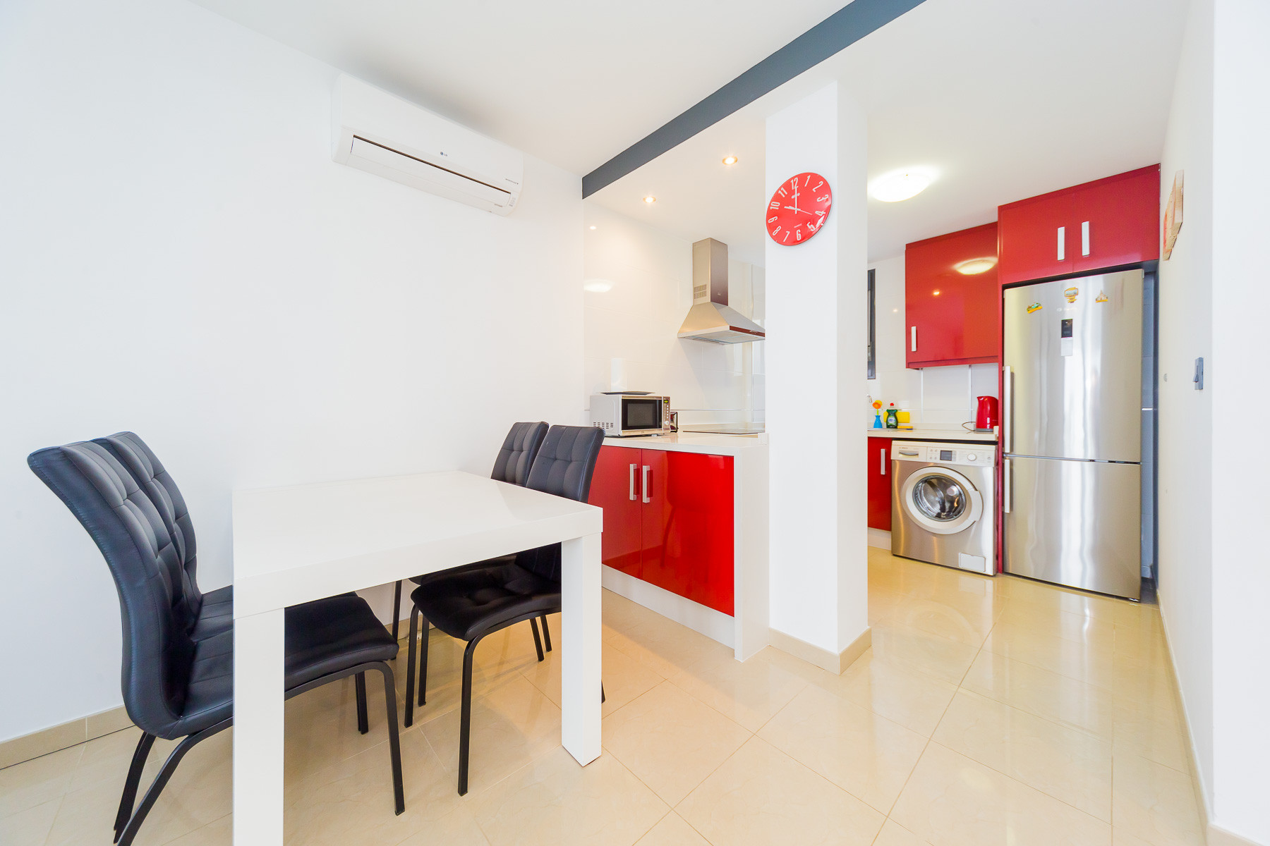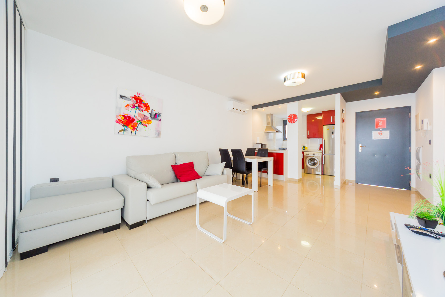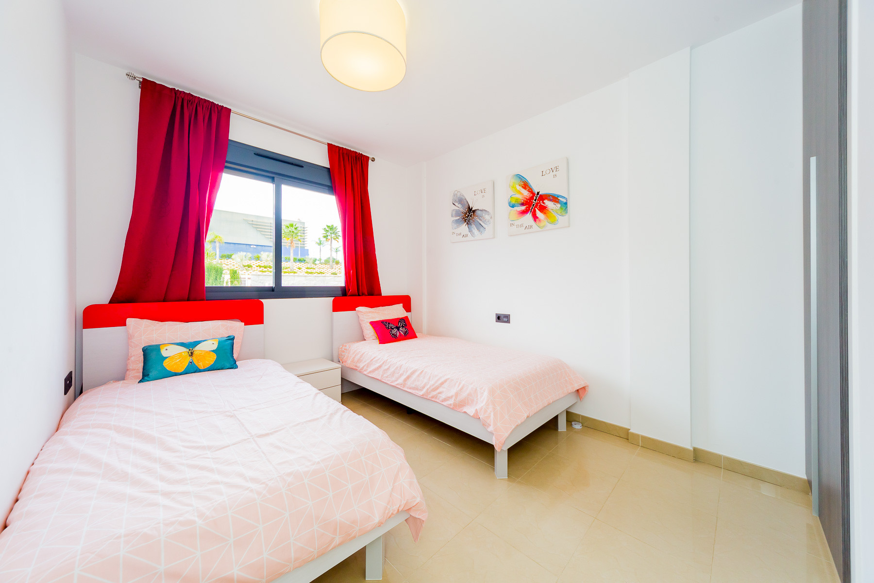 A modern bungalow located in a gated complex with communal swimming pool. It is spread out over 73 m2 and consists of a salon, two bedrooms, kitchen, two bathrooms and a terrace. There is a large private courtyard and a private garage parking space. It is fully equipped with new furniture, appliances, linens and towels, kitchen utensils, air conditioning, heated floors (which is important for the off-season).The air conditioning is only in the living room, but it's enough for all the apartments. Russian and Spanish TV are available. The terrace has outdoor furniture. It sleeps up to six people. Pets are not allowed and smoking is only permitted on the terrace. It is located adjacent to the new Zenia Boulevard open air shopping complex with a variety of over 150 shops bars, eateries, casino and much more. The sea is about 1 km away.